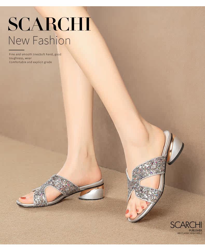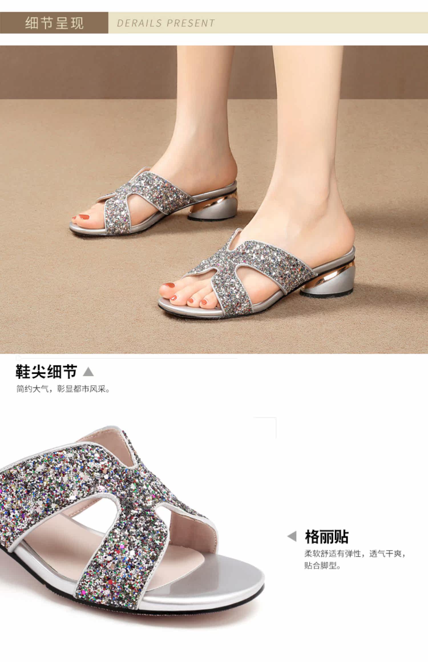 Тапочки, летняя обувь, комфортные блестки для ногтей, коллекция 2022, большой размер