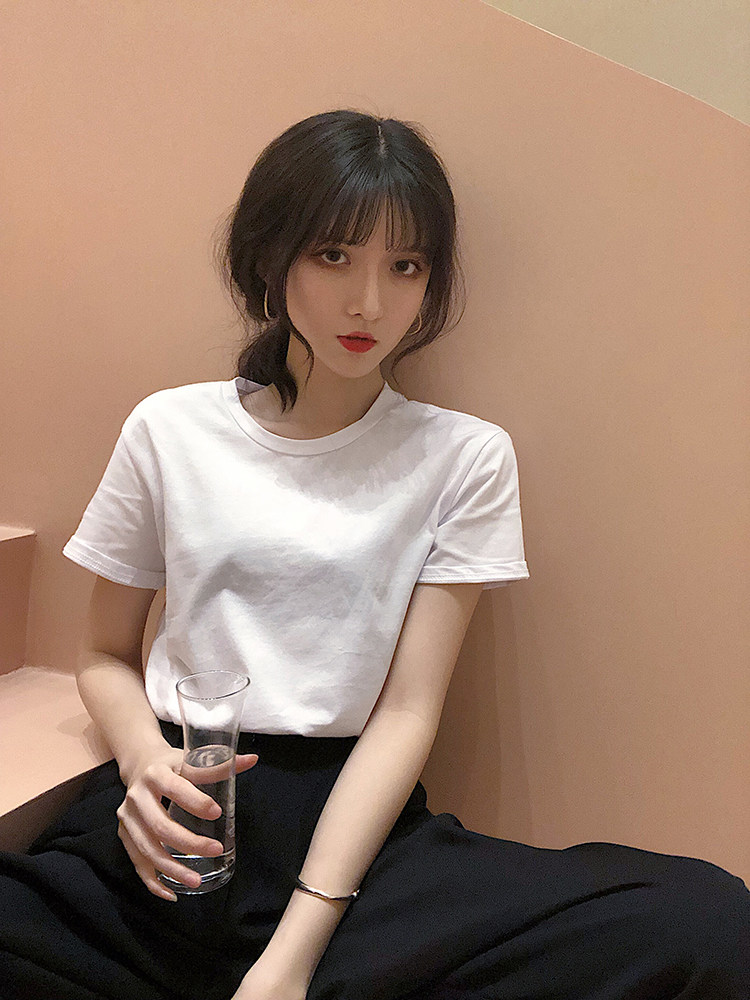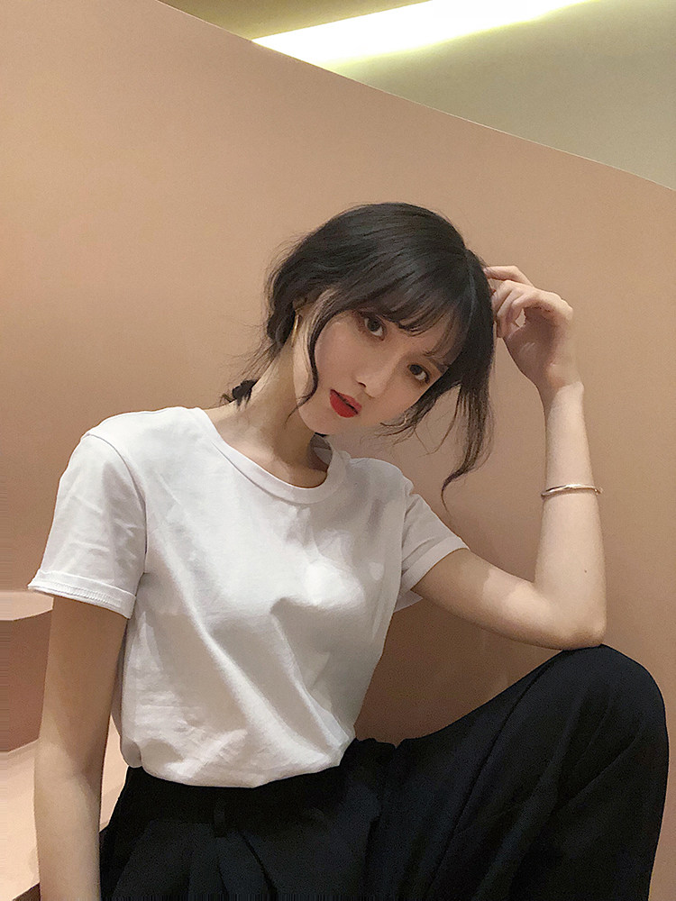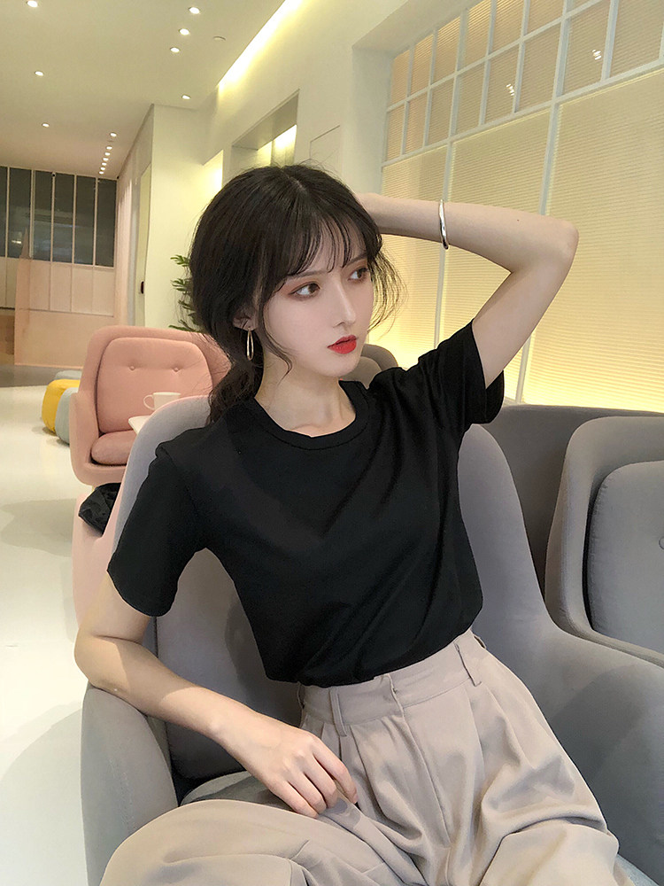 Однотонная футболка с коротким рукавом, коллекция 2022, большой размер, популярно в интернете, облегающий крой