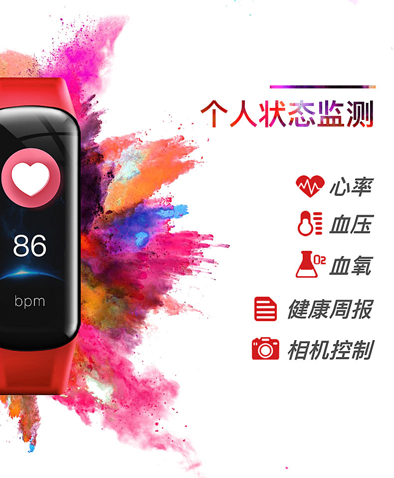 - [Напоминание о версии цветового экрана Zheng Kong измерение водонепроницаемой информации сердечного ритма] 693 Red S