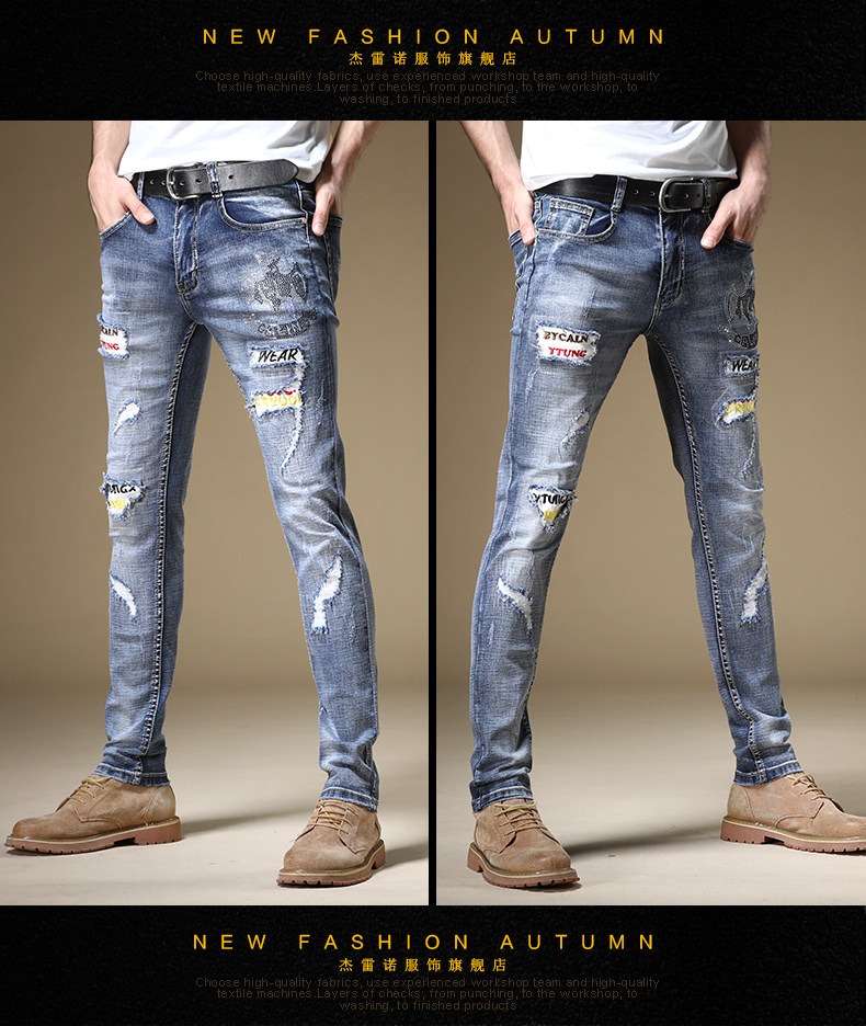 杰雷诺 Трендовые джинсы в стиле хип-хоп, штаны с нашивками для отдыха, в стиле панк, с вышивкой