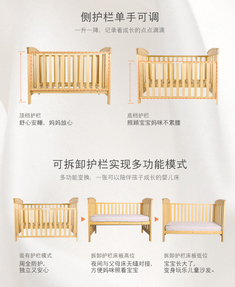 Детская универсальная кроватка из натурального дерева для приставной кровати