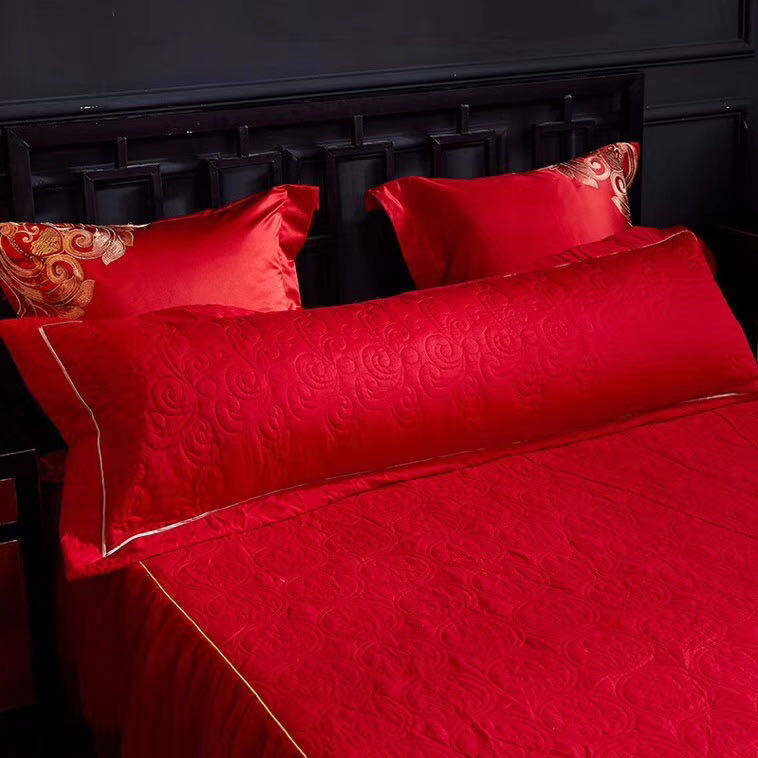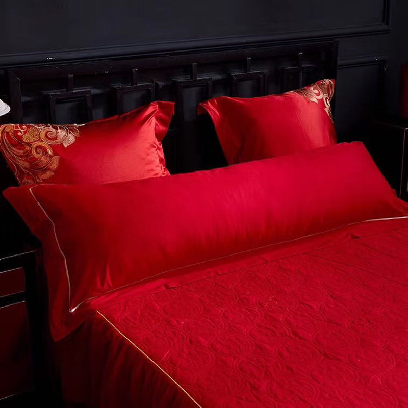 Свадебная двойная наволочка из чистого хлопка ярко-красного цвета, свадебная стеганая двойная наволочка из чистого хлопка 48*150 см