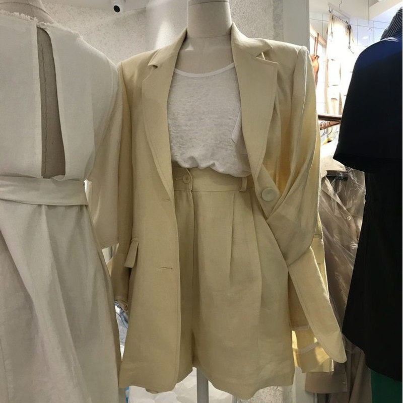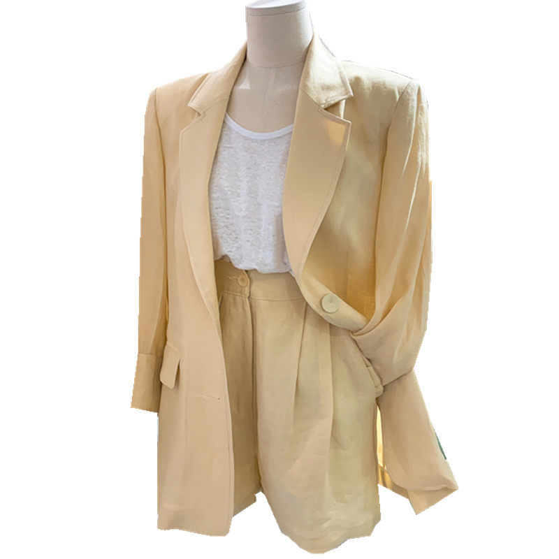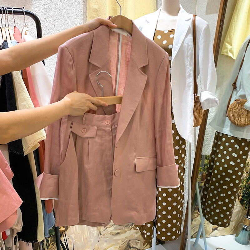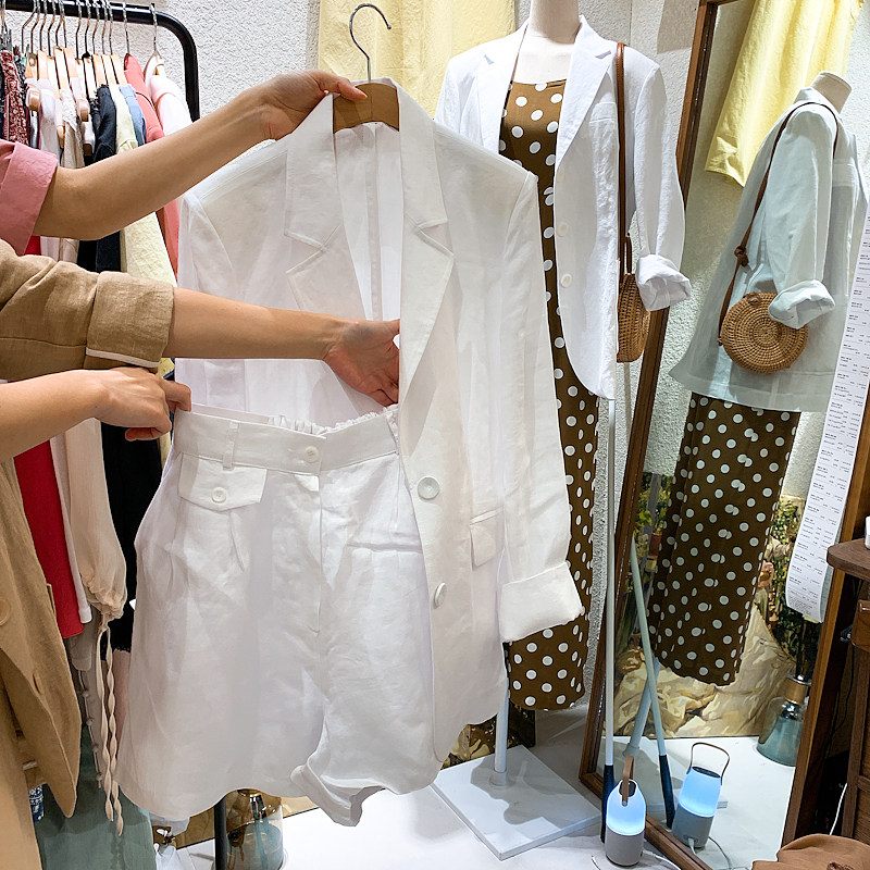 Летний пиджак классического кроя для отдыха, тонкий комплект, 2020, в корейском стиле, из хлопка и льна