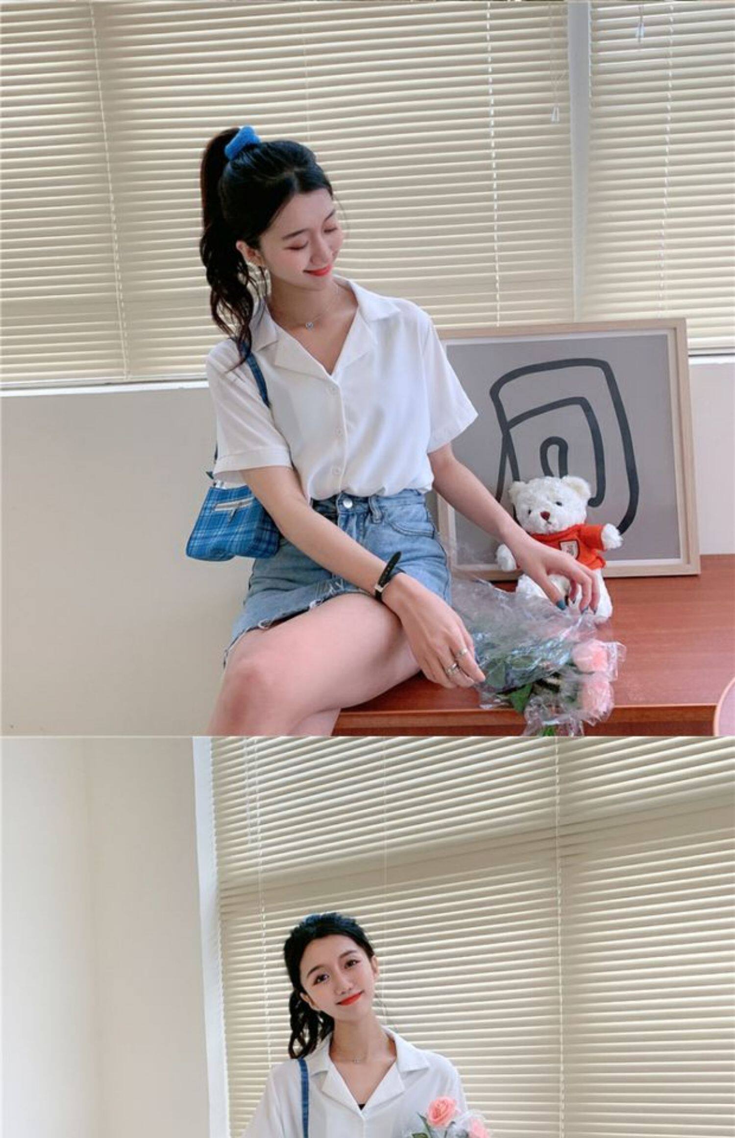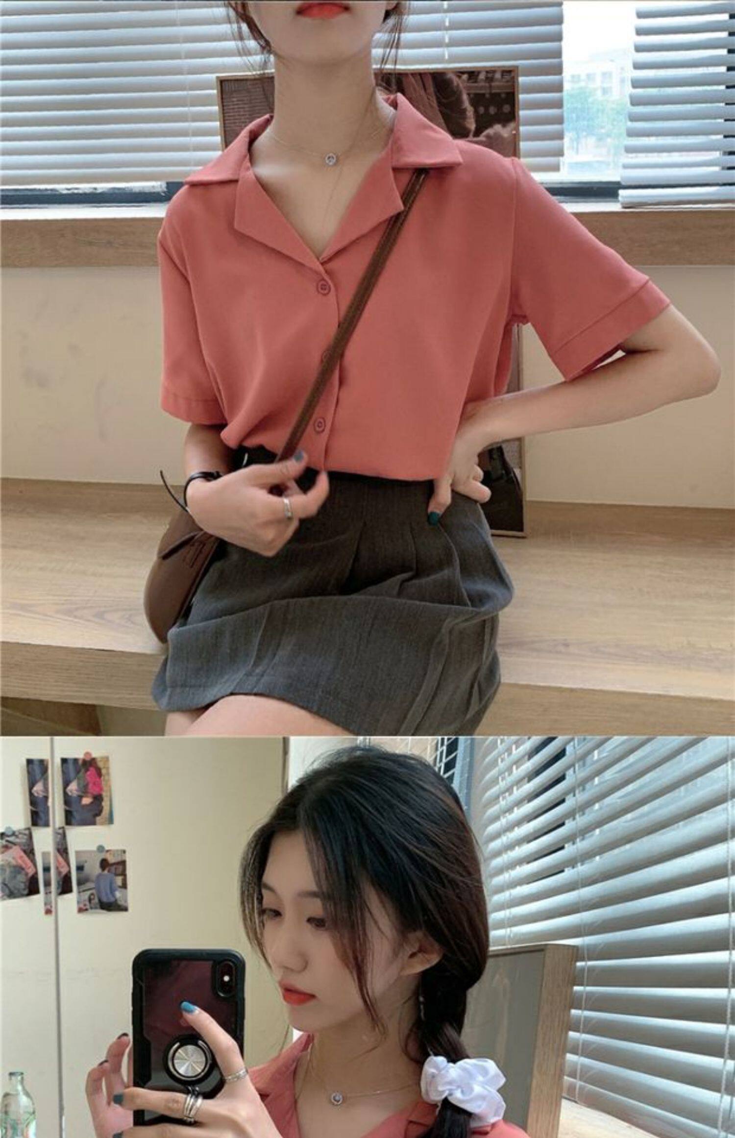 Летняя корейская шифоновая рубашка, сезон 2021, свободный крой, короткий рукав