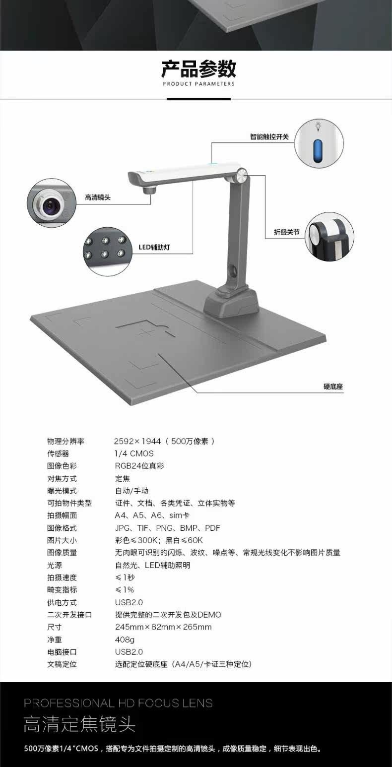 Jieyu gao e5 high -pixel 5 миллионов пикселей с высоким содержанием портативного сканера A4.
