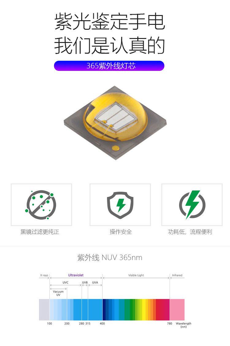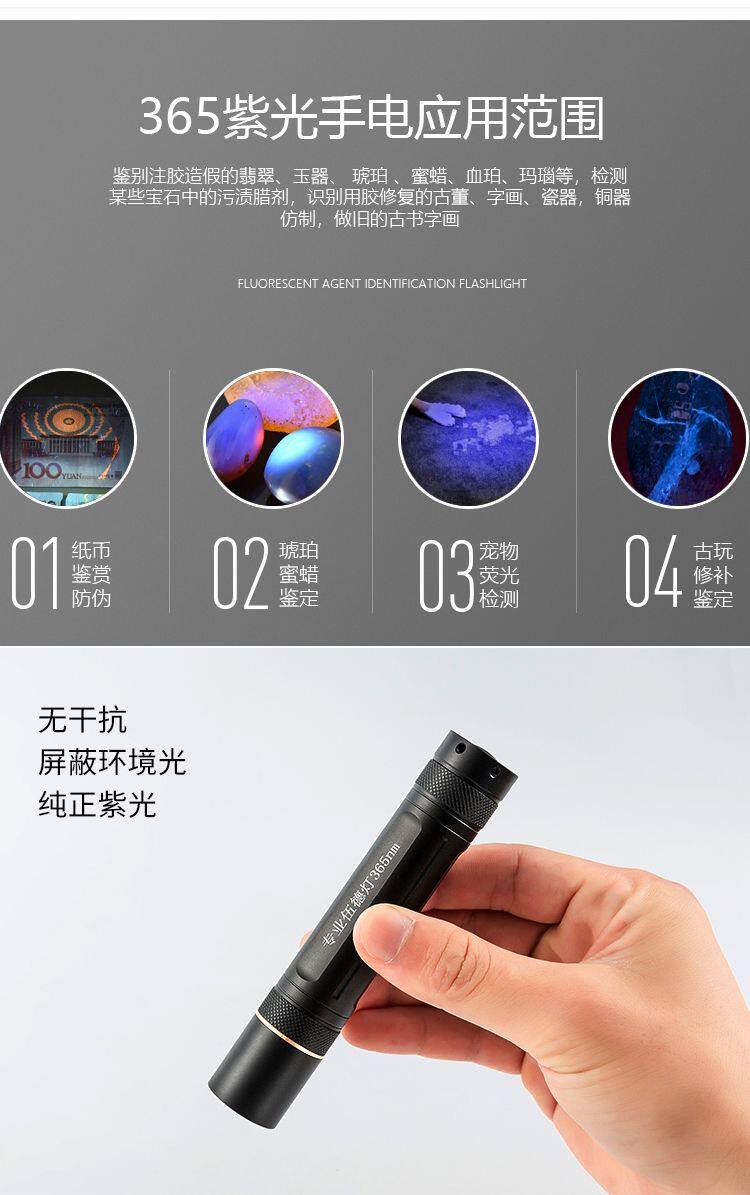 Ультрафиолетовый флуоресцентный защитный фонарь, высокая мощность, 10W