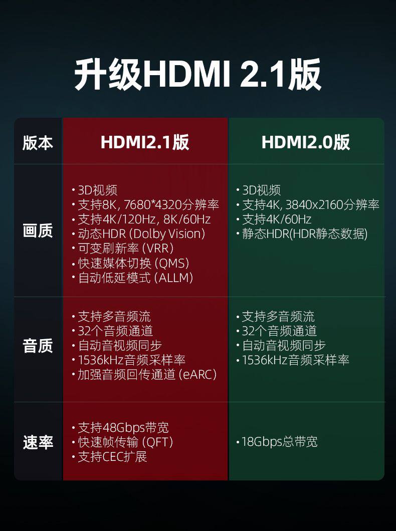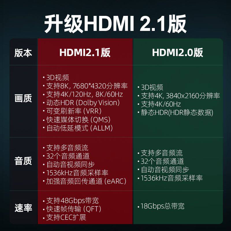 2.1 Версия совместима с версией 2.0, 1.4, хорошая производительность, хорошая производительность,Он может решить феномен черного экрана флеш -экрана,Эффект подключения оборудования 4K значительно улучшится.