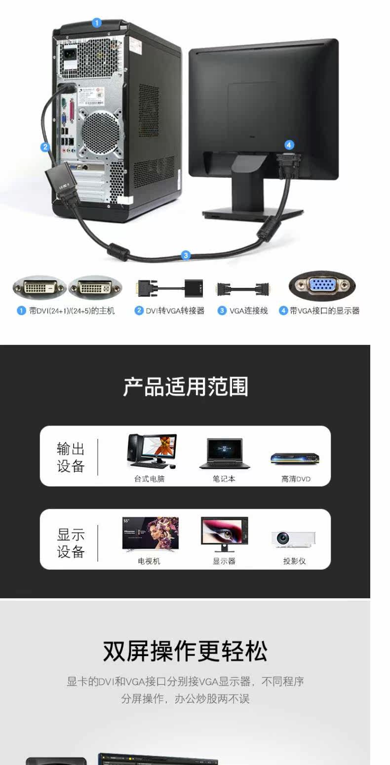 DVI -VGA ROTOR 24+1 ROTOR VGA CABLE 1080P Computer HD -преобразователь Дисплей дисплей дисплея