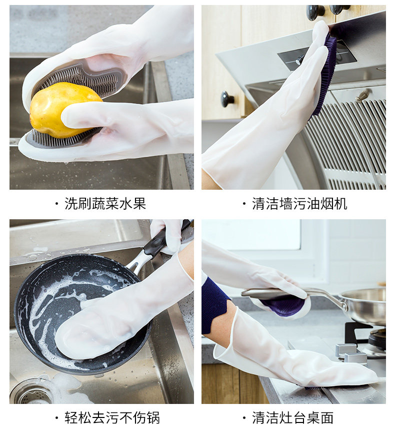 Прочные перчатки для мытья посуды Прочные кухонные работы по уборке Антимационной водонепроницаемой резиновой резиновой магии