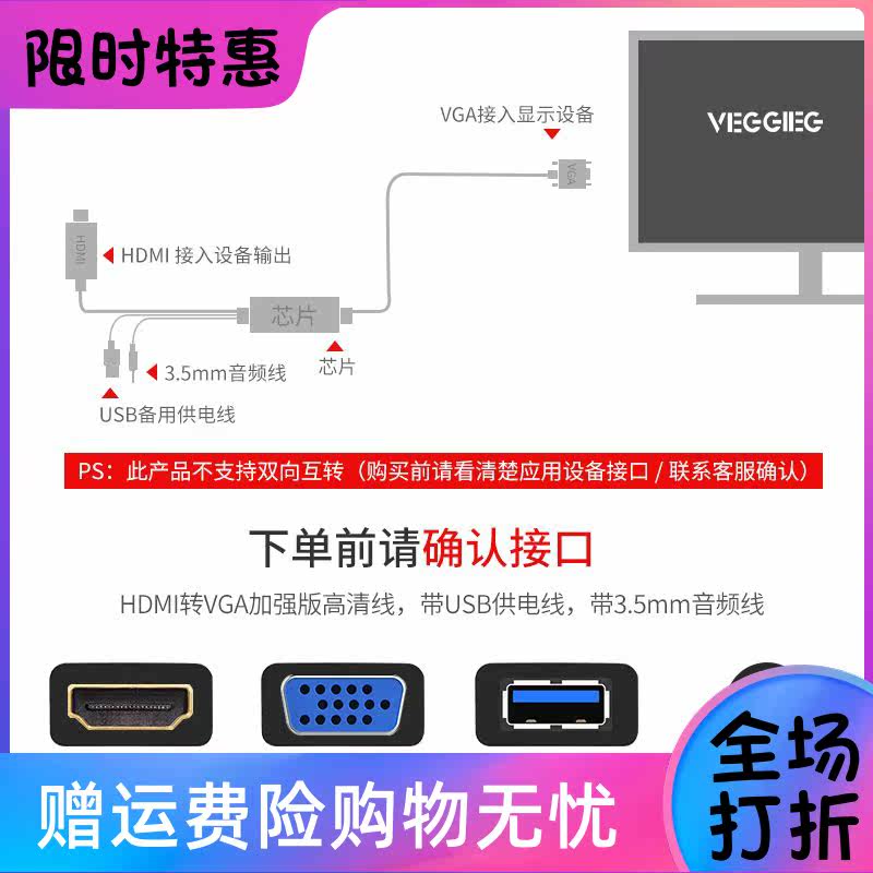 HDMI в VGA Cable Cable Converter High -Definition Adapter Adapter Computer Подключение телевизионного устройства кабель устройства