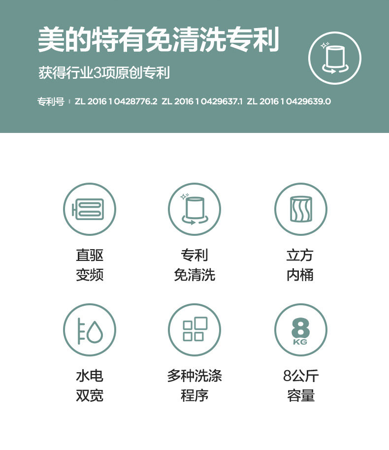 [Инвертор с прямым приводом] Midea 8 кг колесная стиральная машина полная -Аутоматическая домашняя общежития.