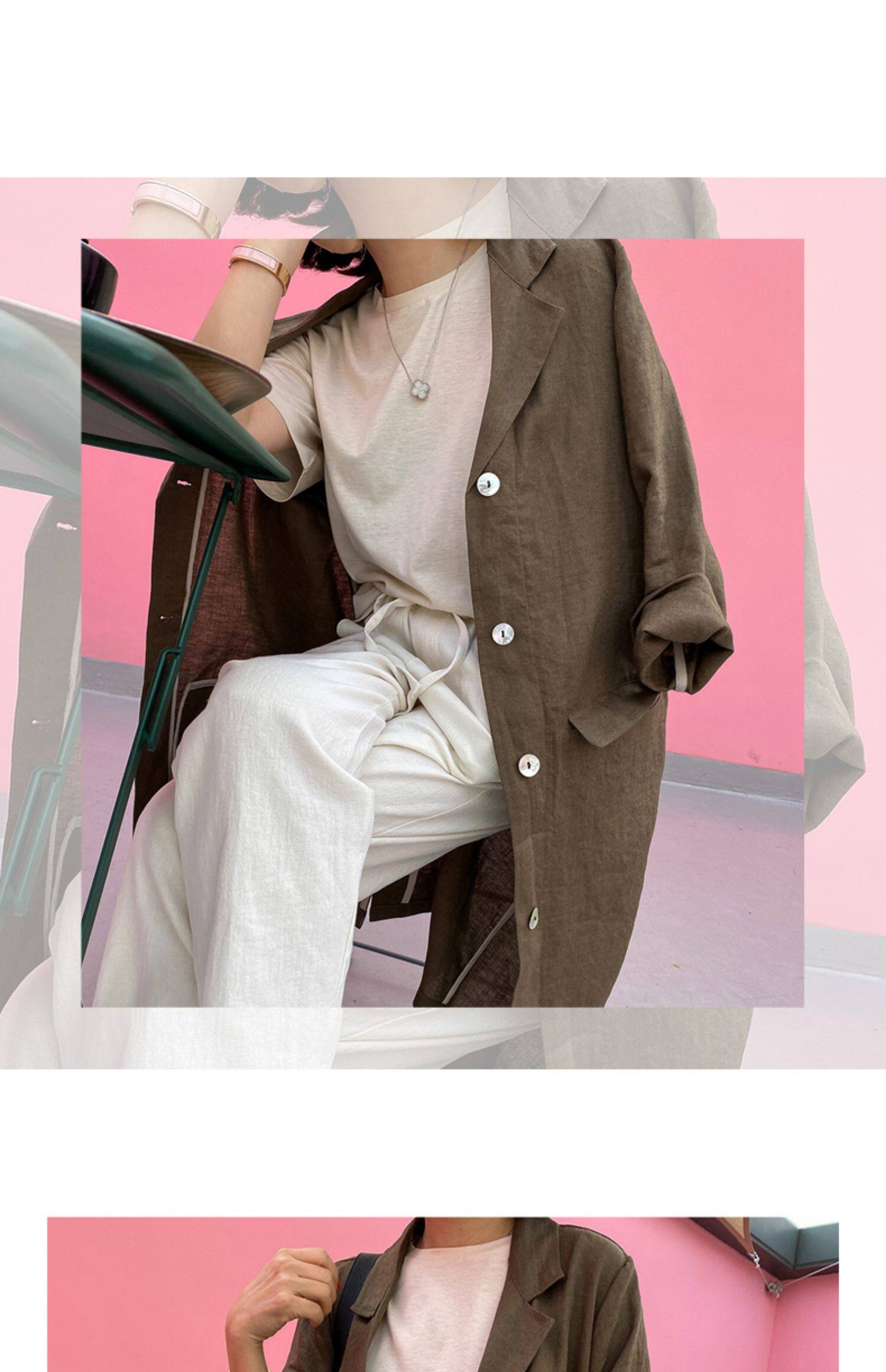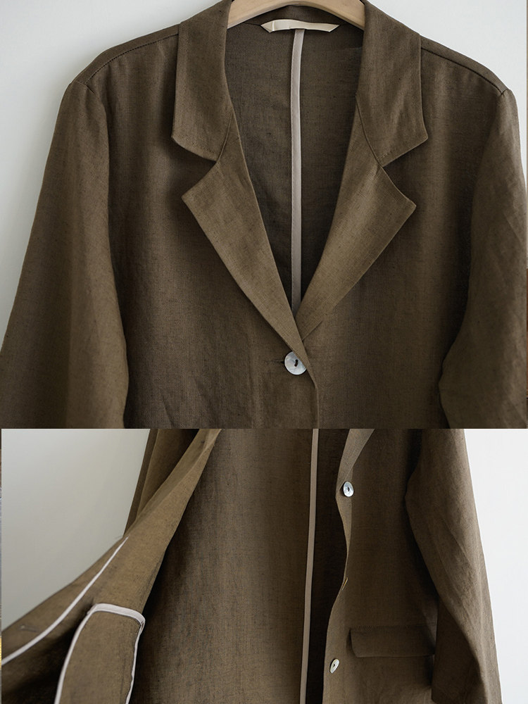 Летний тонкий пиджак классического кроя, куртка для отдыха, оверсайз, из хлопка и льна