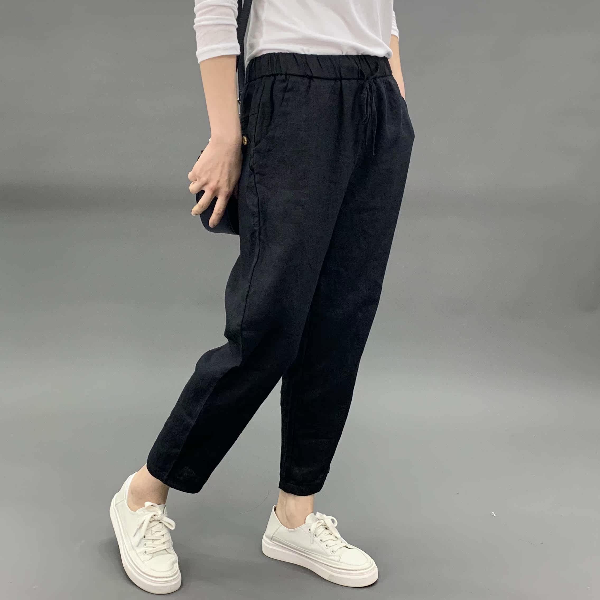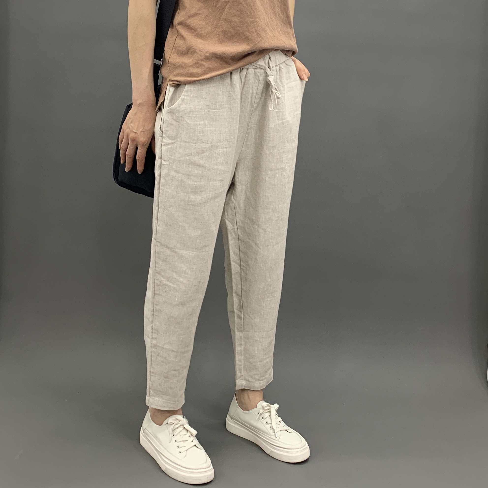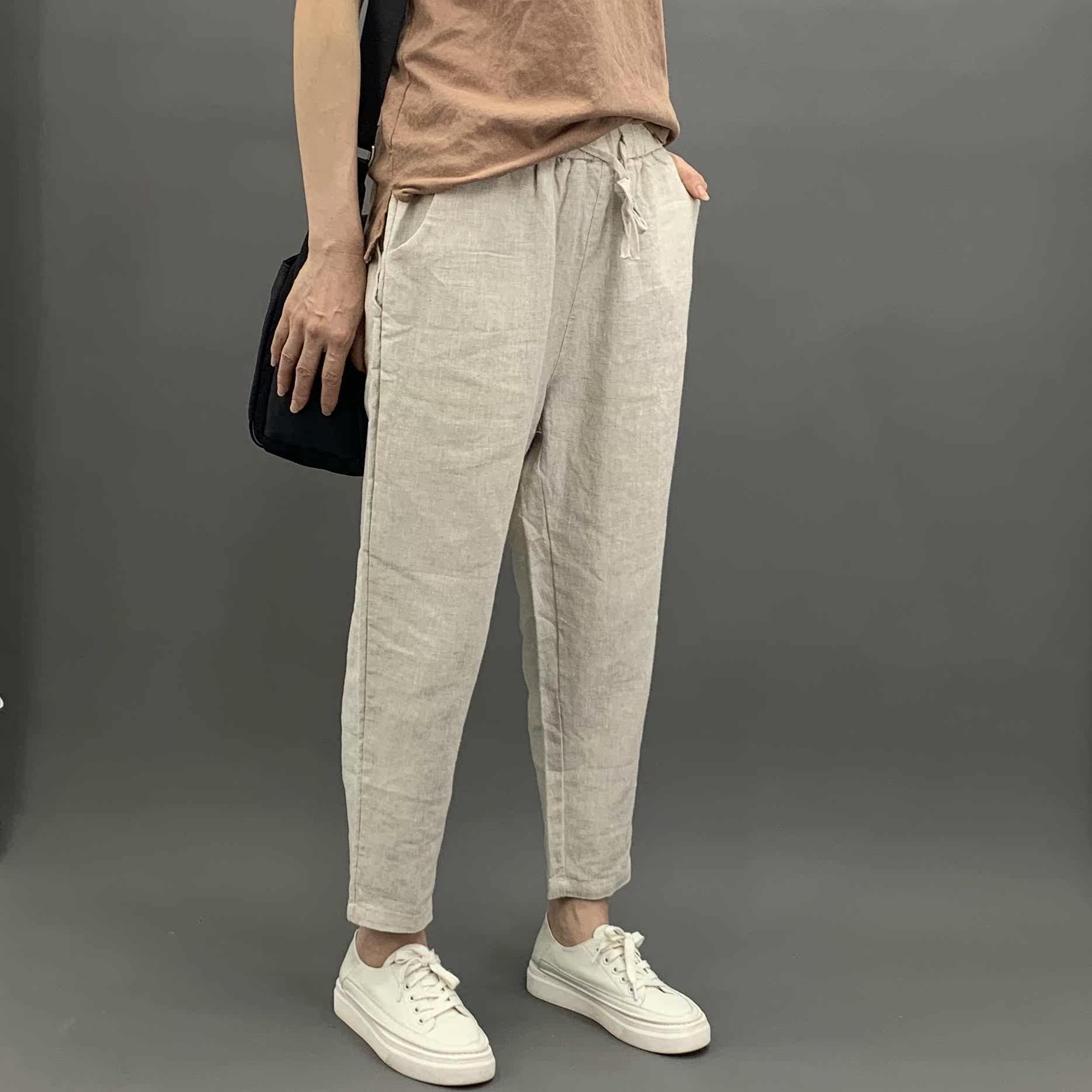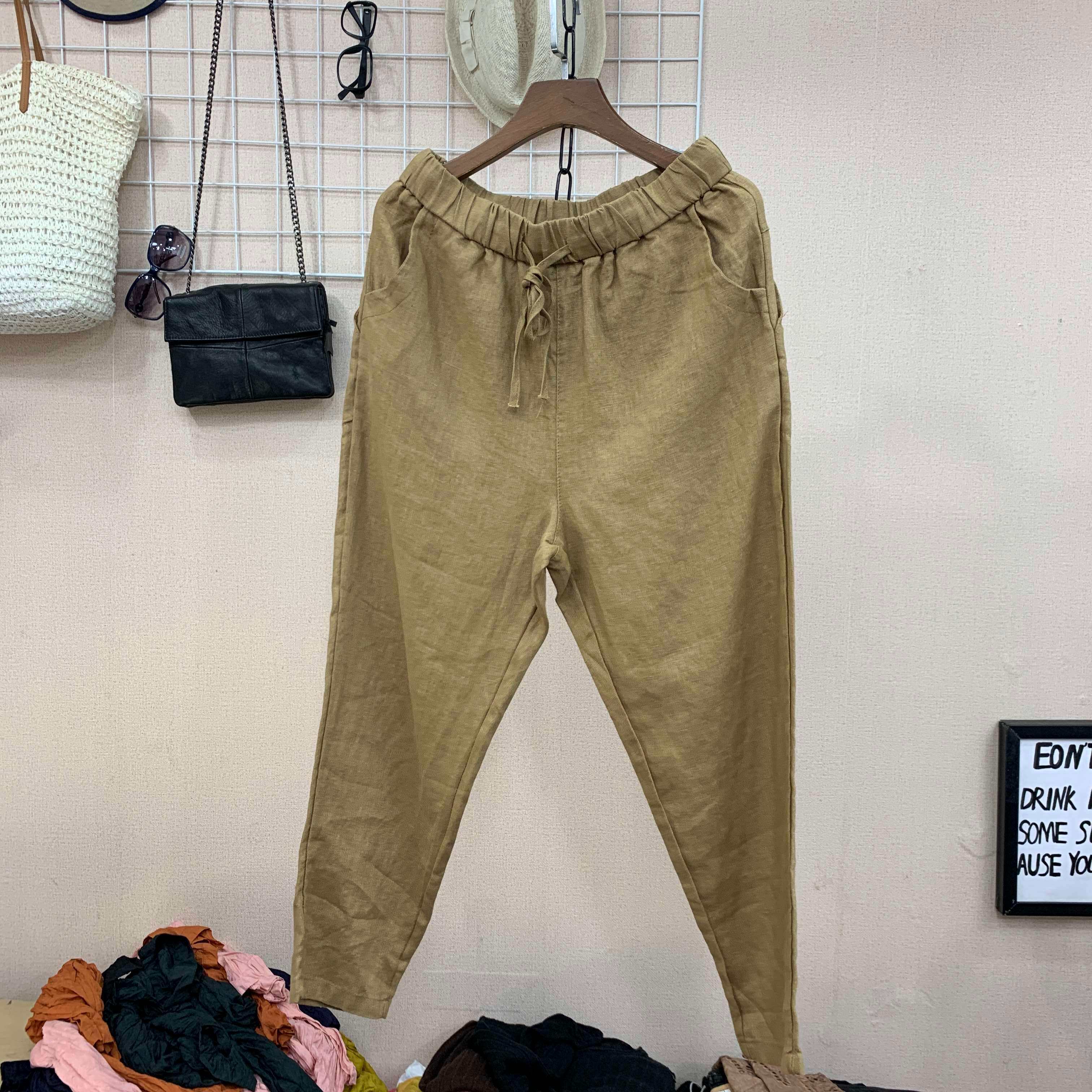 Весенние штаны, 2020, из хлопка и льна, оверсайз, эластичная талия, свободный прямой крой