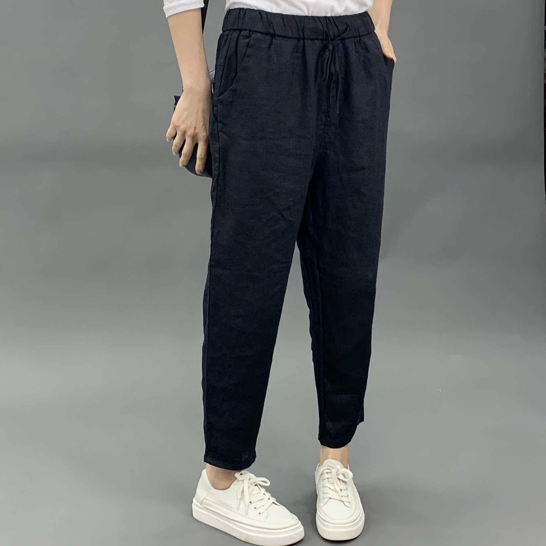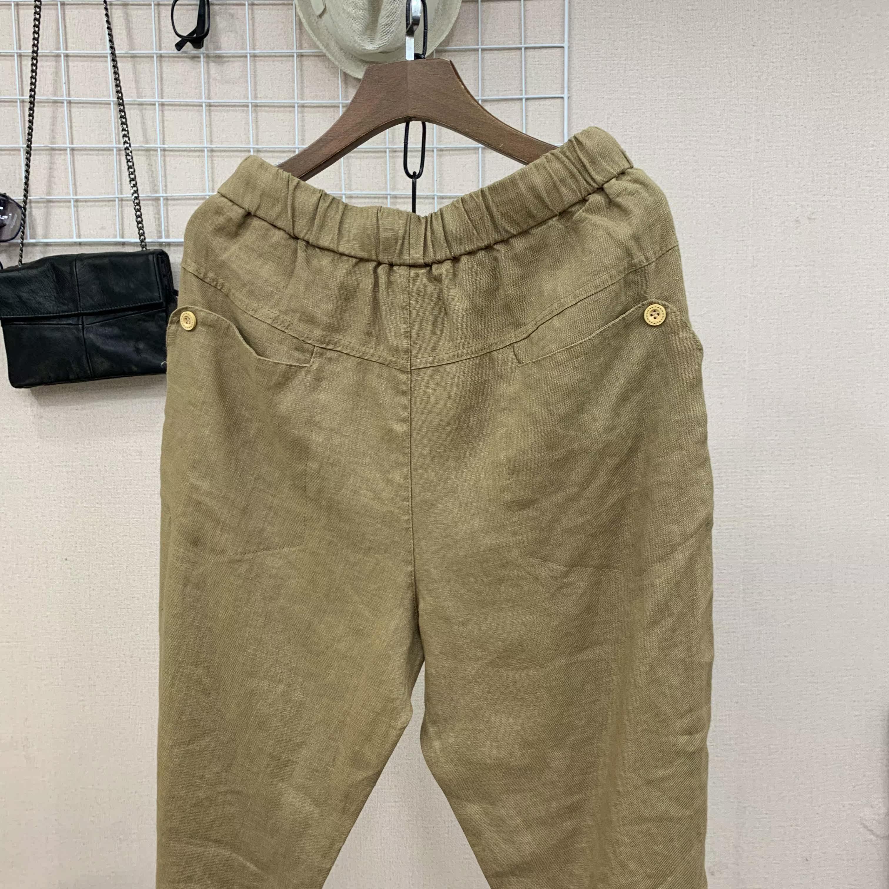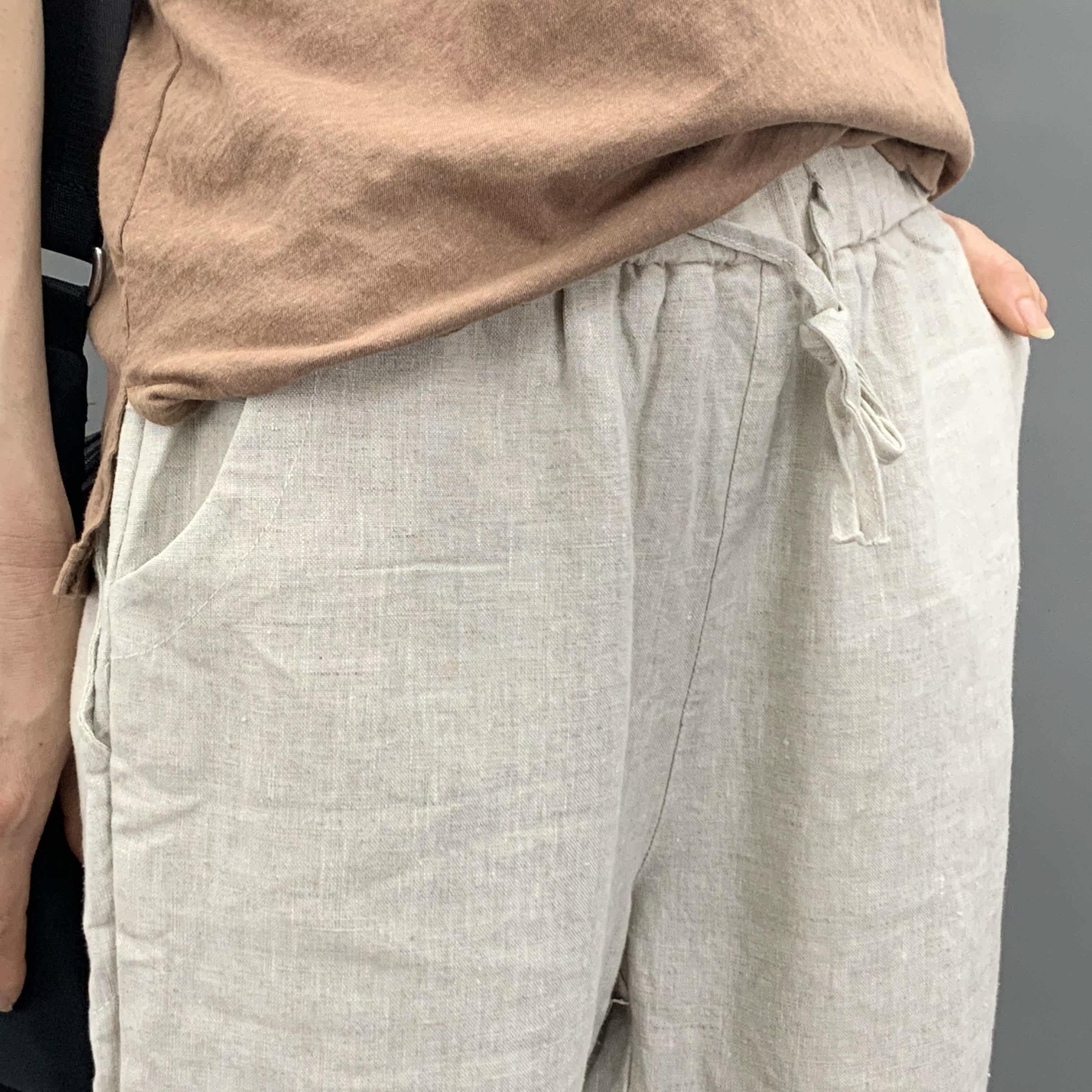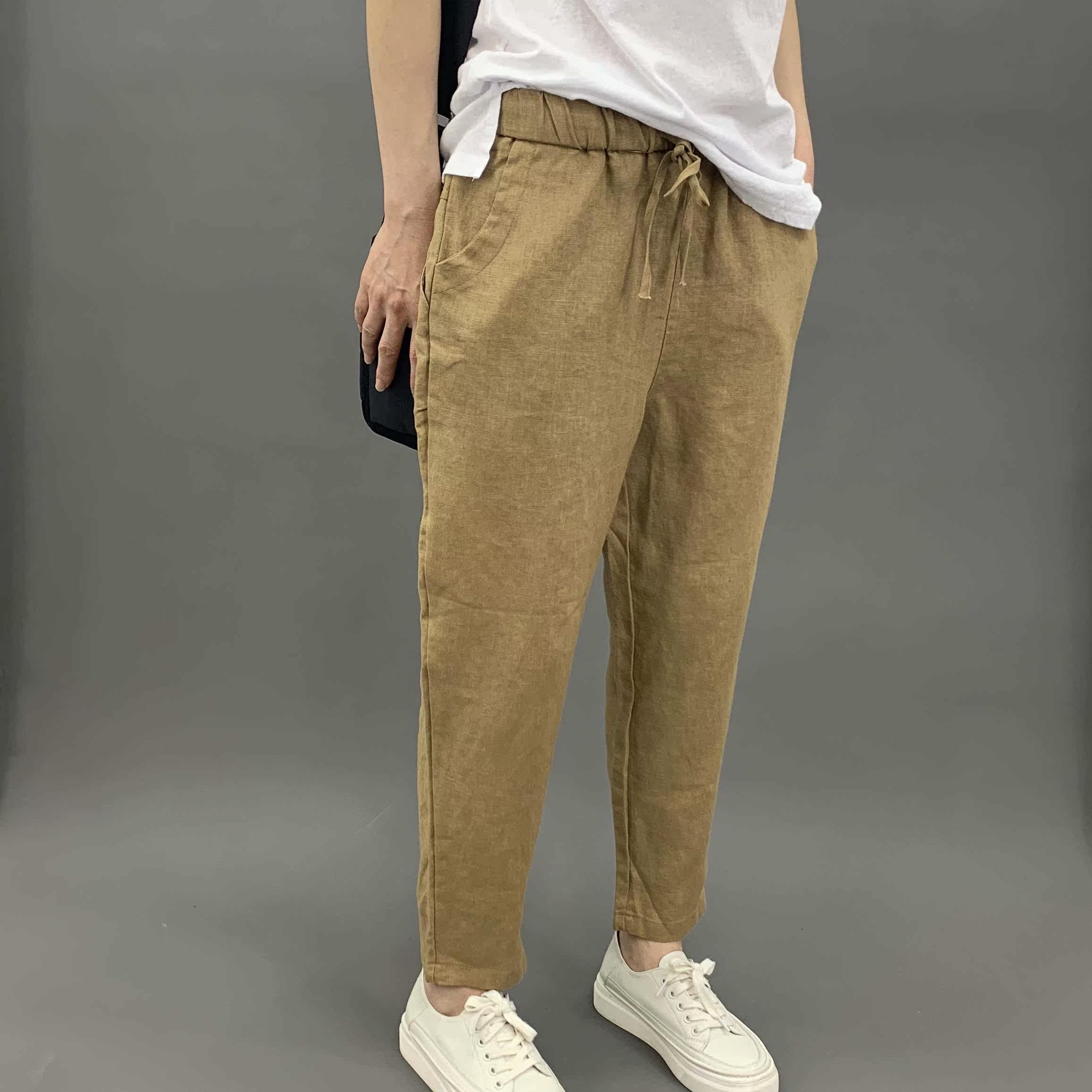 Весенние штаны, 2020, из хлопка и льна, оверсайз, эластичная талия, свободный прямой крой