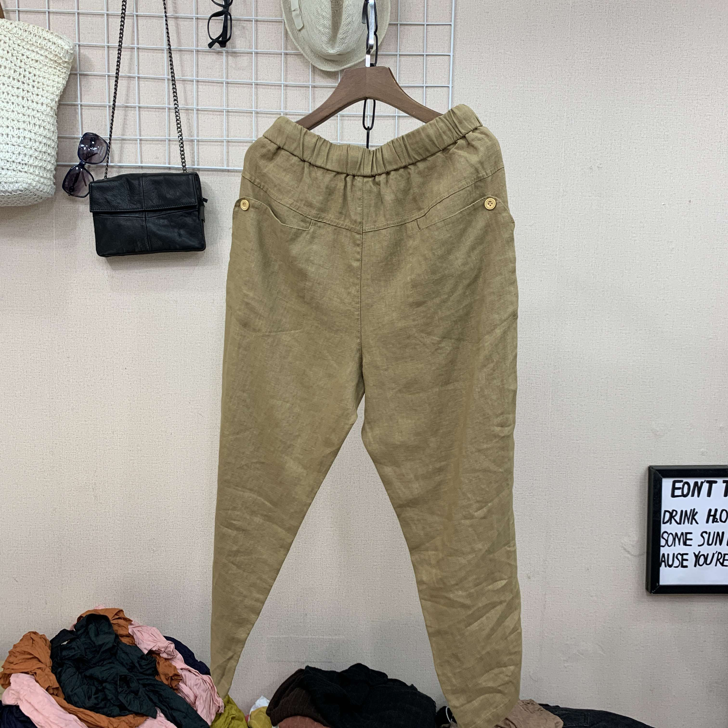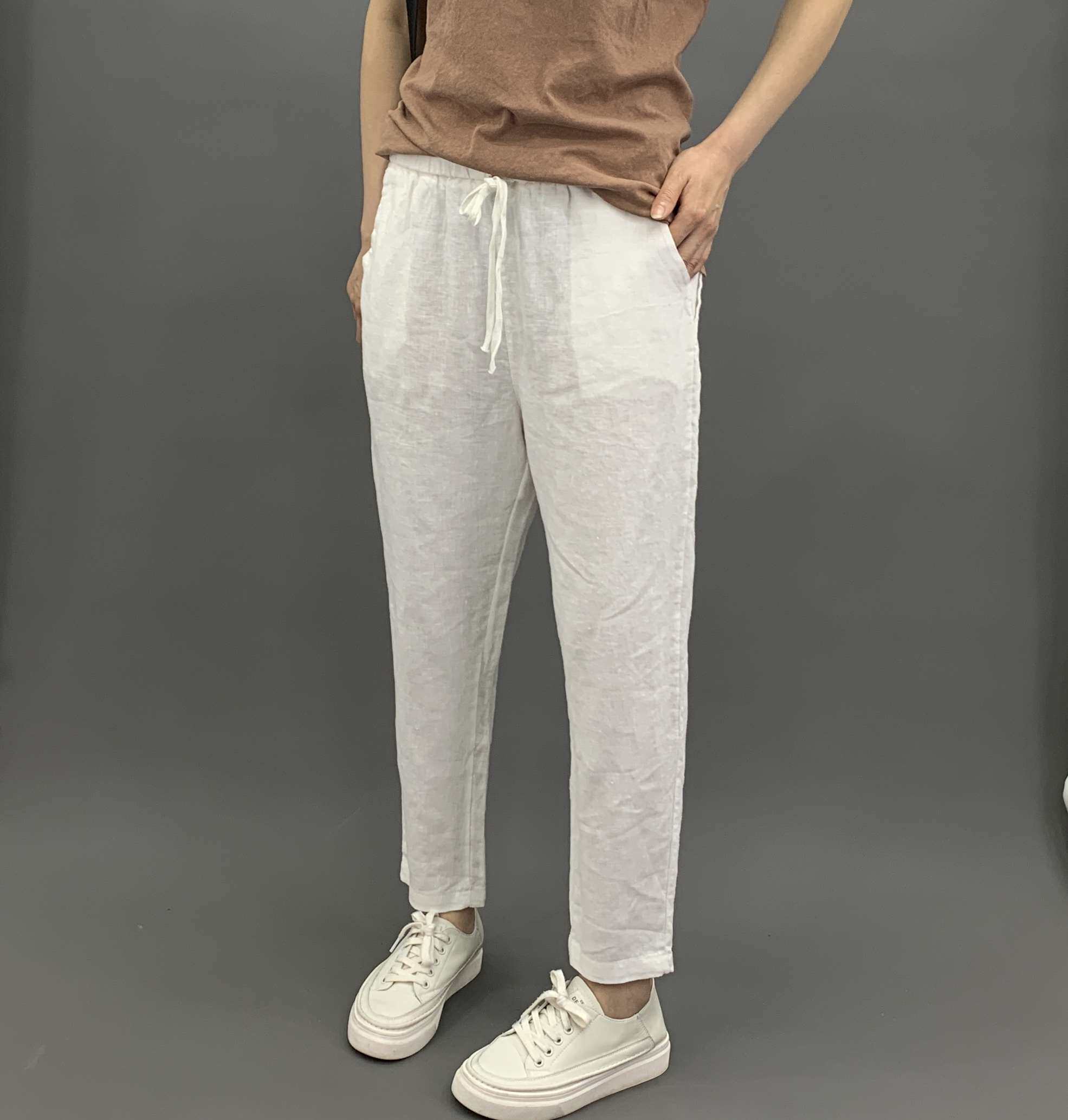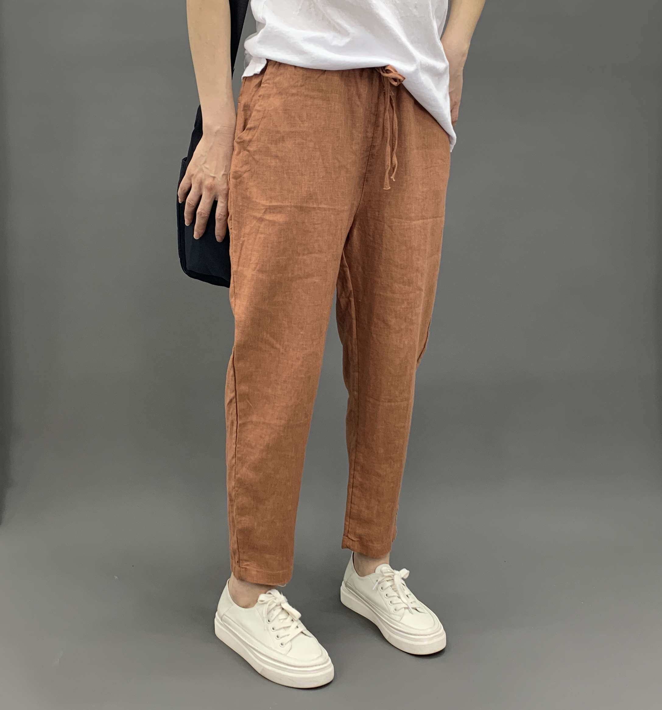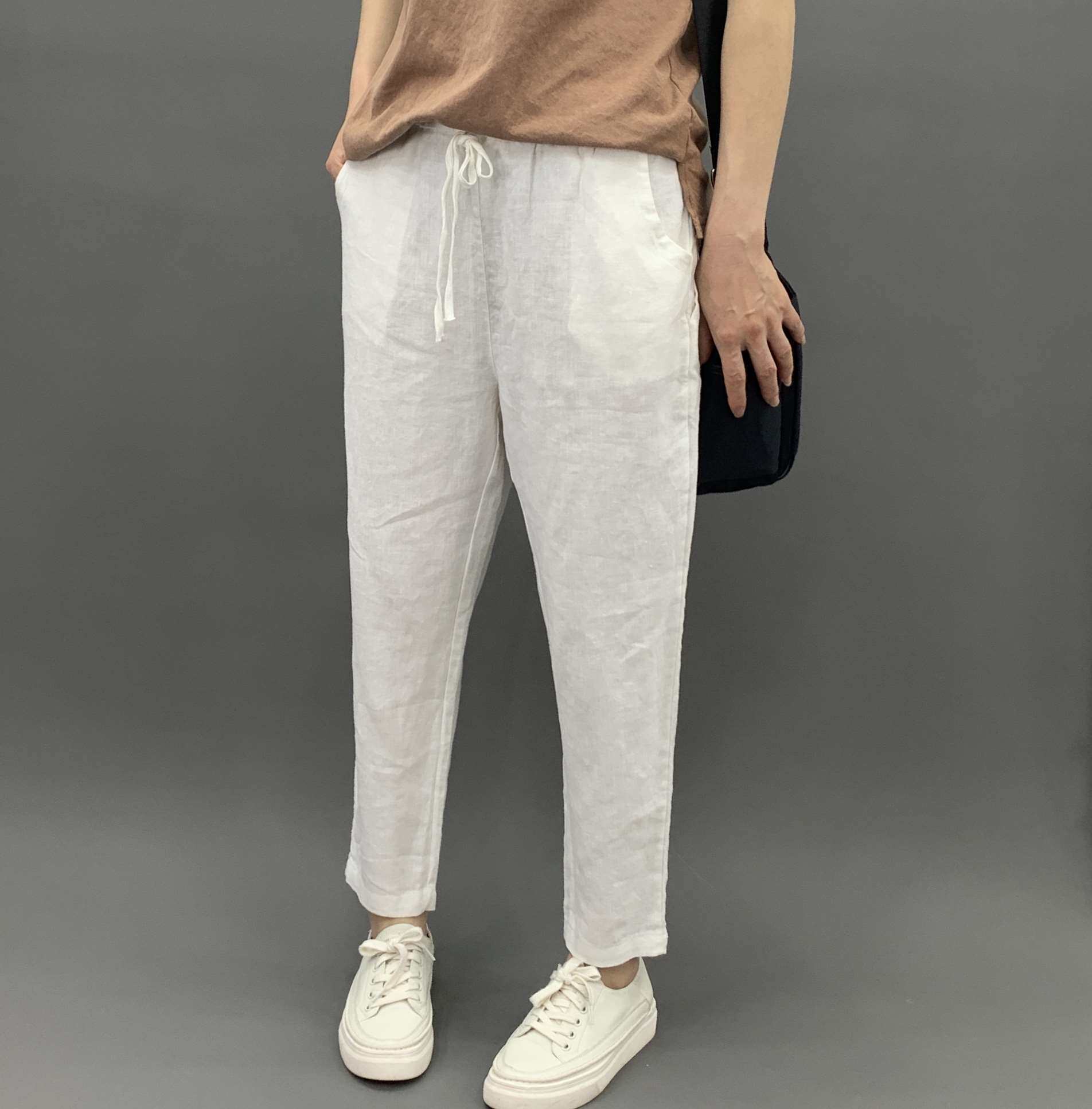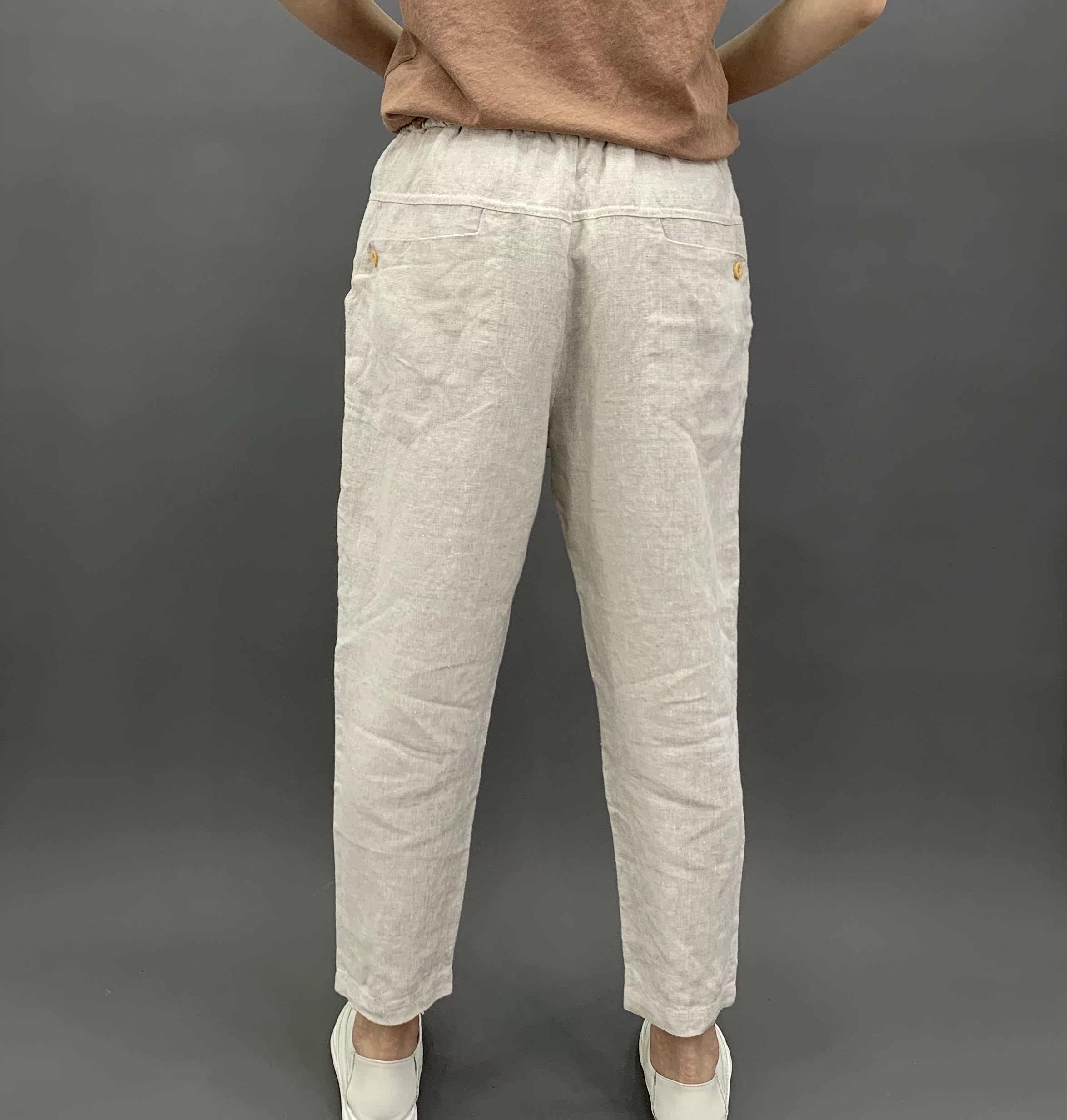 Весенние штаны, 2020, из хлопка и льна, оверсайз, эластичная талия, свободный прямой крой