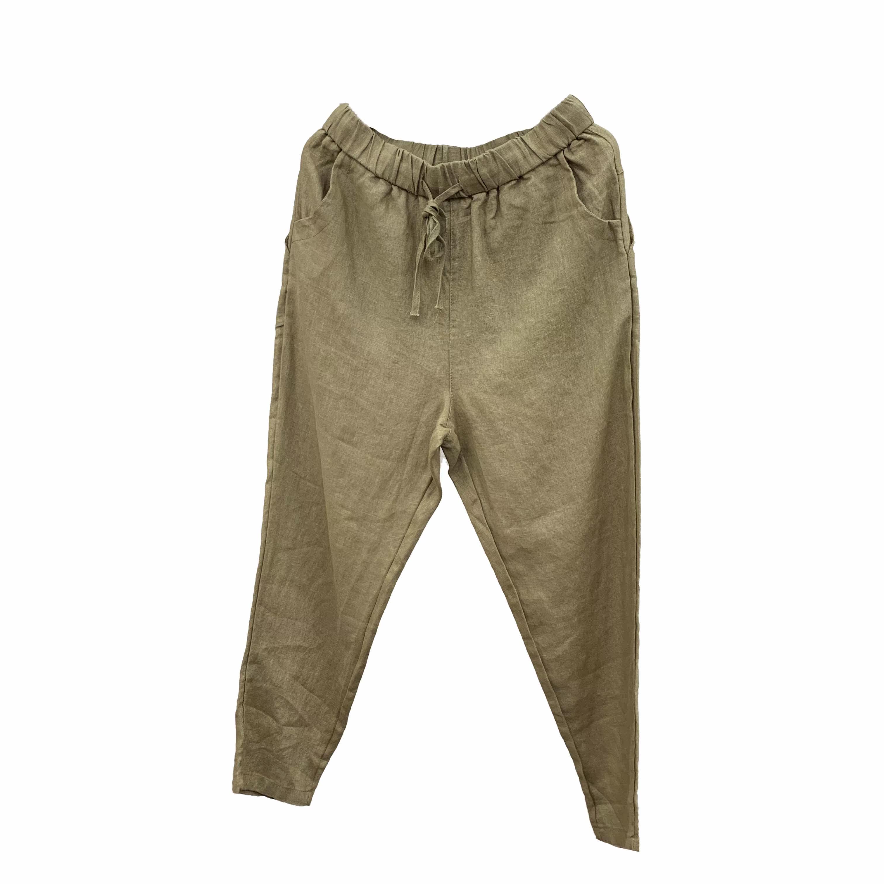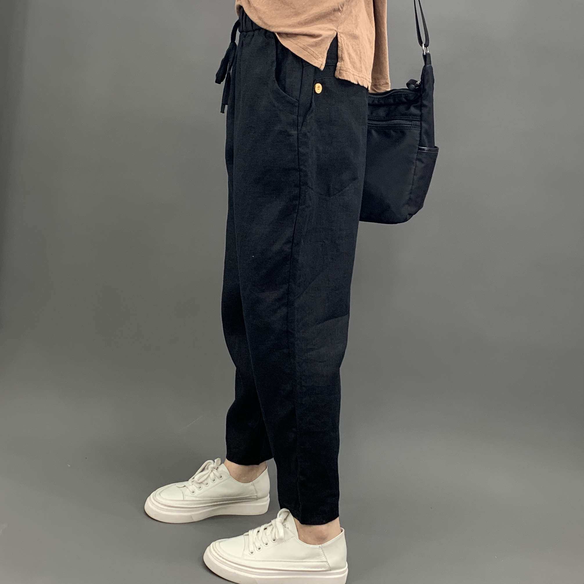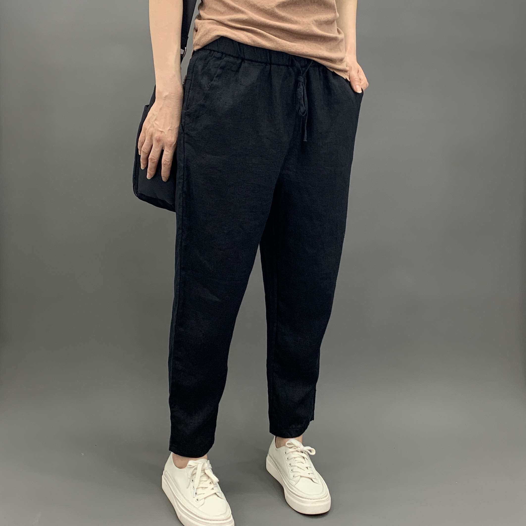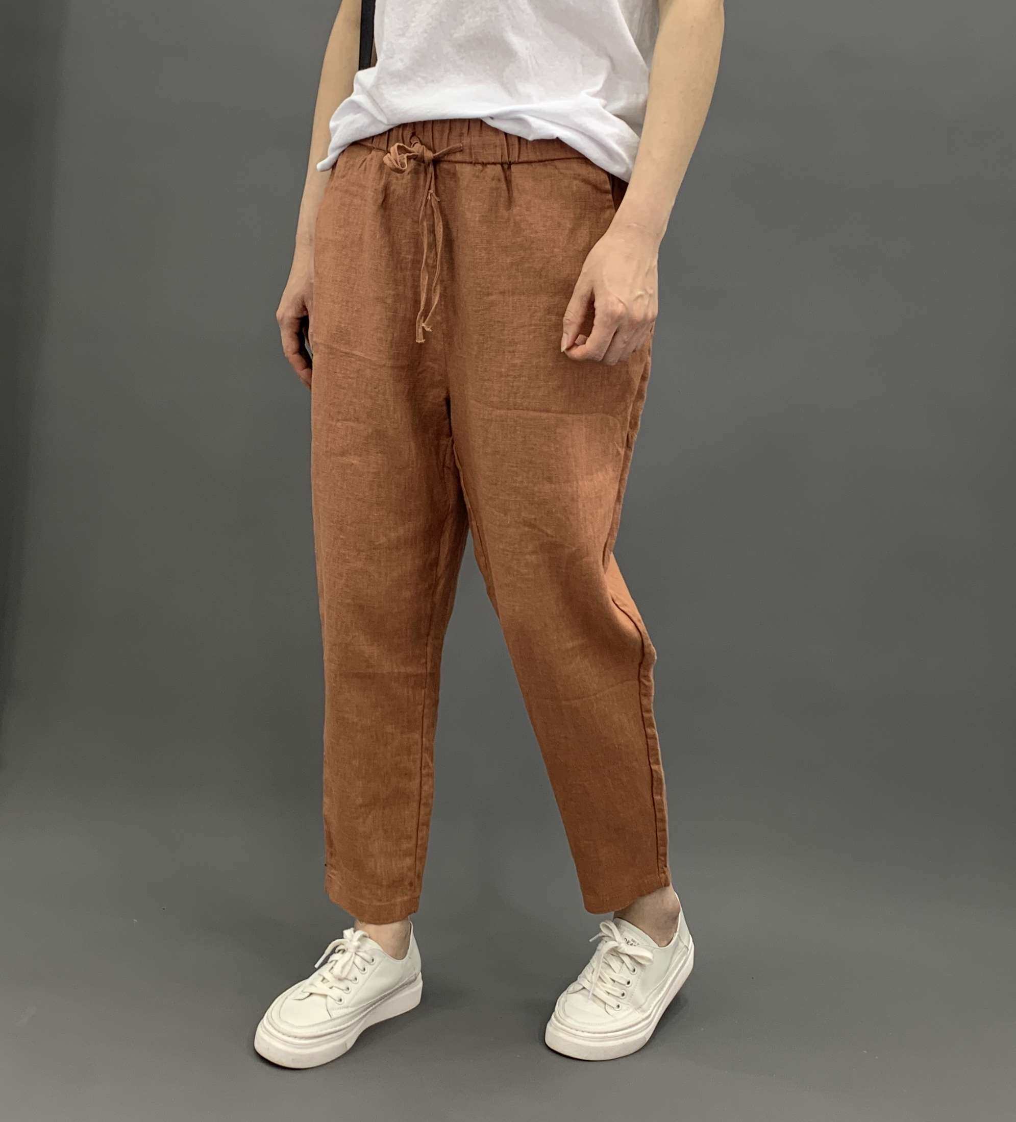 Весенние штаны, 2020, из хлопка и льна, оверсайз, эластичная талия, свободный прямой крой