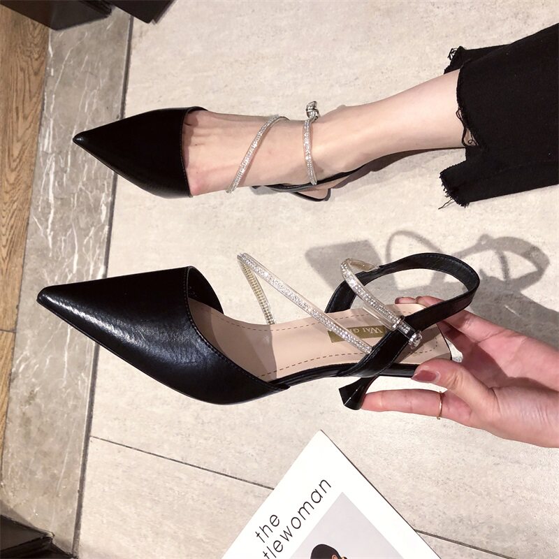 Высокие весенние универсальные сексуальные сандалии на высоком каблуке с заостренным носом, популярно в интернете, тонкий ремешок