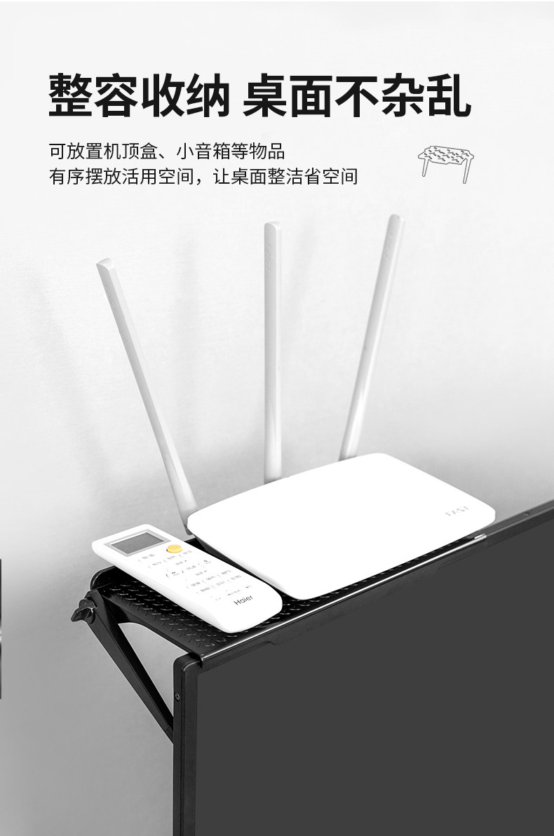Поместите настройку настройки на установке -настройка стойки в верхней части дисплея, бесплатный кронштейн для хранения маршрутизатора.