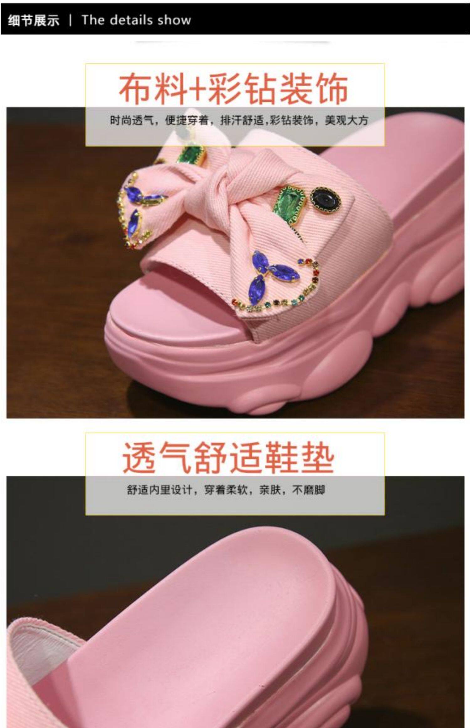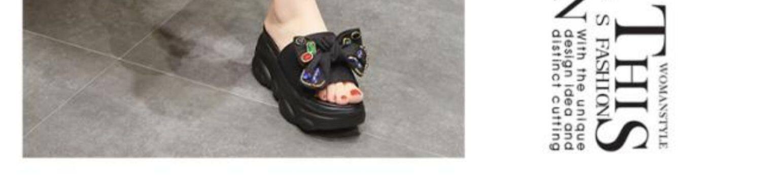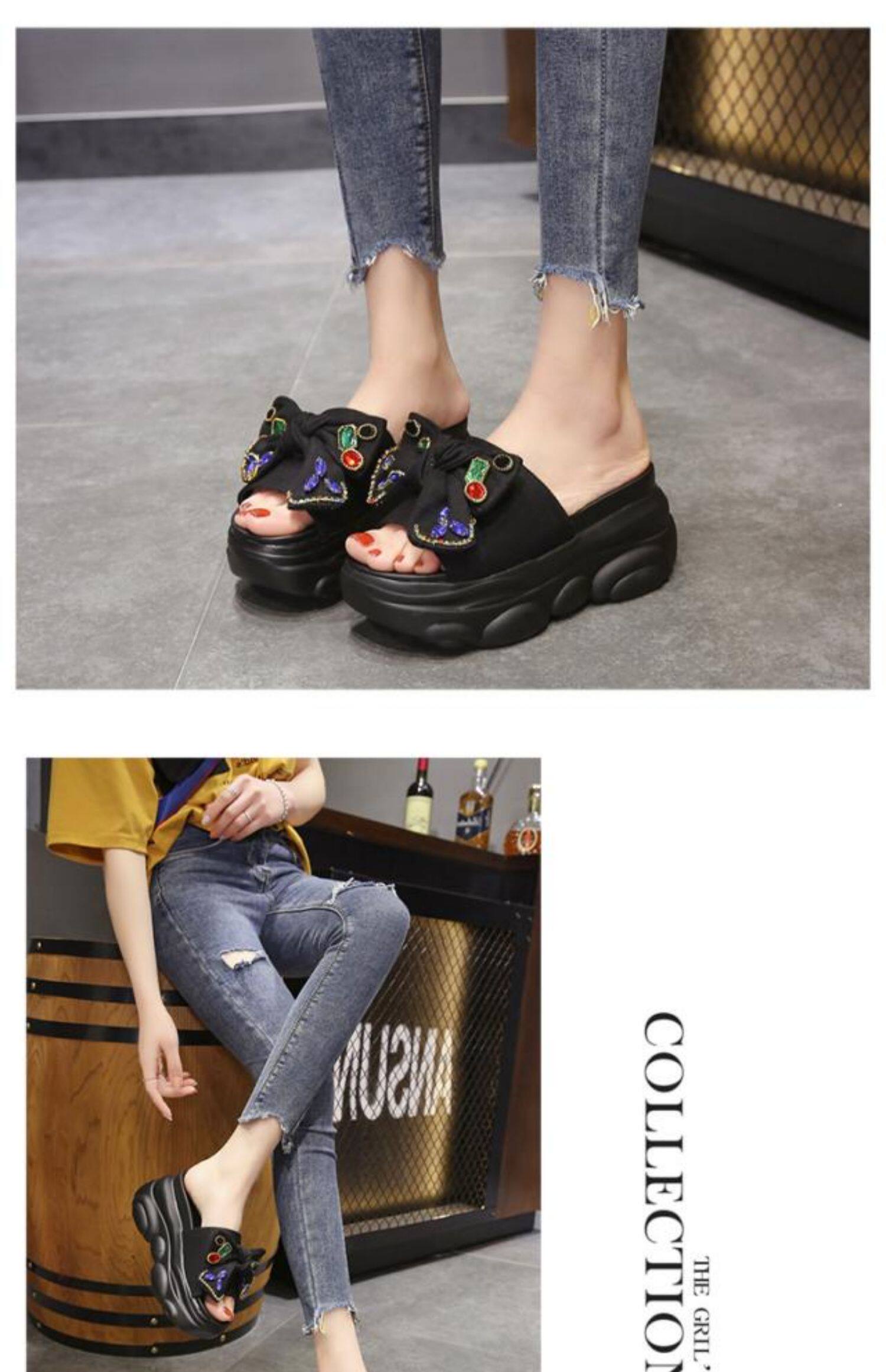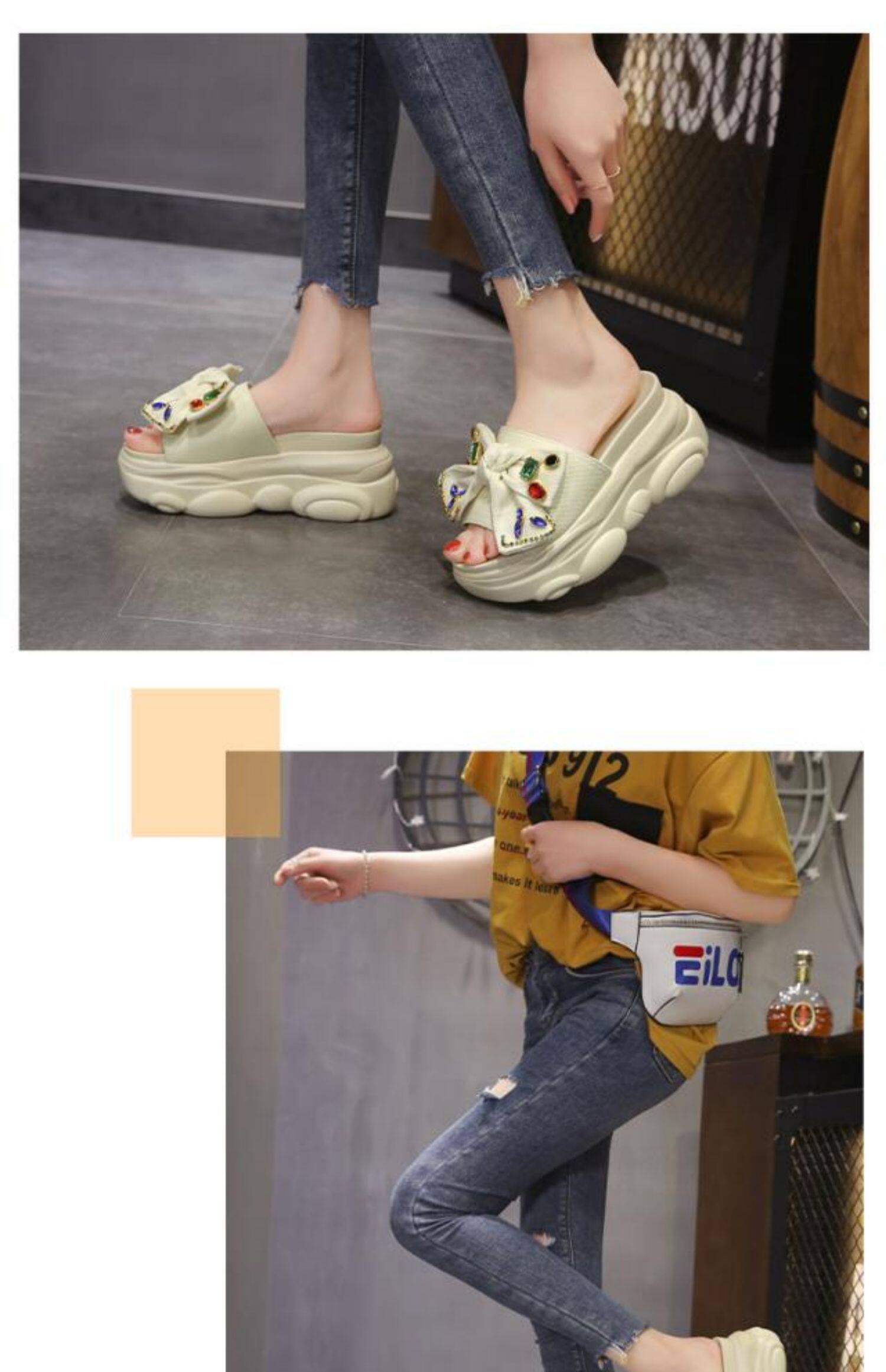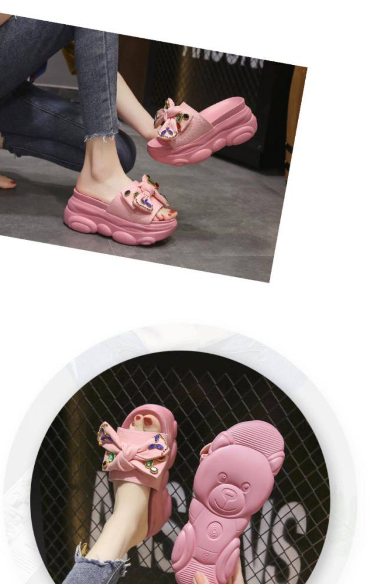 Интернет-знаменитости, удлиняющие тапочки на толстой подошве, новинка 2024 года, модные женские тапочки на платформе и высоком каблуке с бантом и стразами