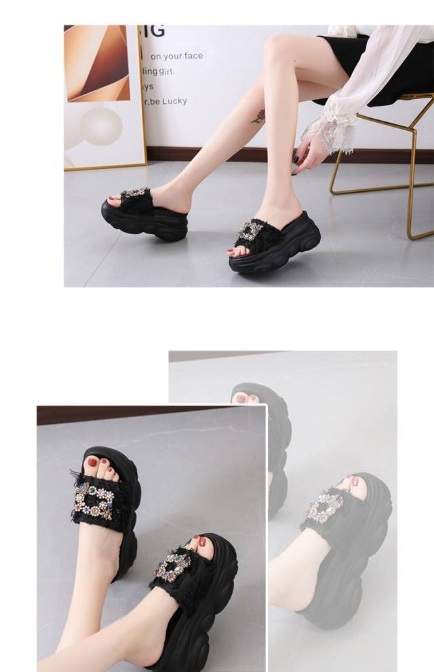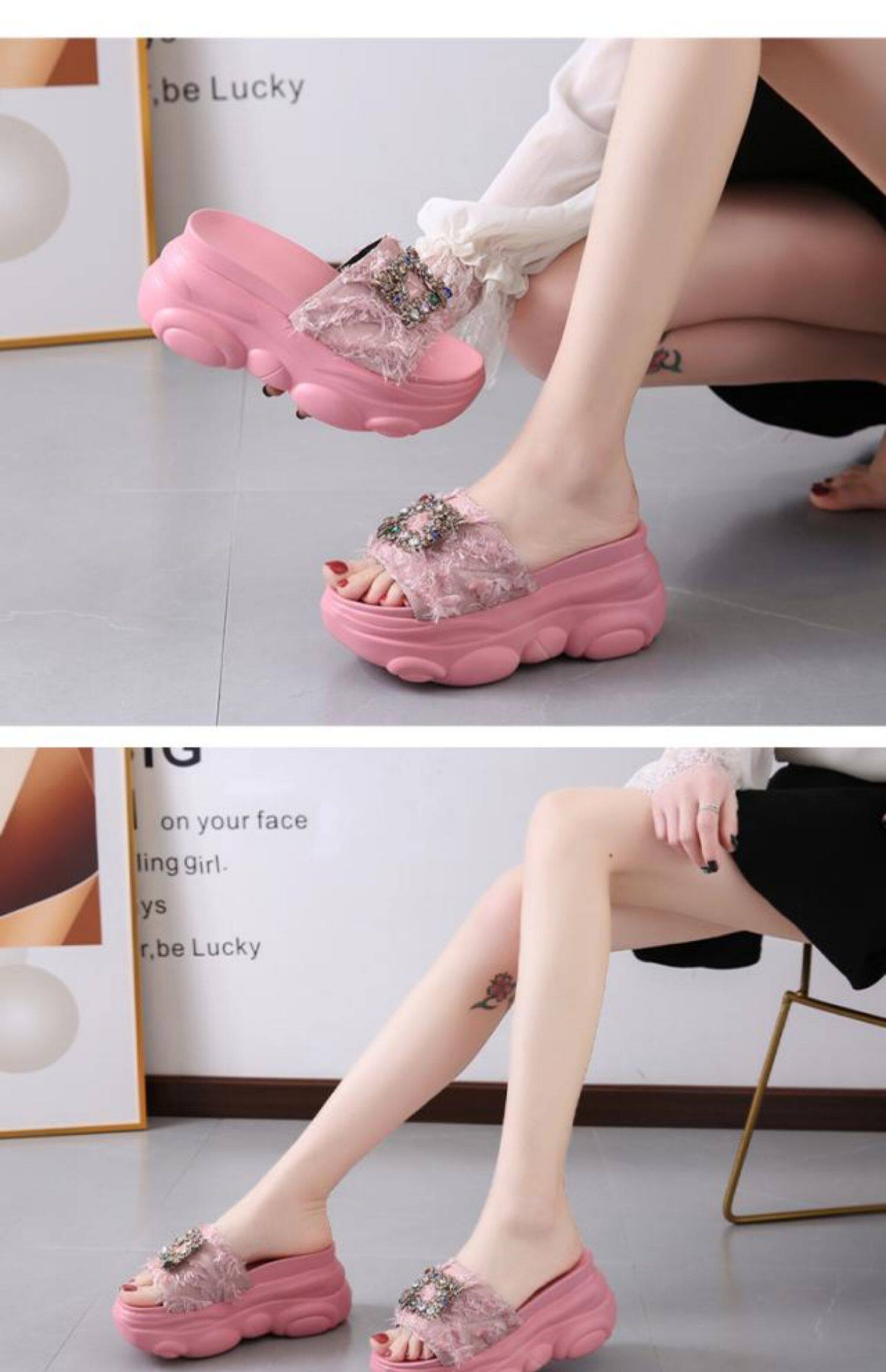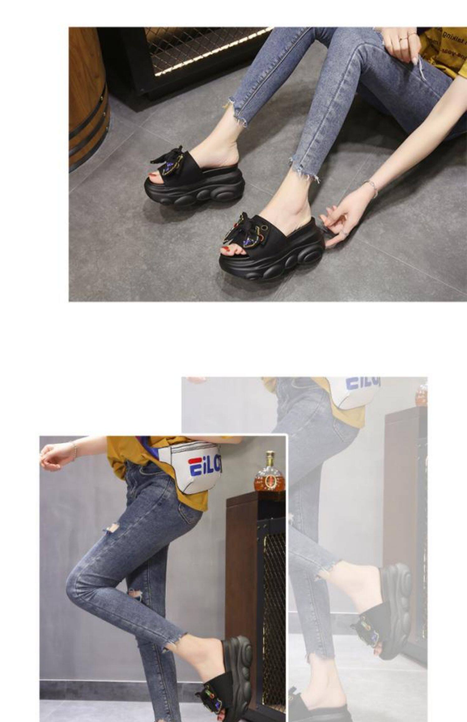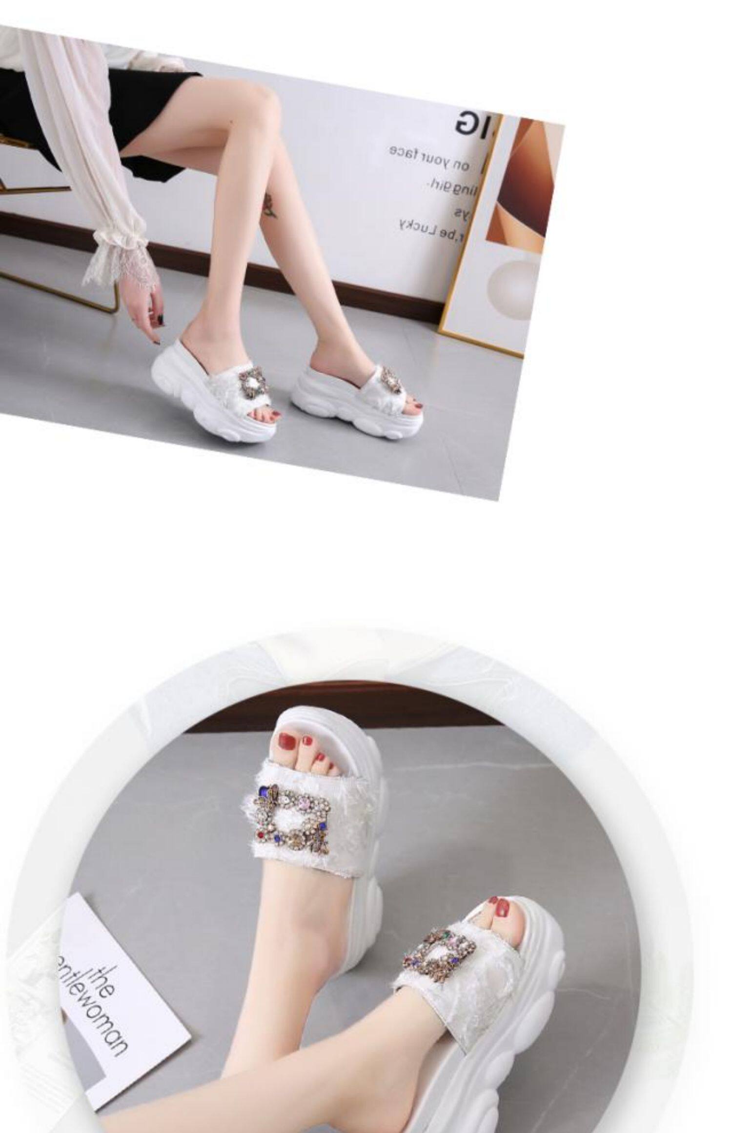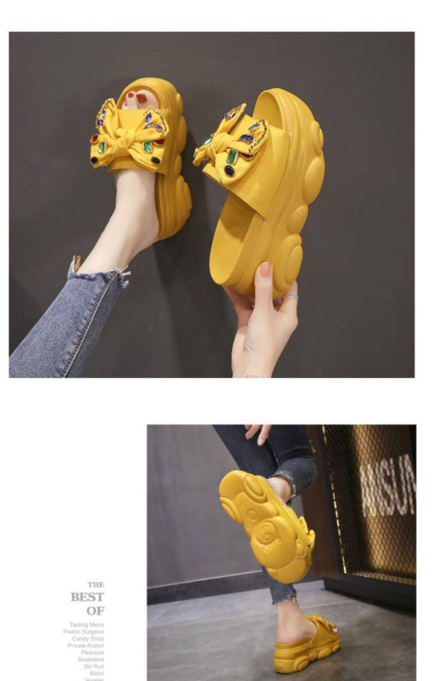 Интернет-знаменитости, удлиняющие тапочки на толстой подошве, новинка 2024 года, модные женские тапочки на платформе и высоком каблуке с бантом и стразами