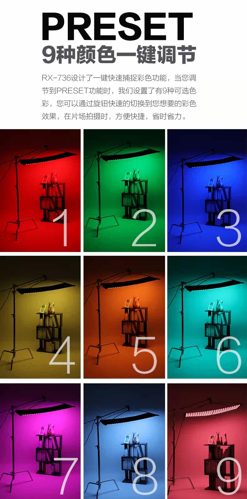 Руководитель портативного светодиода красочная фотосъемка камера RGB Rolling Lamp Цвет видео съемки Light RX-748-K8 набор