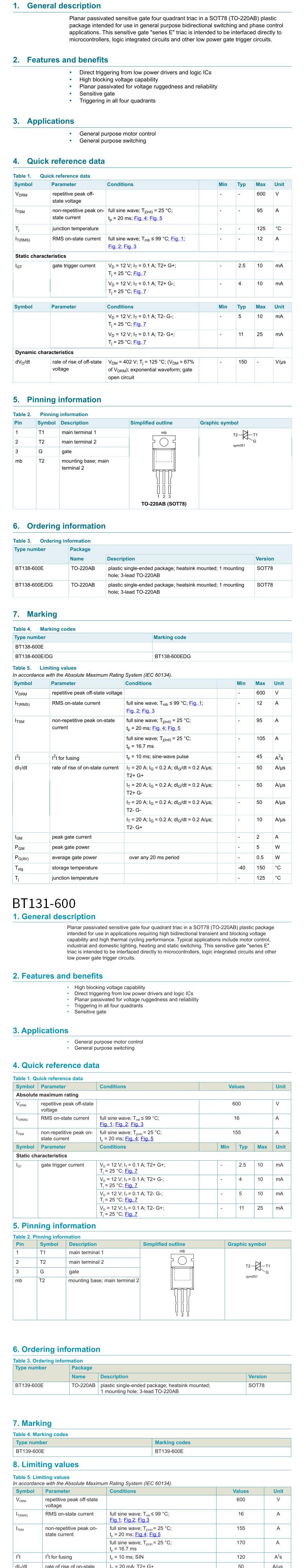 | Цвет: | BT131-600 TO-92 (20), BT134-600E до 126 (5), BT137-600E до 220 (5), BT137-800E до 220 (5), BT138-600E до 220 (2), BT138-800E до 220 (5), BT139-600E до 220 (5), BT139-800E до 220 (5), BT151-500R до 220 (5), BT151-600R до 220 (5), BT152-600R до 220 (5), BT151-800R до 220 (5), BT152-800R до 220 (5), BT136S-600E до 252 (5) |