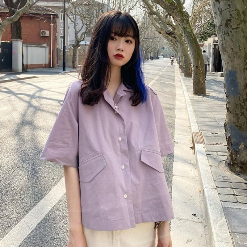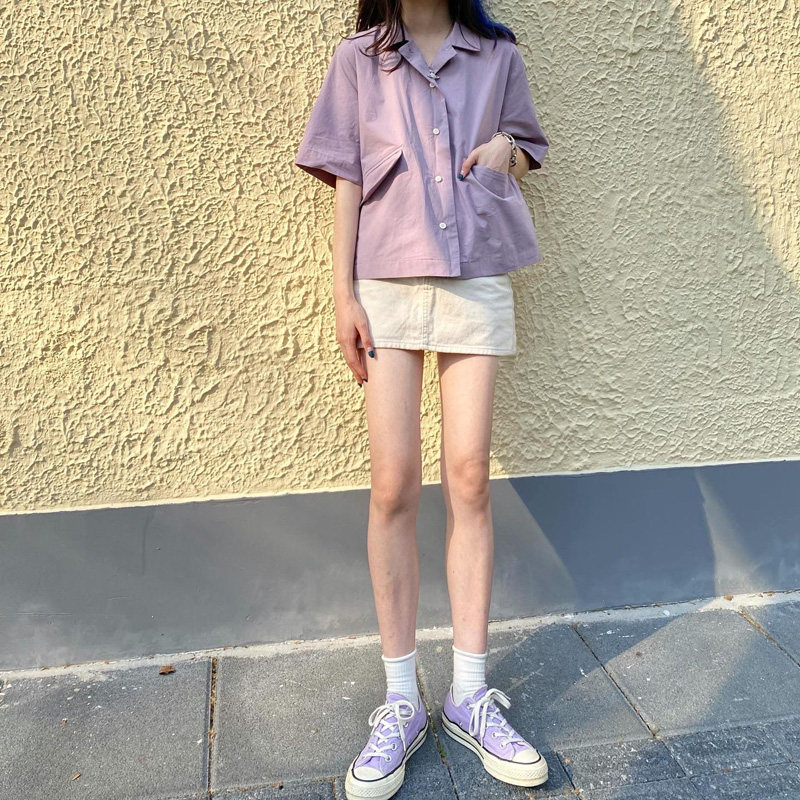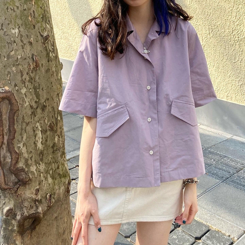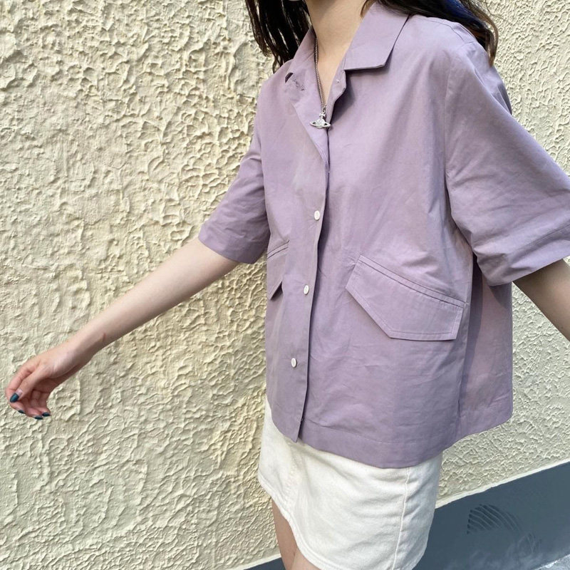 Сиреневая рубашка, костюм, куртка, короткий рукав, французский стиль
