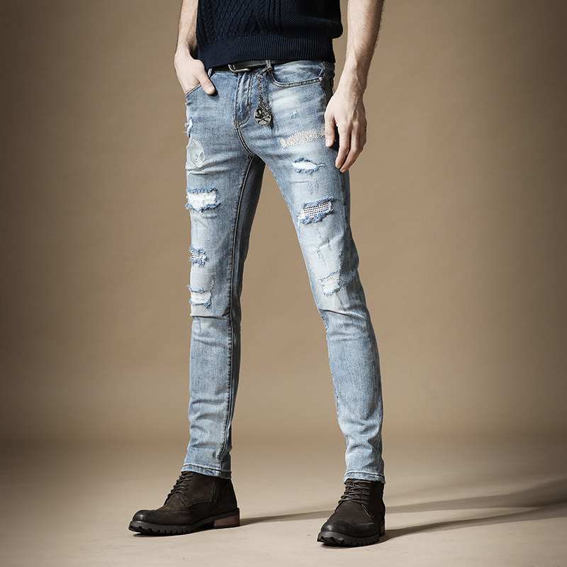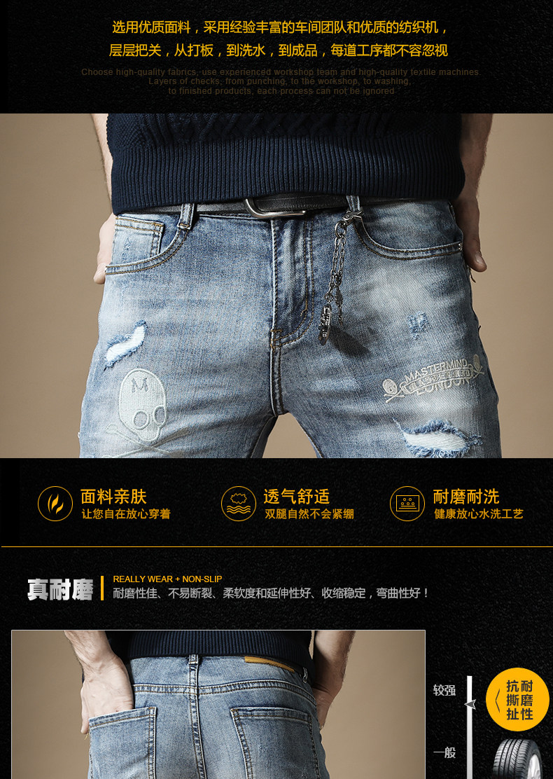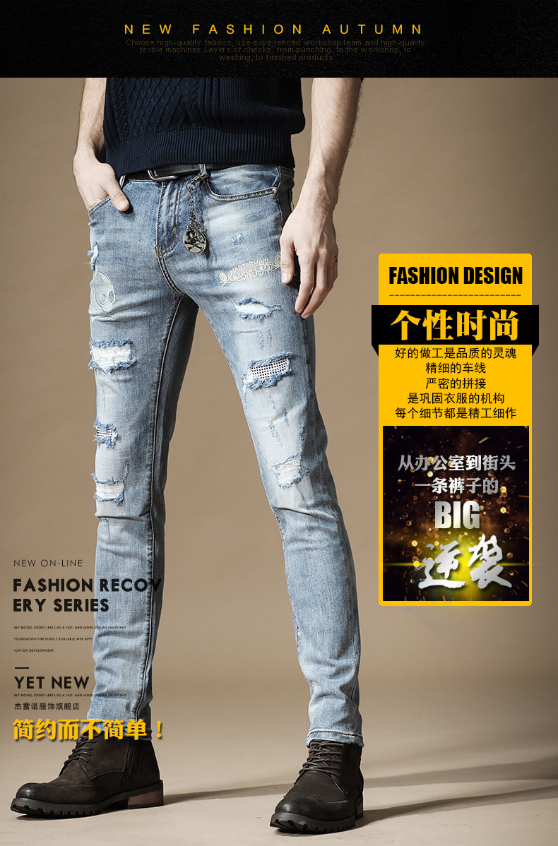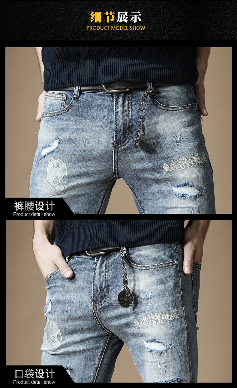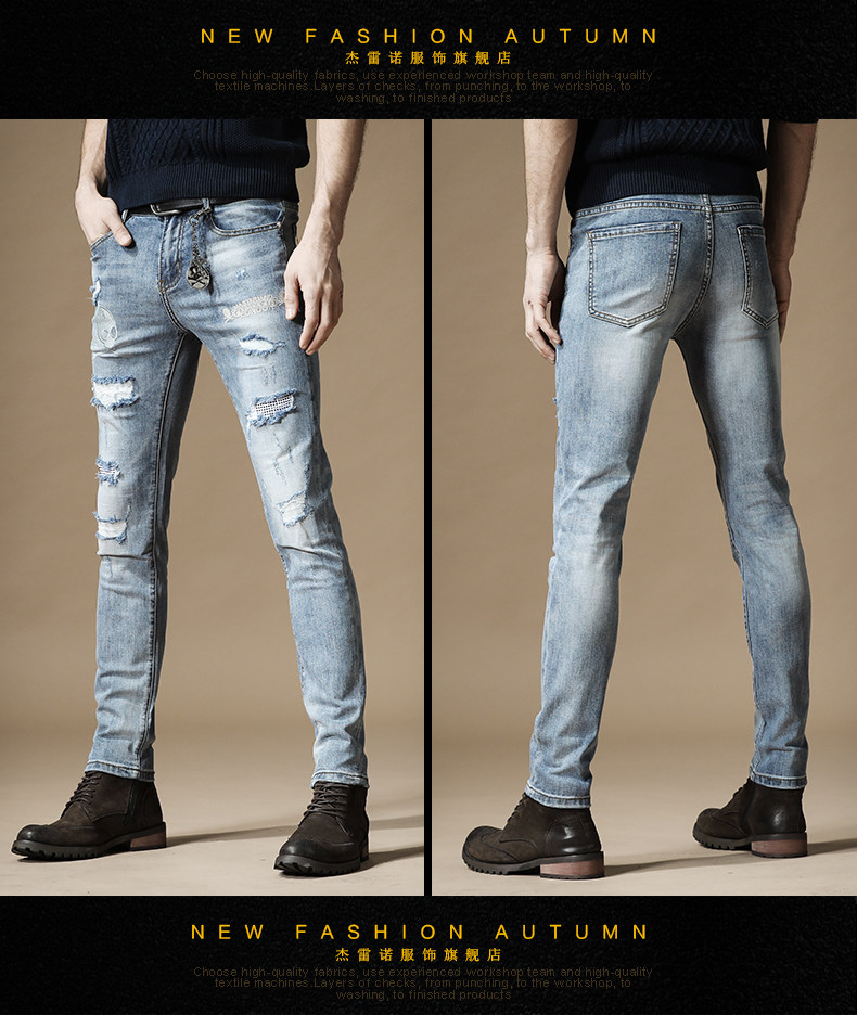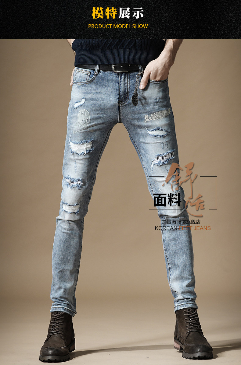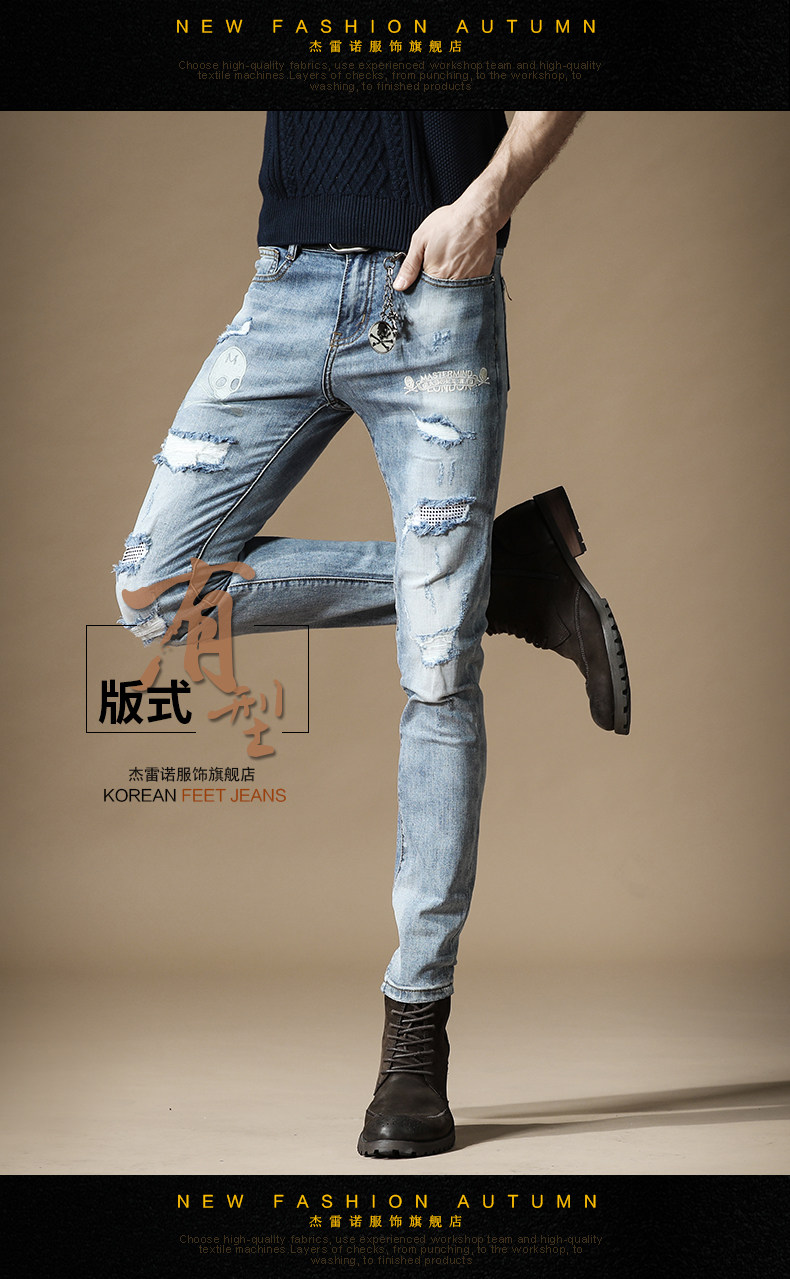 杰雷诺 Джинсы в стиле хип-хоп, подвеска, тонкие штаны, с вышивкой, в корейском стиле, осенние