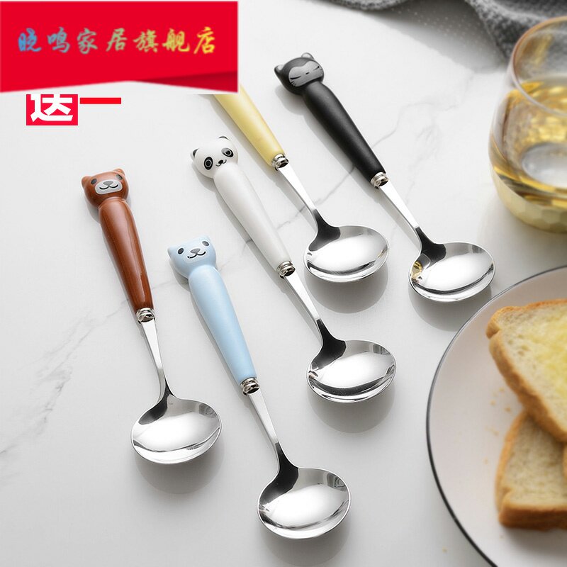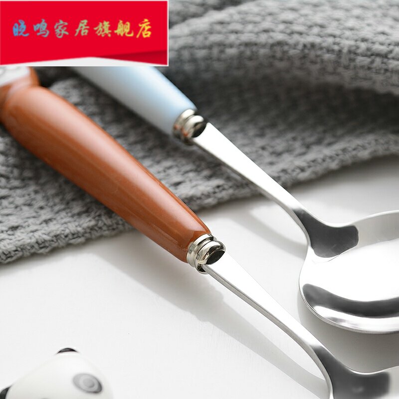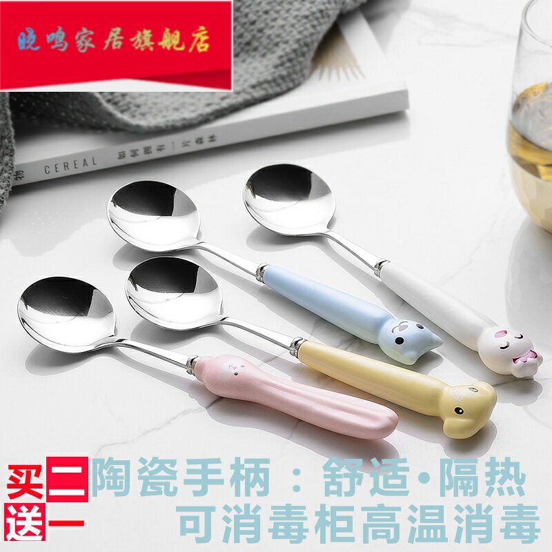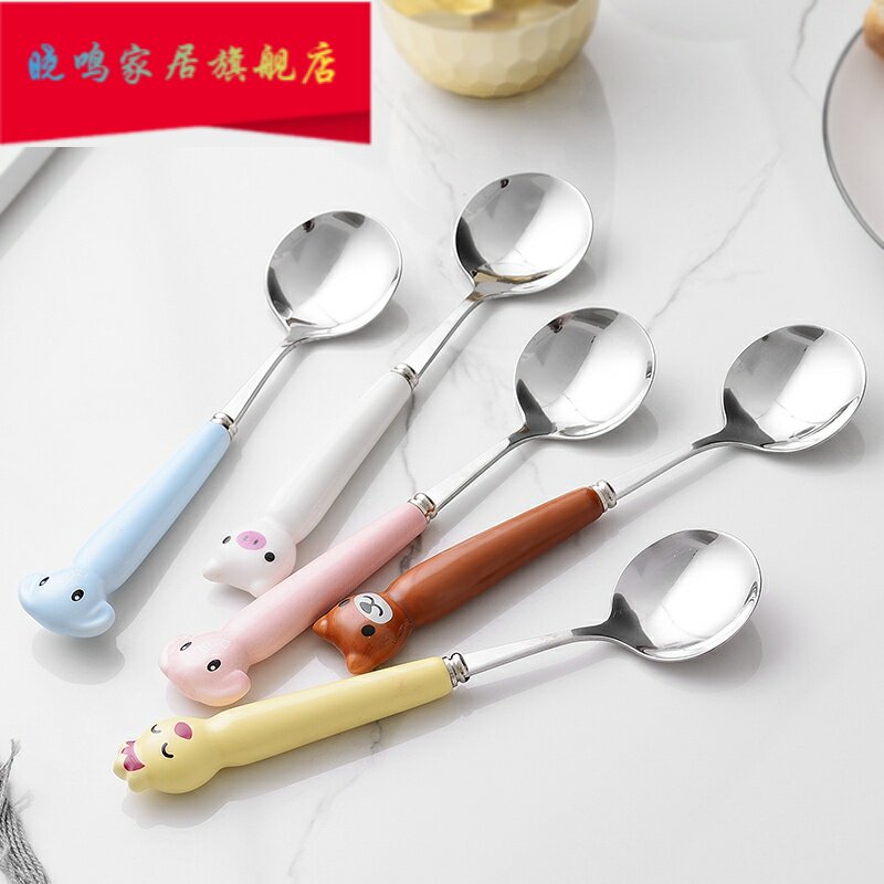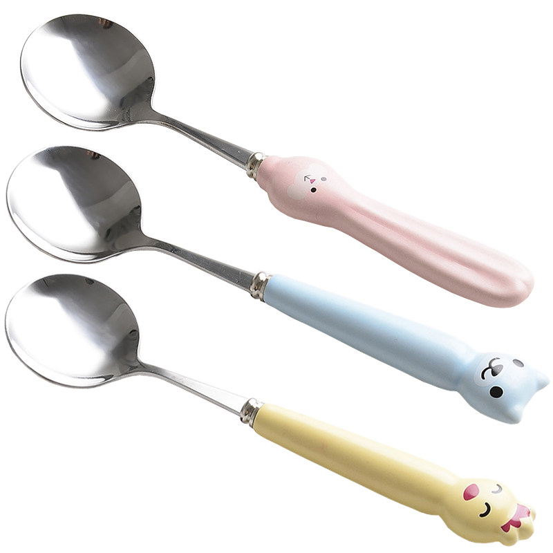Милая большая керамическая мультяшная детская креативная ложка из нержавеющей стали