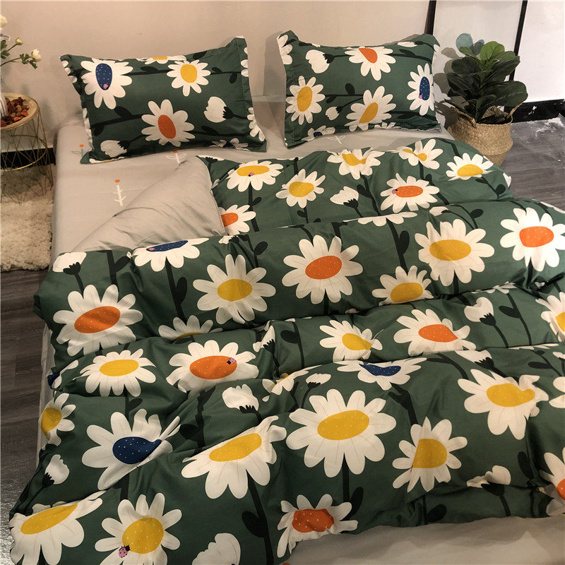 Пододеяльник, комплект, свежее покрывало, простыня, в корейском стиле, 4 предмета, 3 предмета