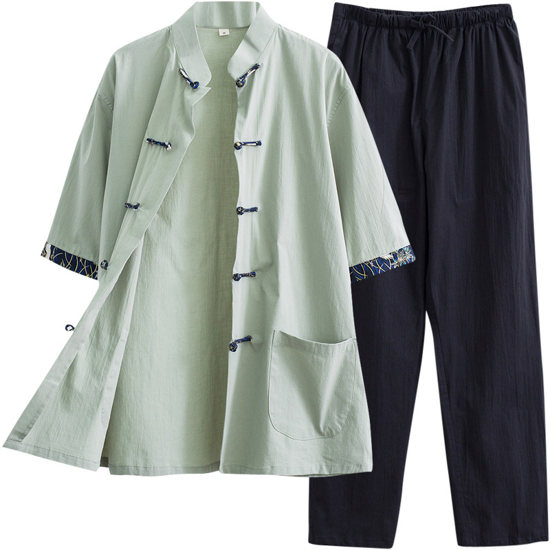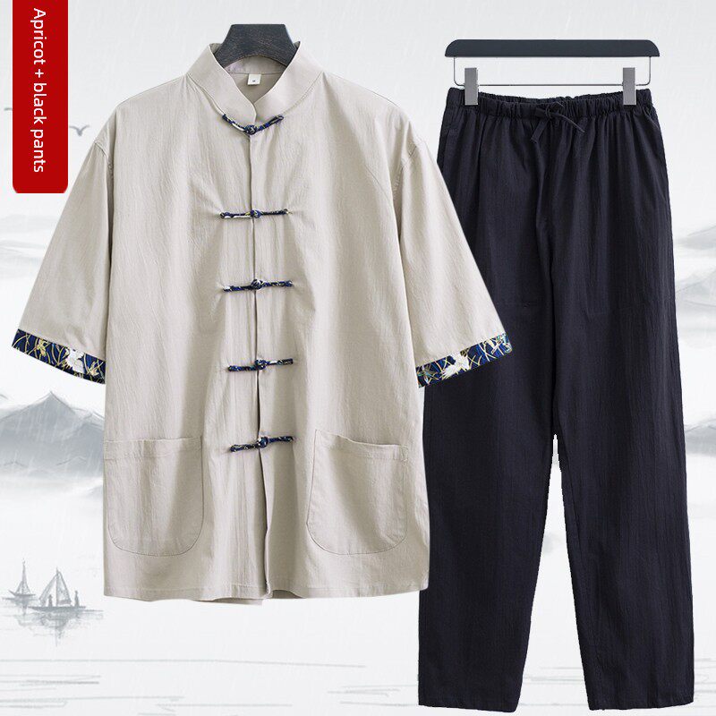 Костюм Тан, мужская летняя тонкая одежда с короткими рукавами для людей молодого и среднего возраста, хлопок и лен в китайском стиле, мужская повседневная одежда в стиле ретро в китайском стиле, династия Хань