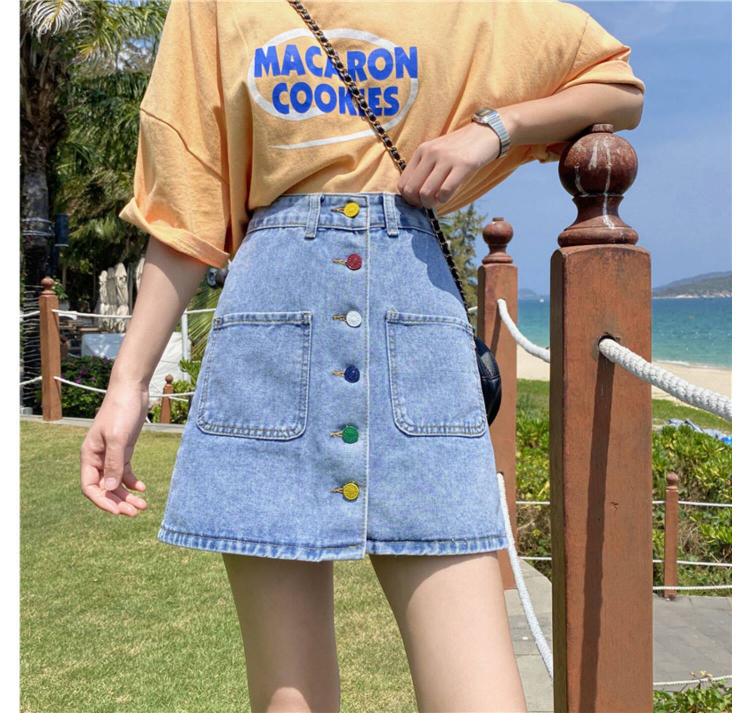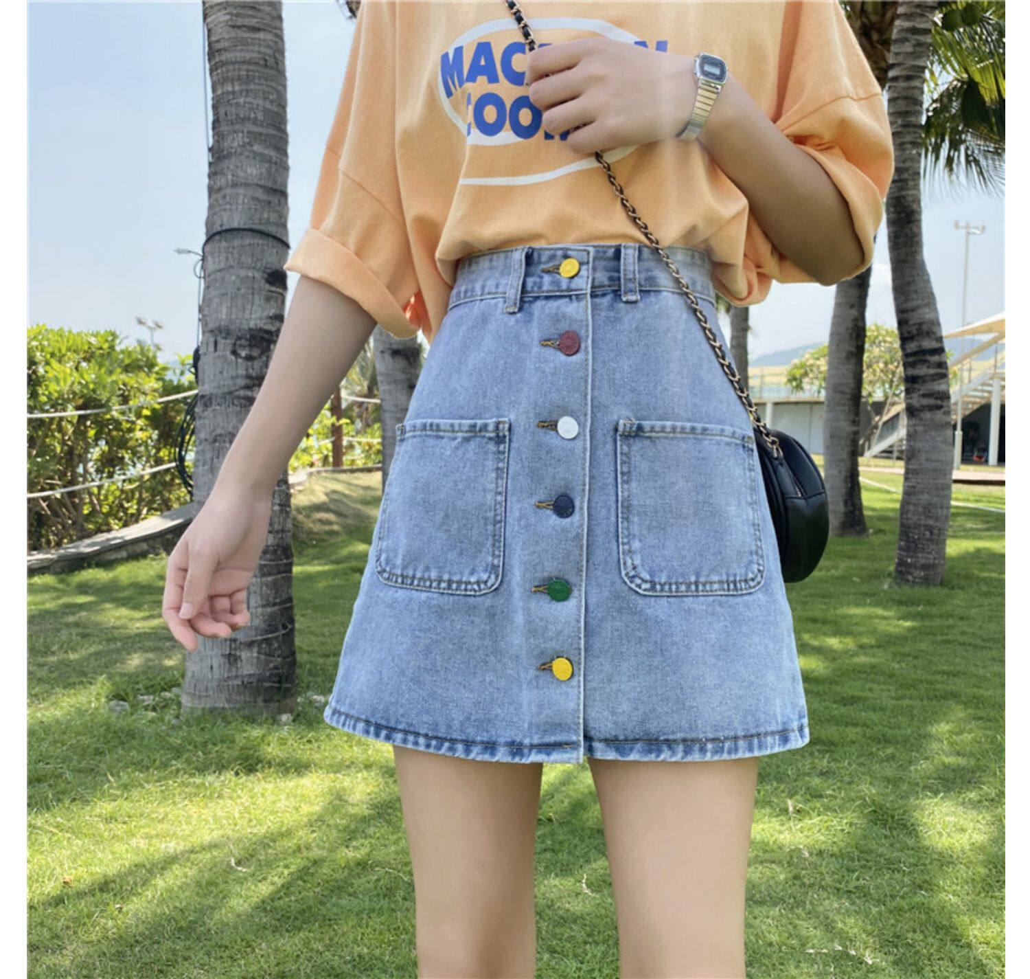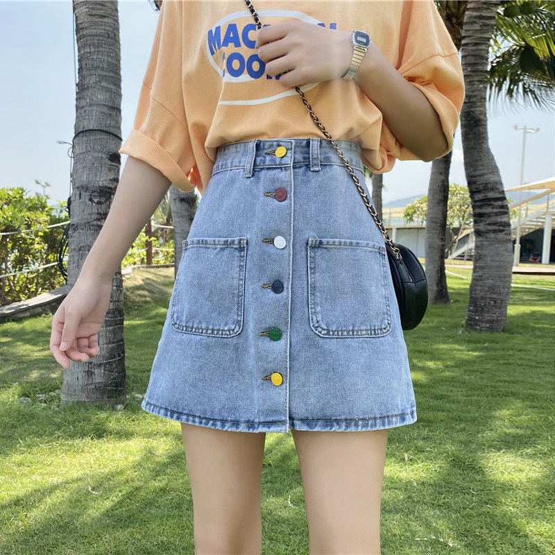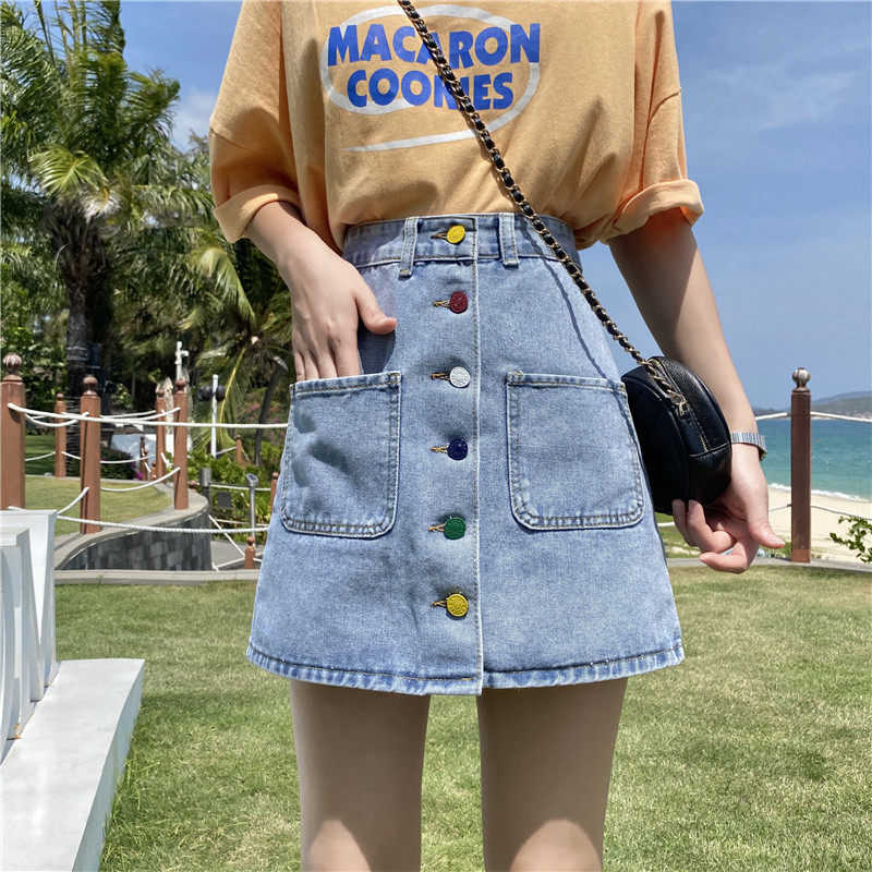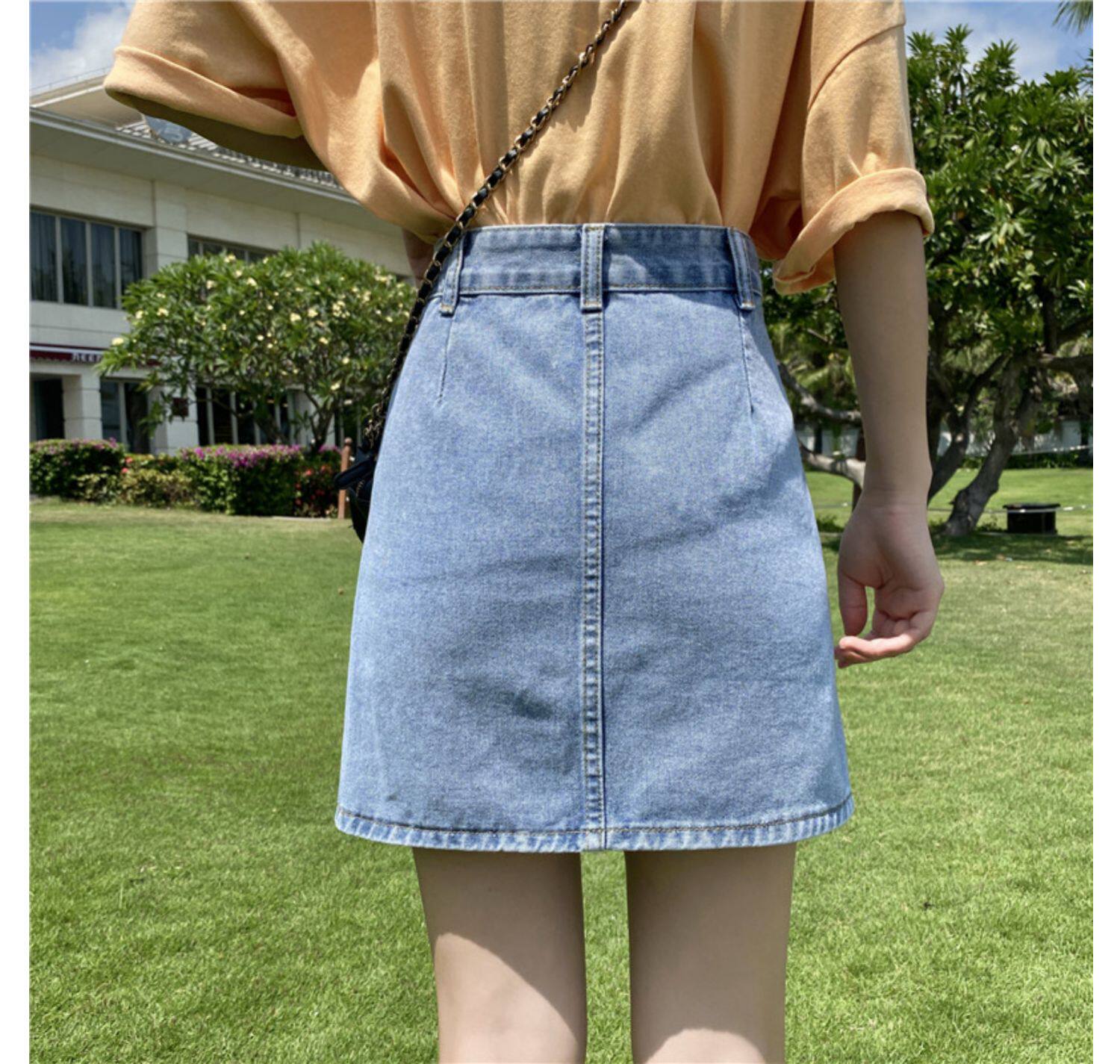 Приталенная осенняя джинсовая юбка для школьников и студентов, коллекция 2021, большой размер, высокая талия, А-силуэт, с акцентом на бедрах