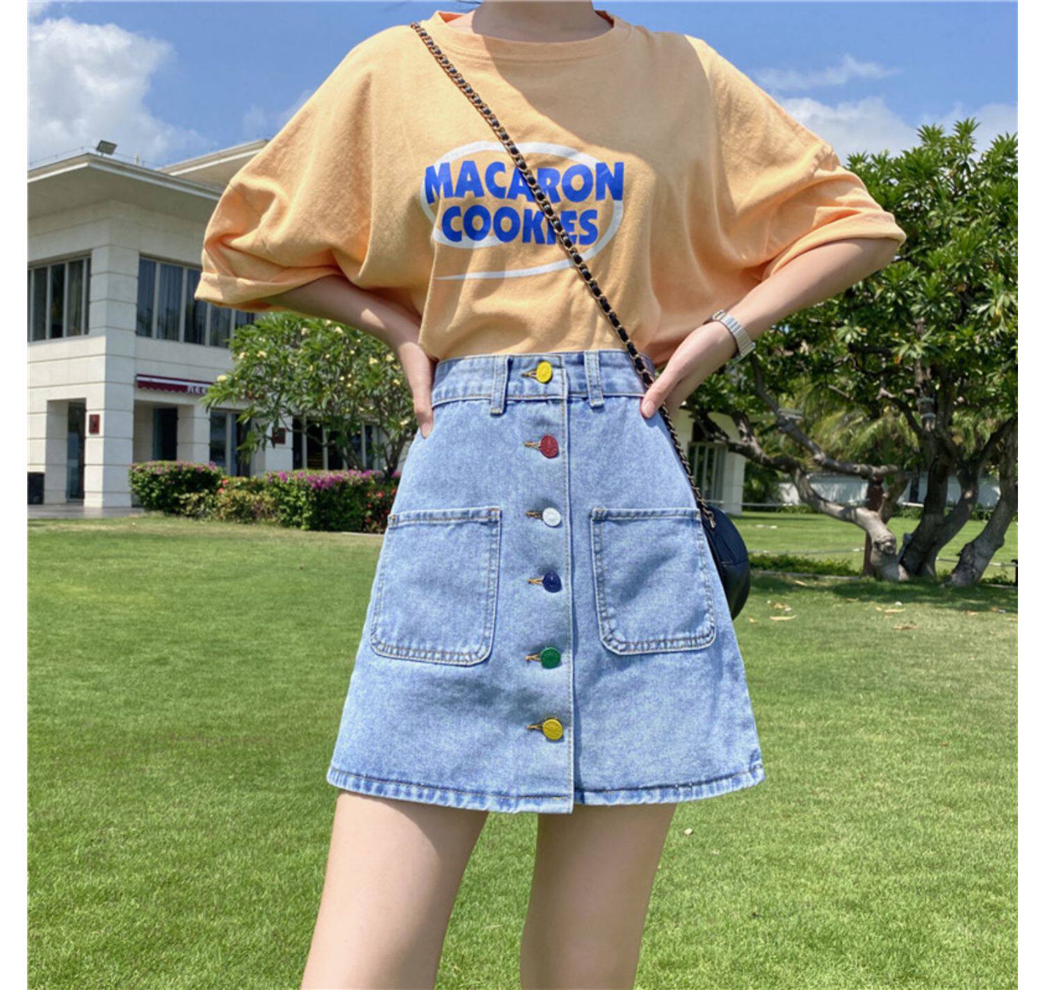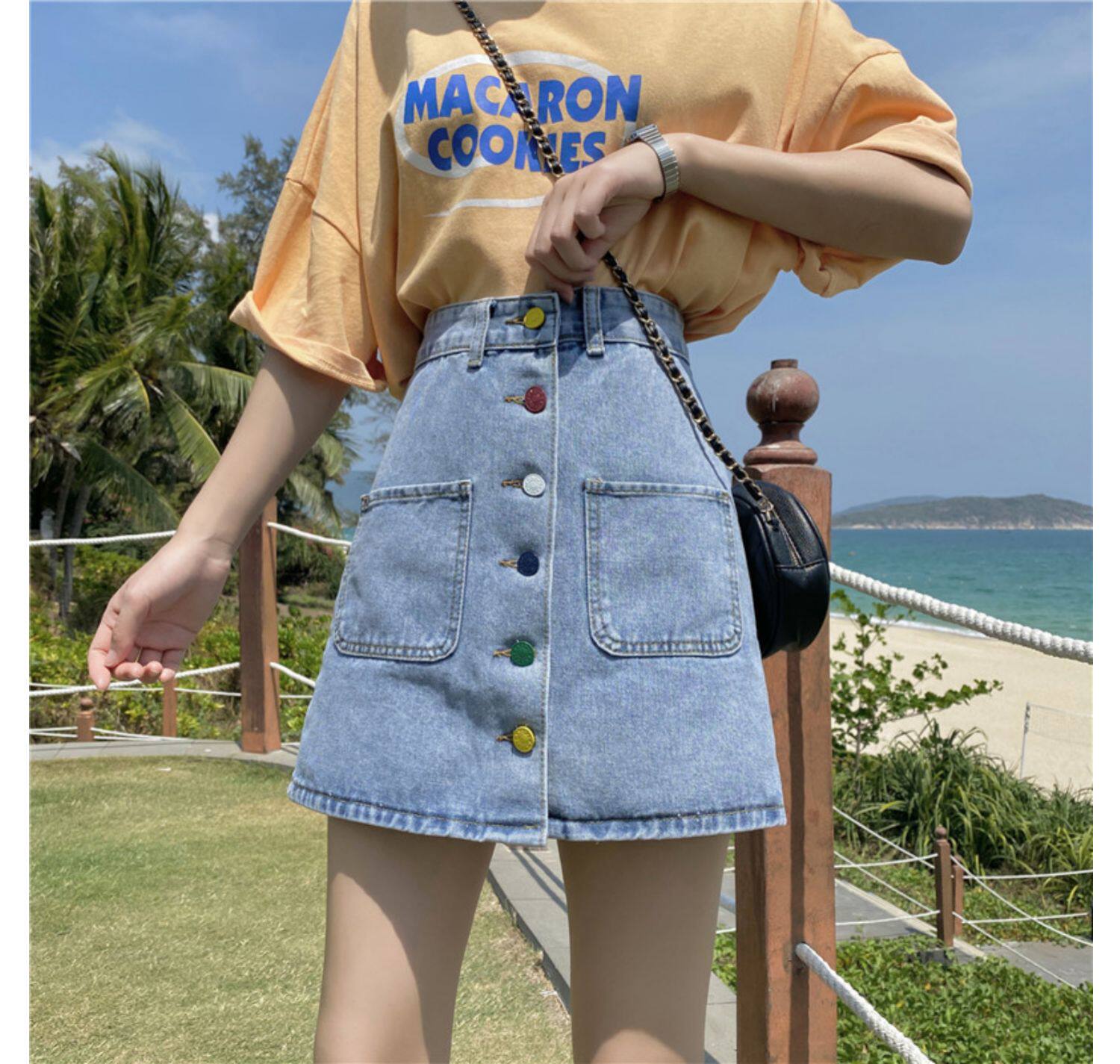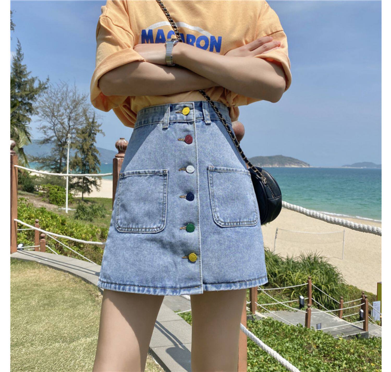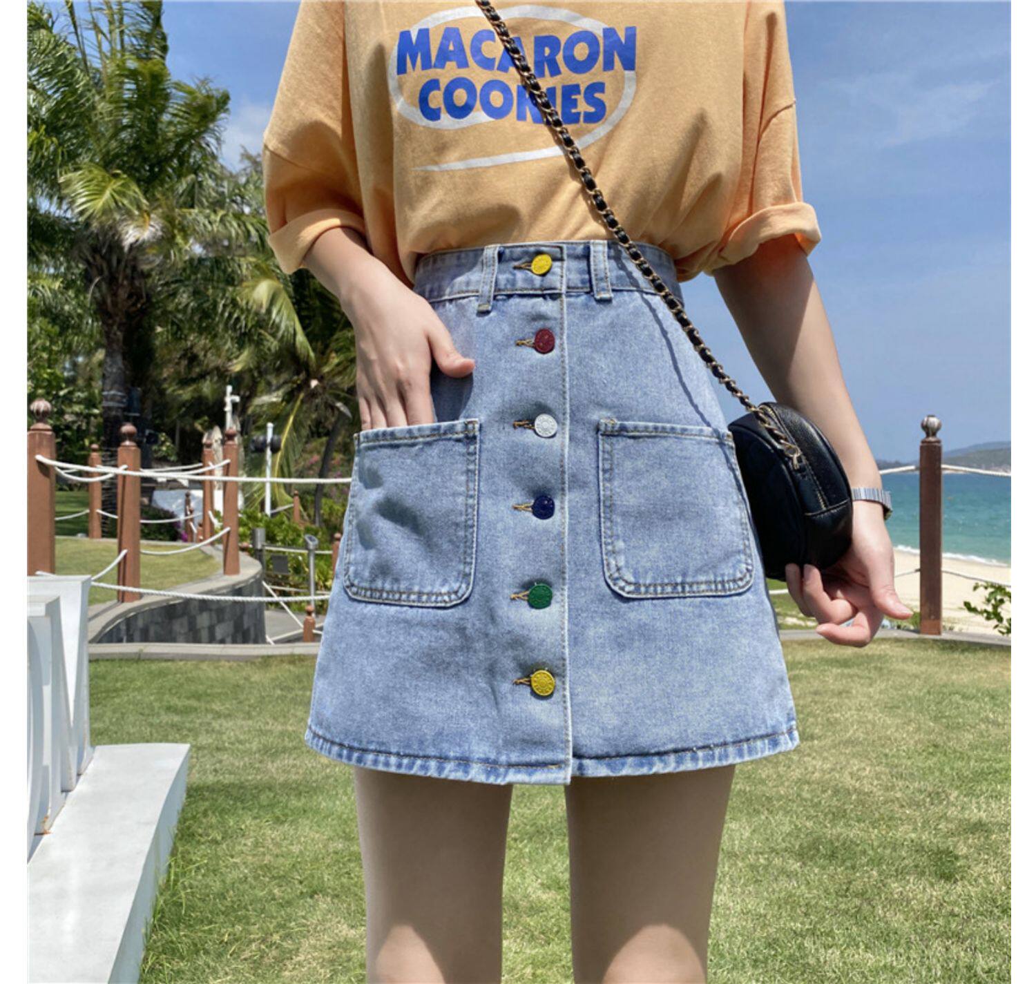 Приталенная осенняя джинсовая юбка для школьников и студентов, коллекция 2021, большой размер, высокая талия, А-силуэт, с акцентом на бедрах