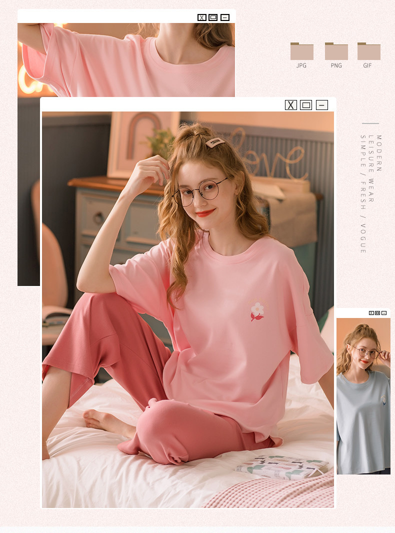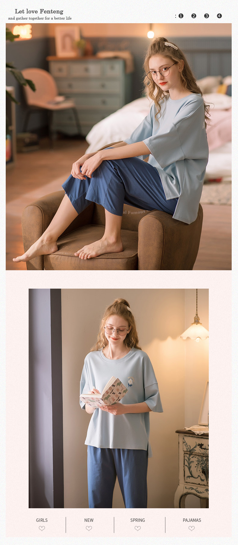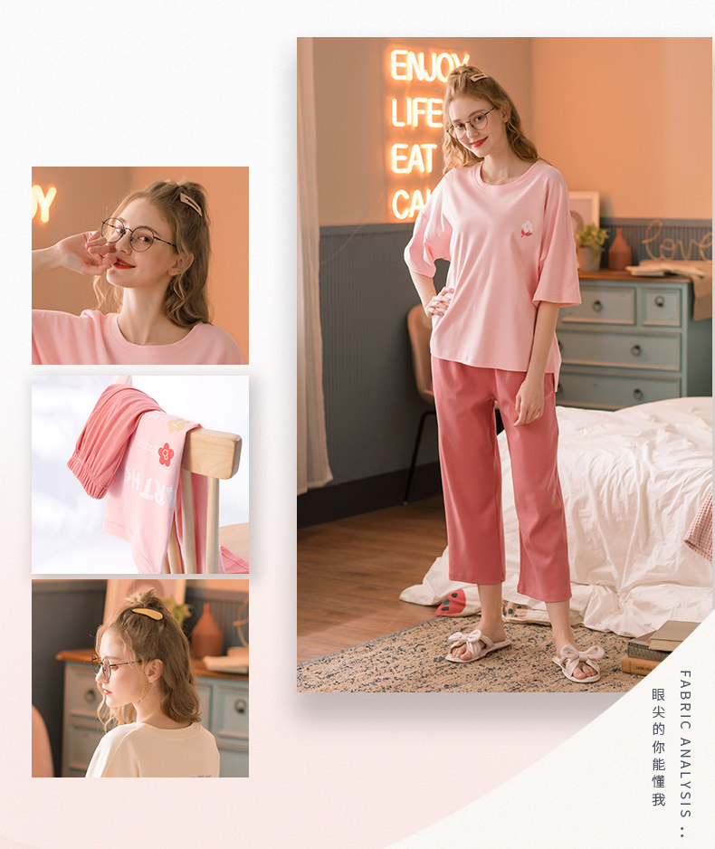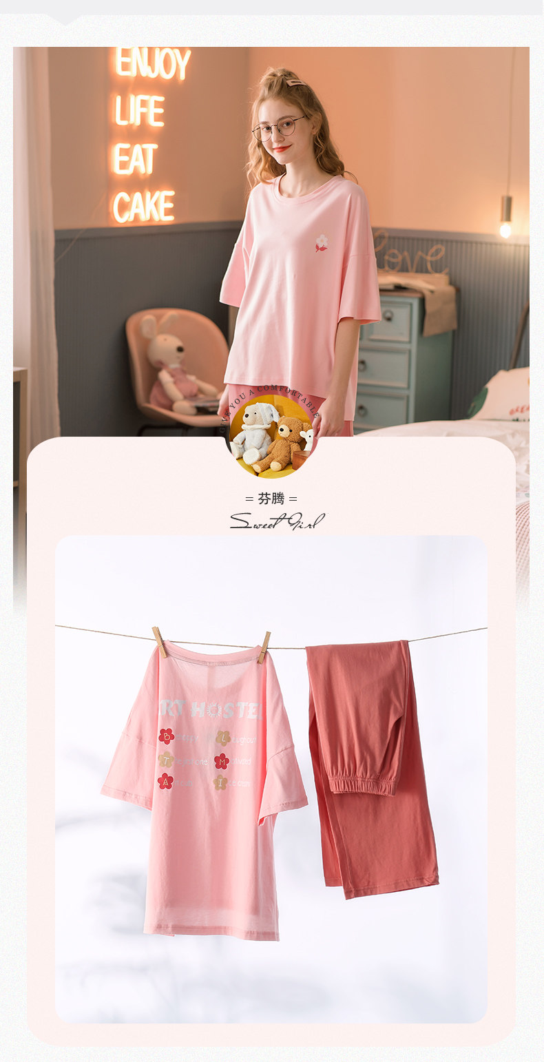 芬腾 Тонкая пижама, хлопковый милый комплект для отдыха, в корейском стиле
