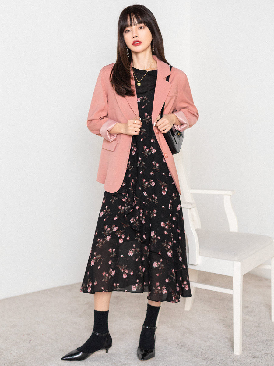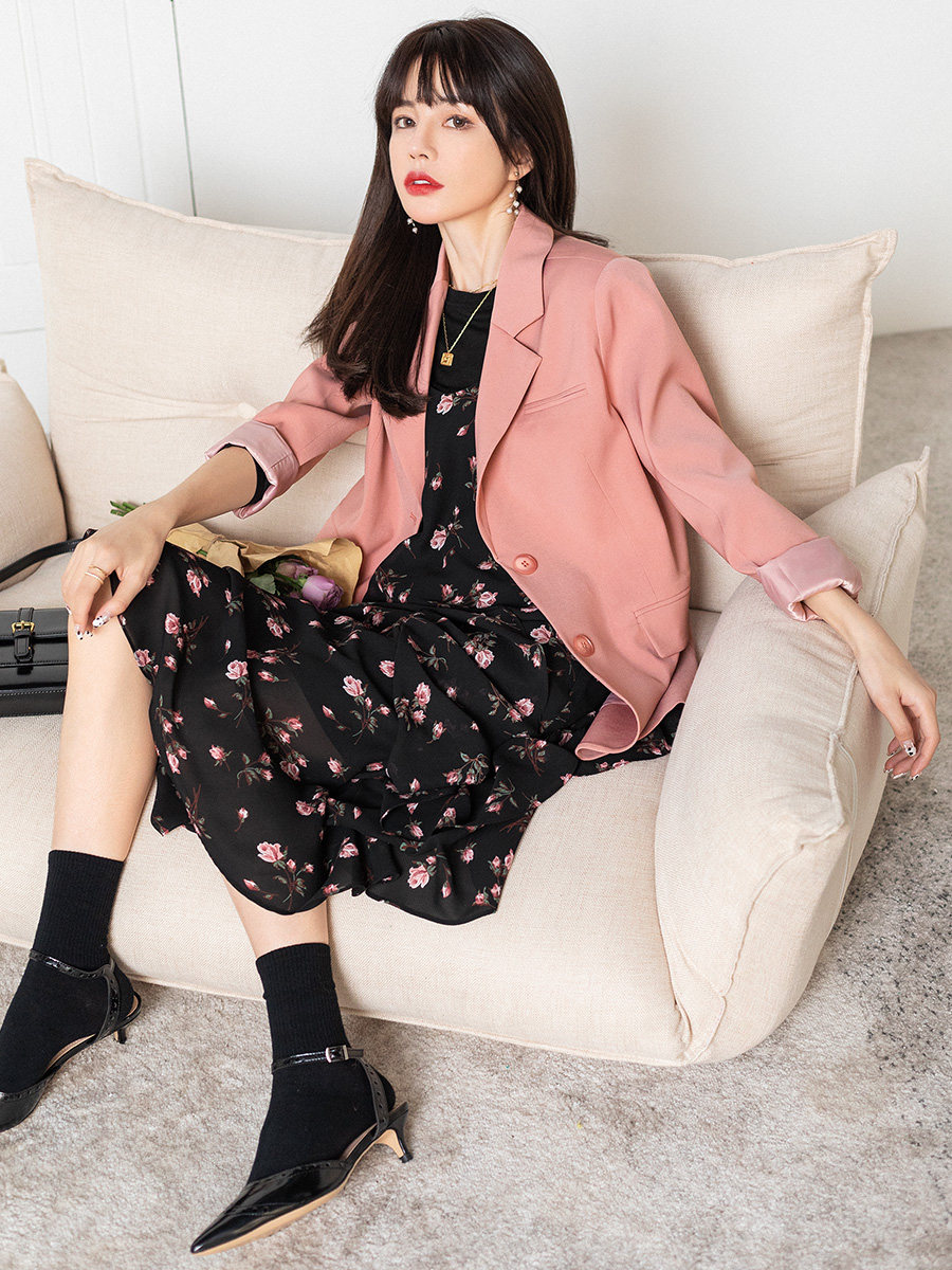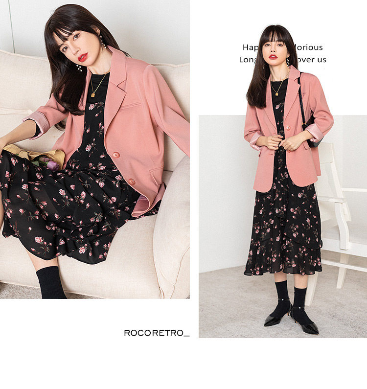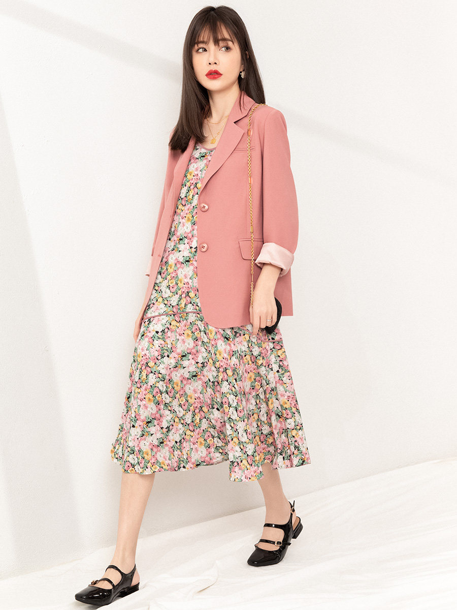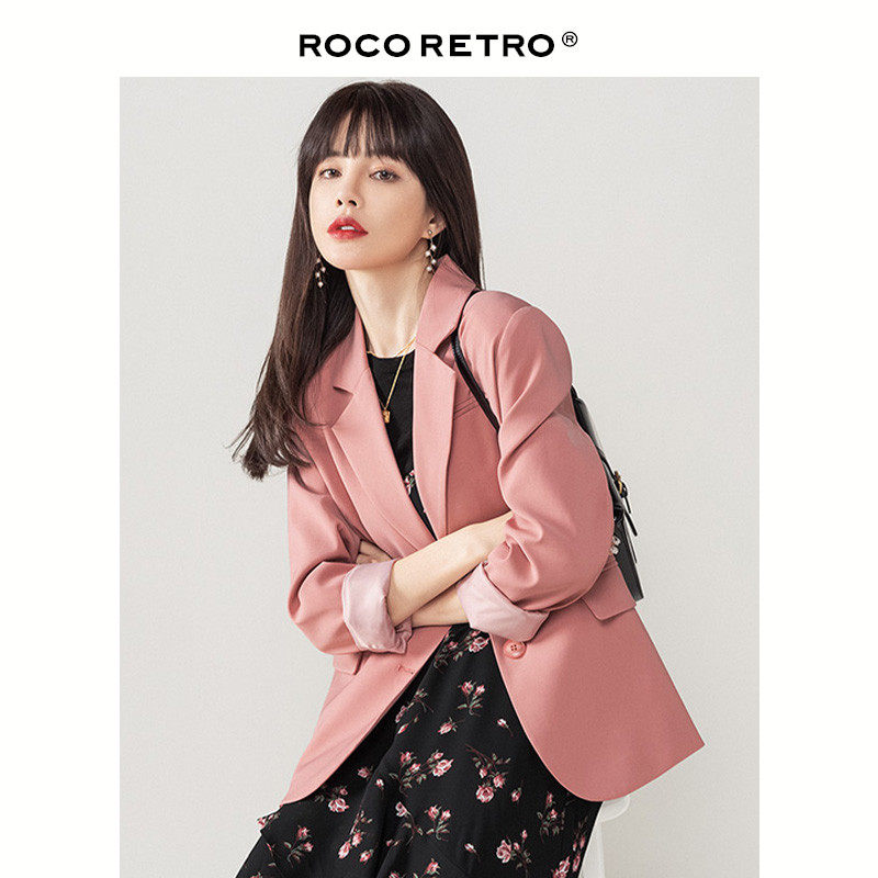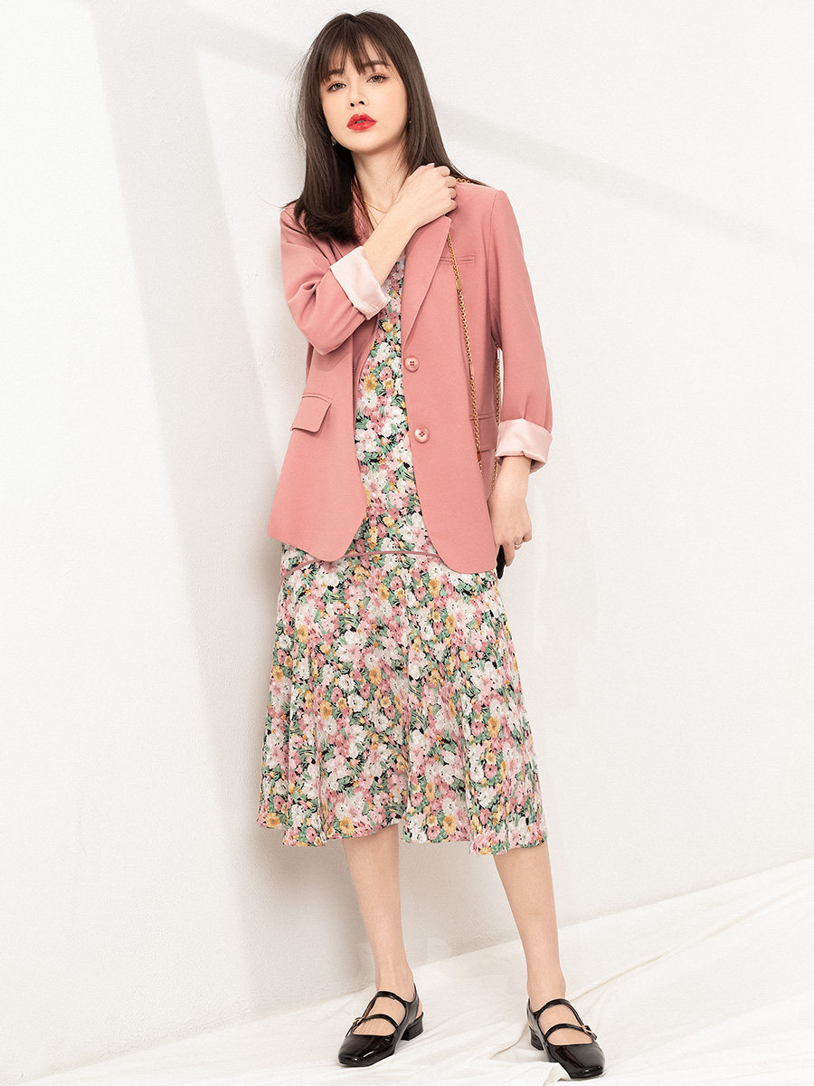 Розовый весенний пиджак классического кроя, яркий броский стиль, изысканный стиль