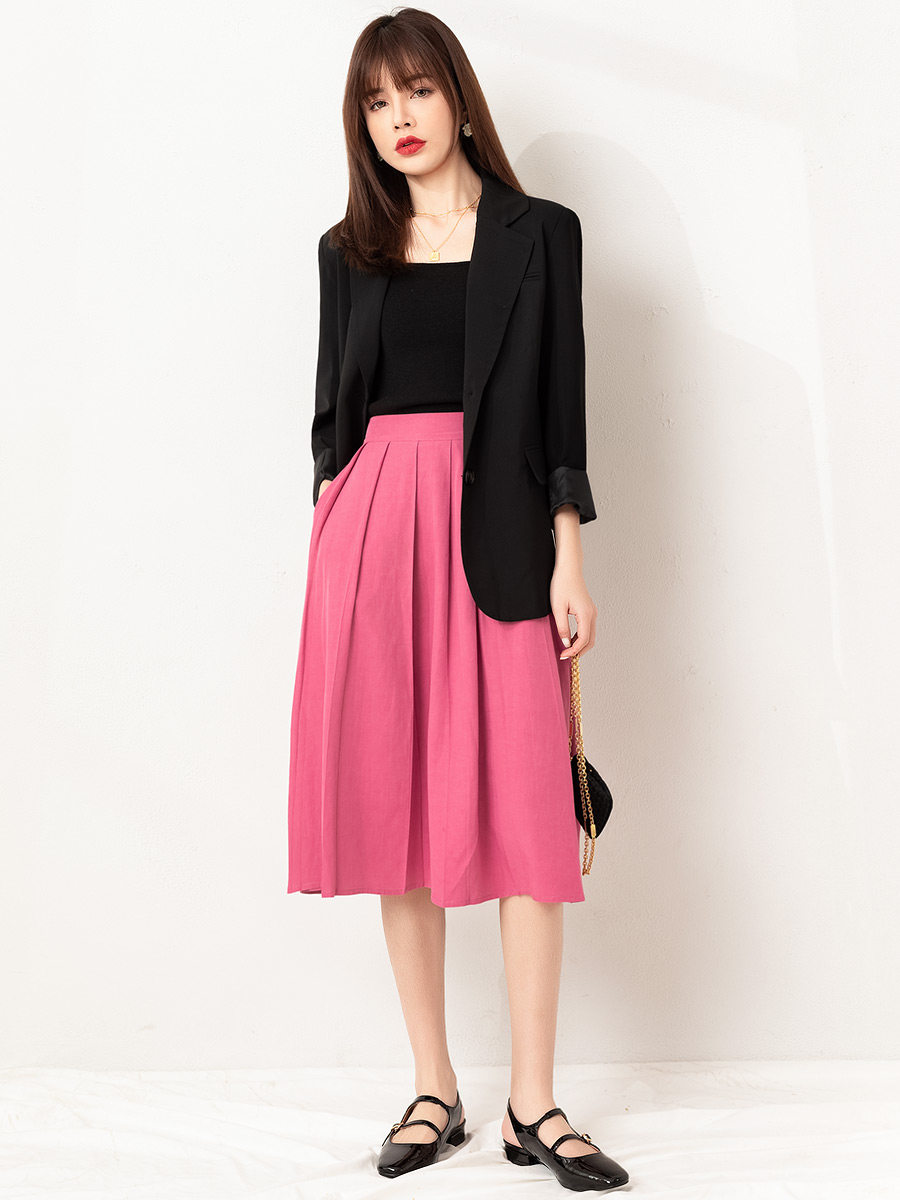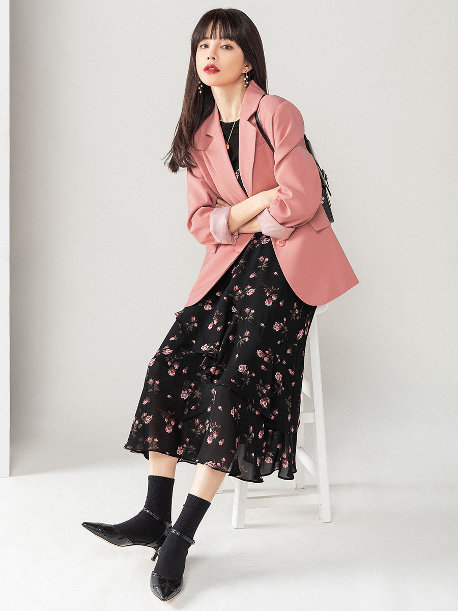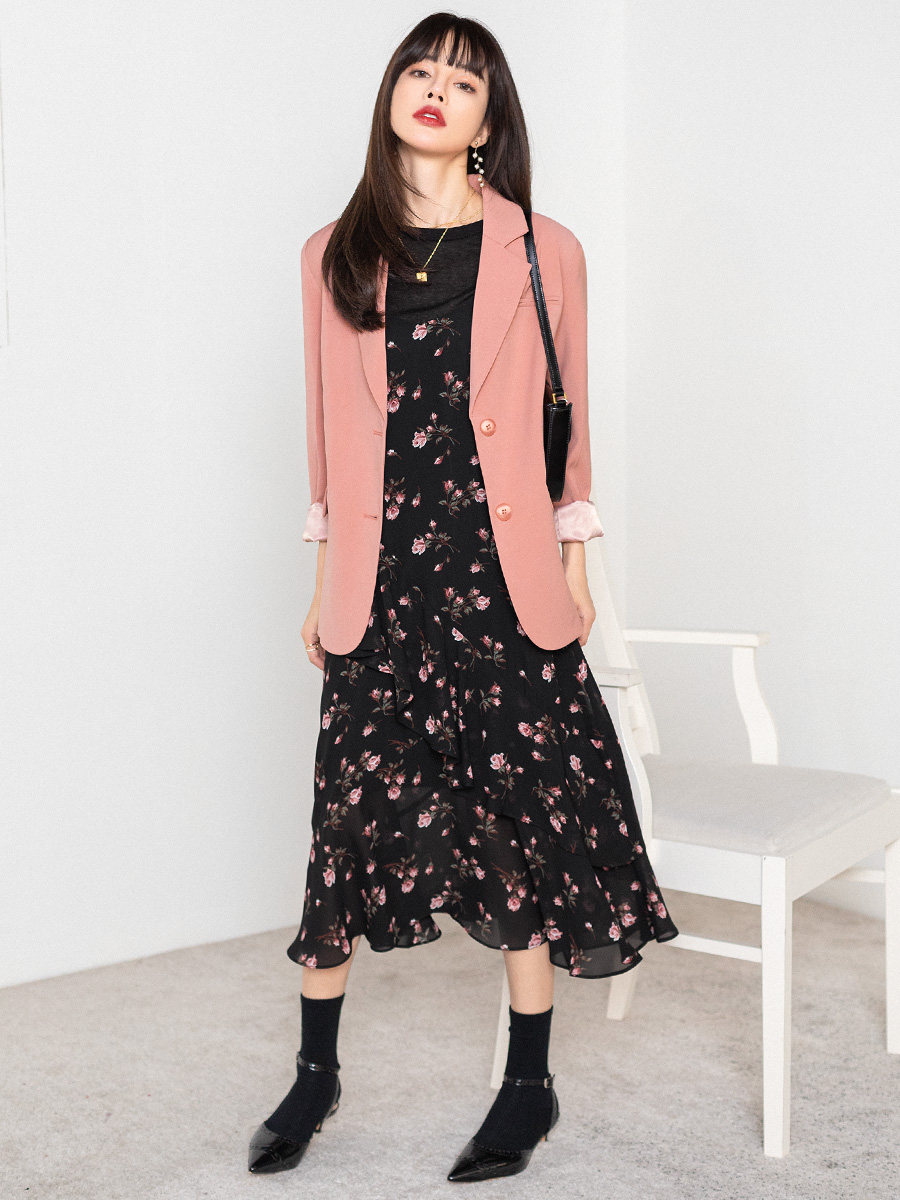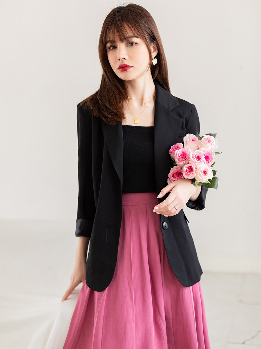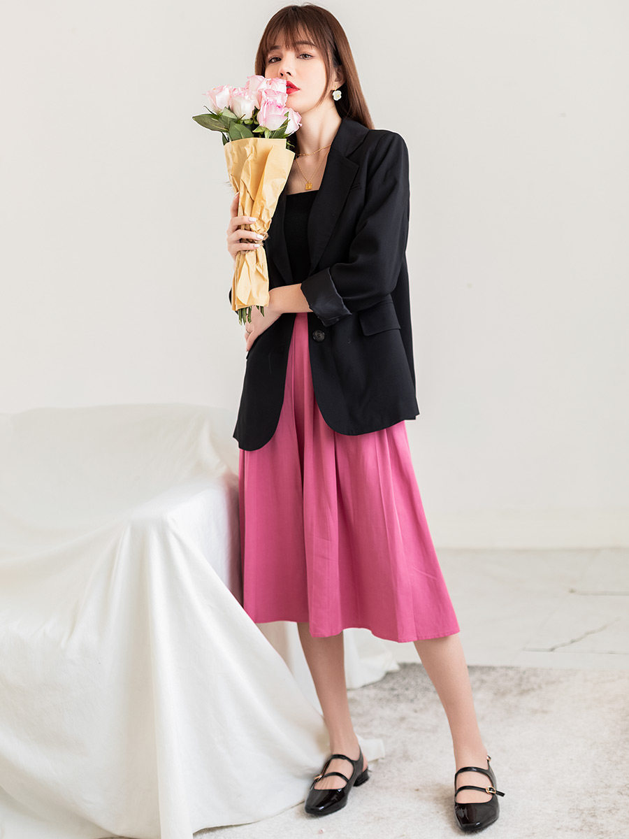 Розовый весенний пиджак классического кроя, яркий броский стиль, изысканный стиль