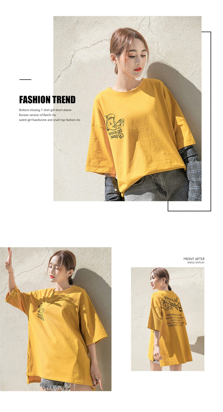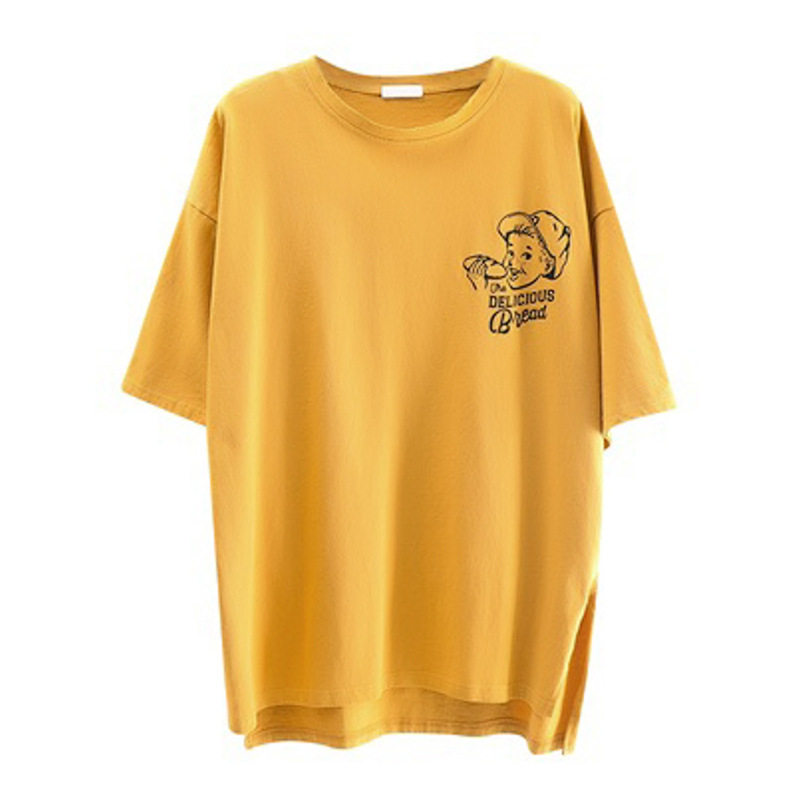 Желтая длинная футболка, свободный крой, средней длины