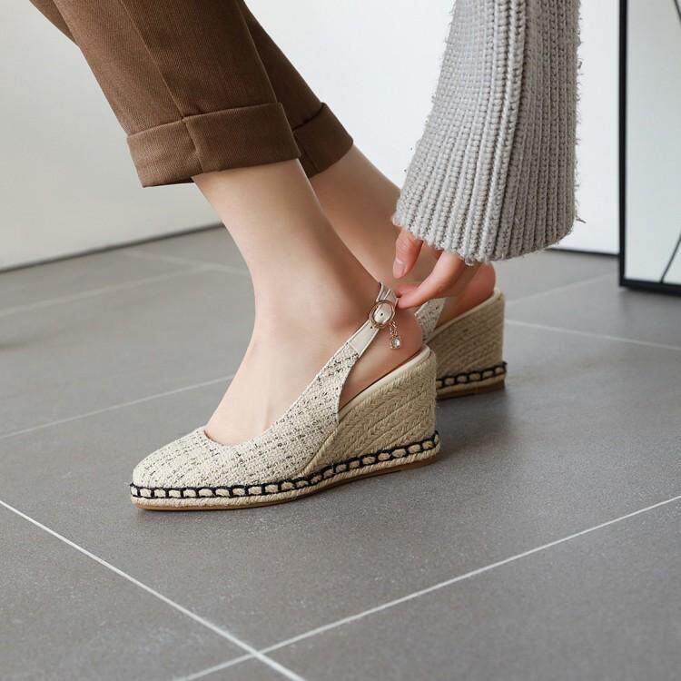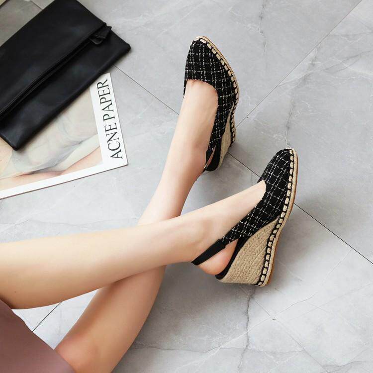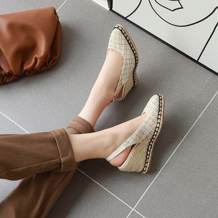 Roman Baotou, пустые соломенные сандалии на танкетке, рыбацкая обувь на высоком каблуке в сказочном стиле, женская обувь на платформе со стразами, женская толстая подошва