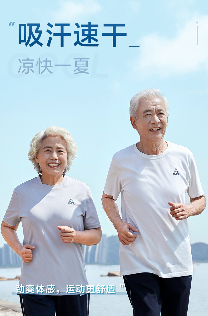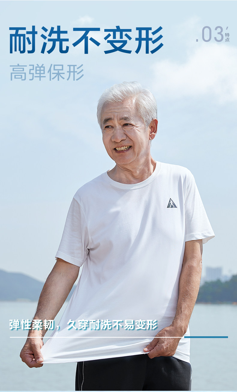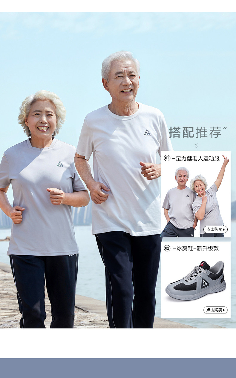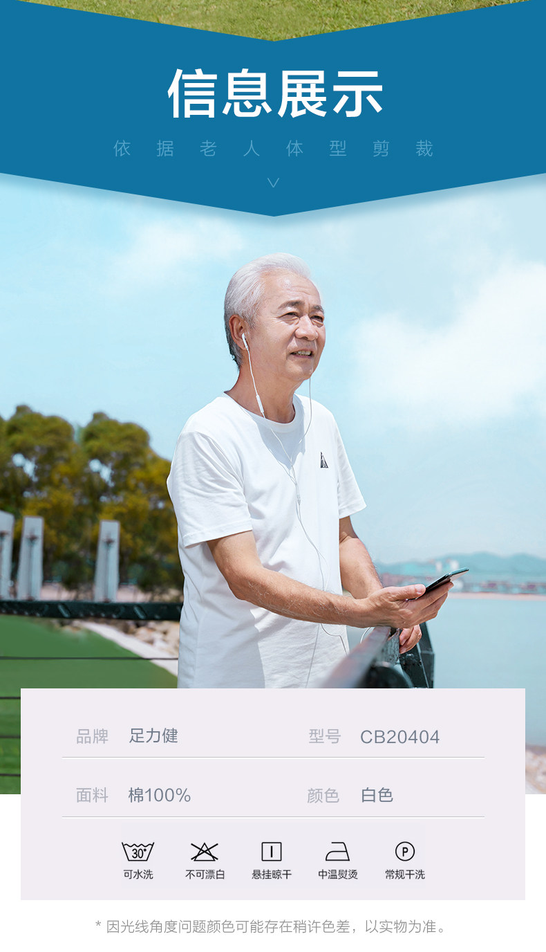 足力健 Белая хлопковая дышащая тонкая летняя спортивная футболка с коротким рукавом, для среднего возраста