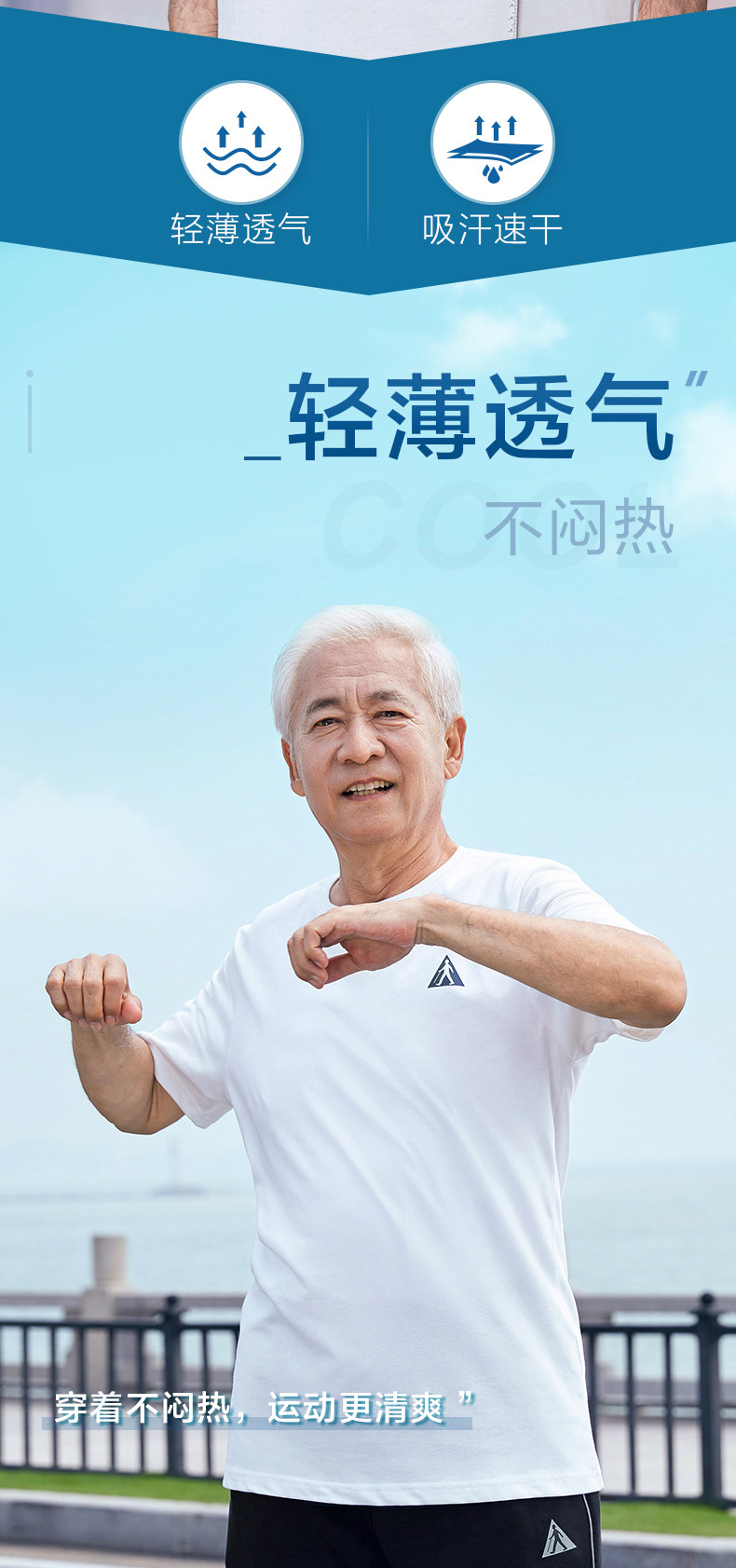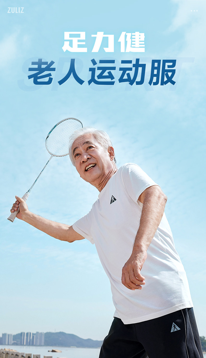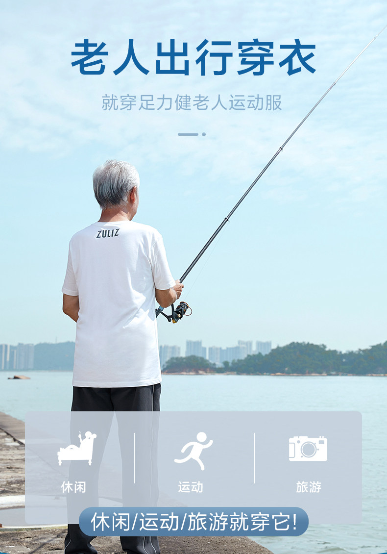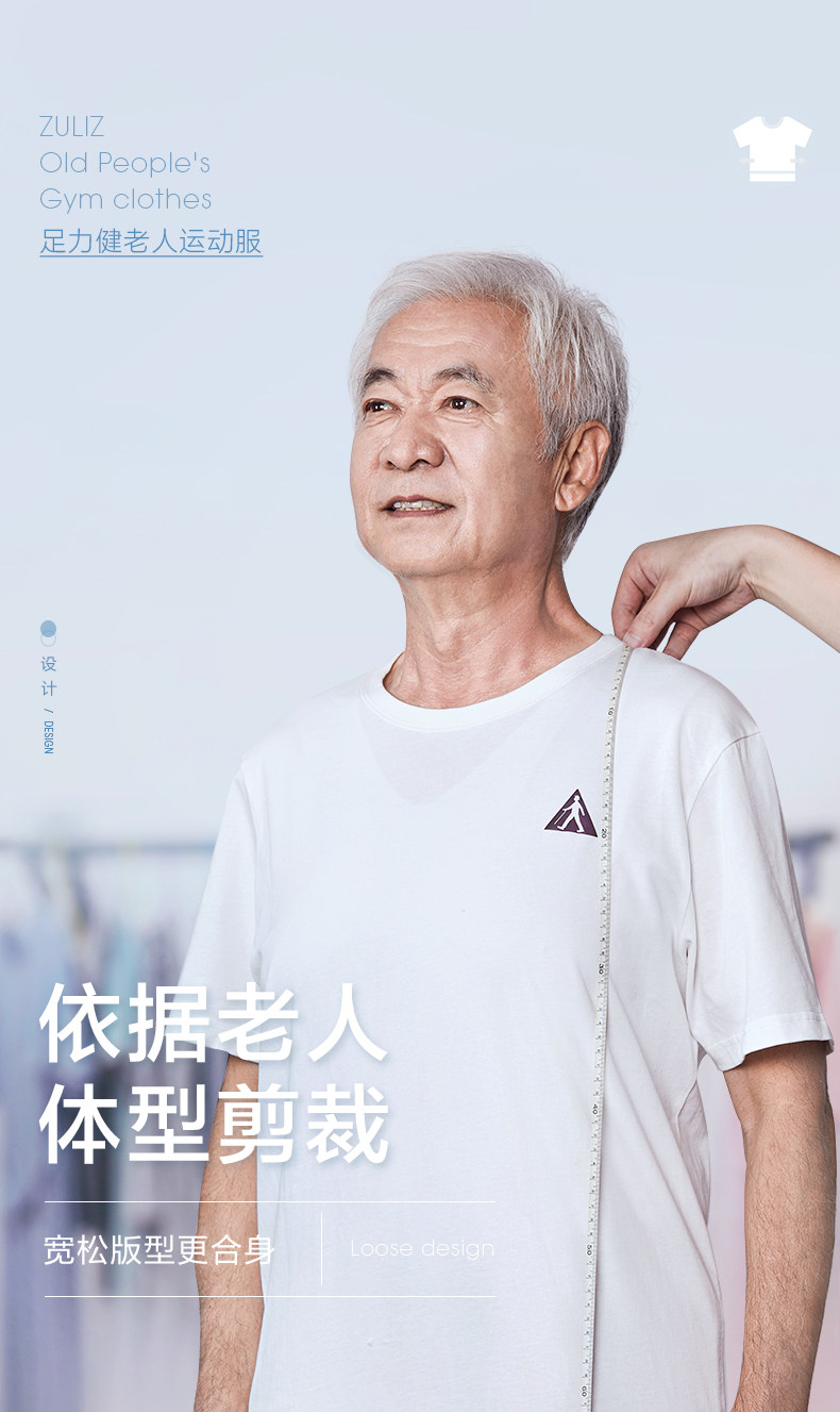 足力健 Белая хлопковая дышащая тонкая летняя спортивная футболка с коротким рукавом, для среднего возраста