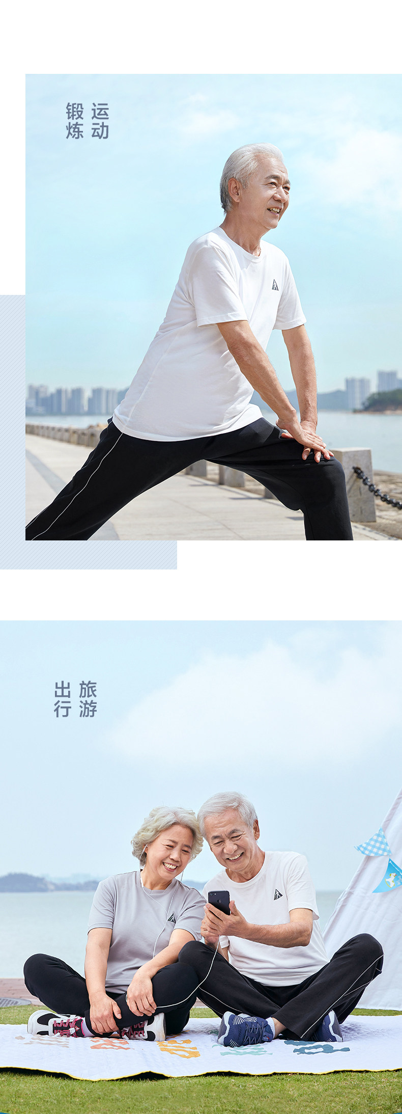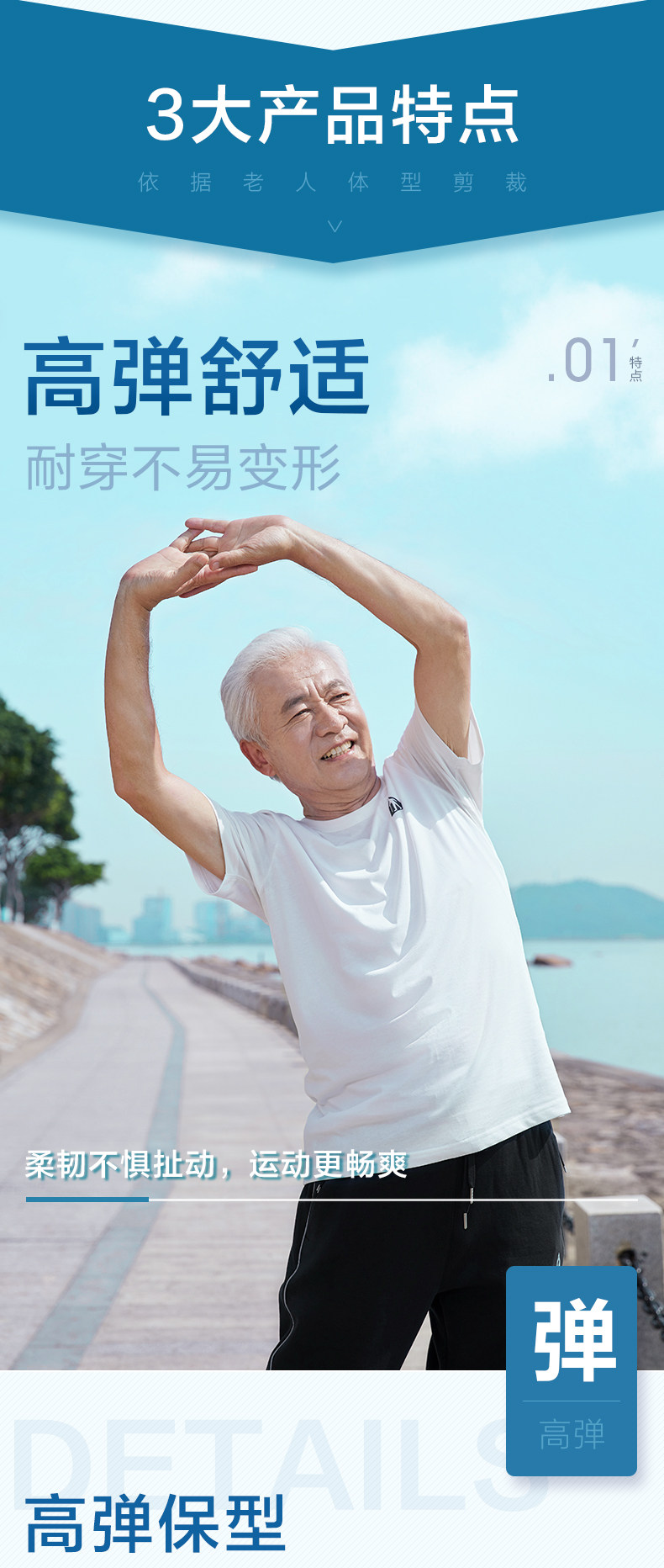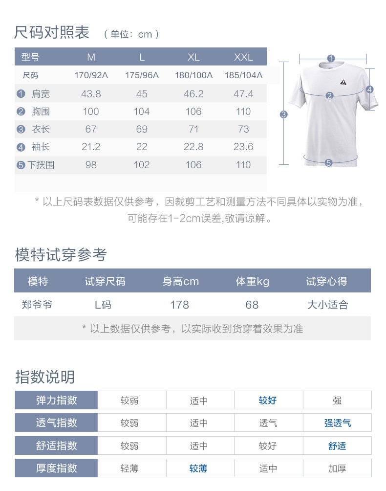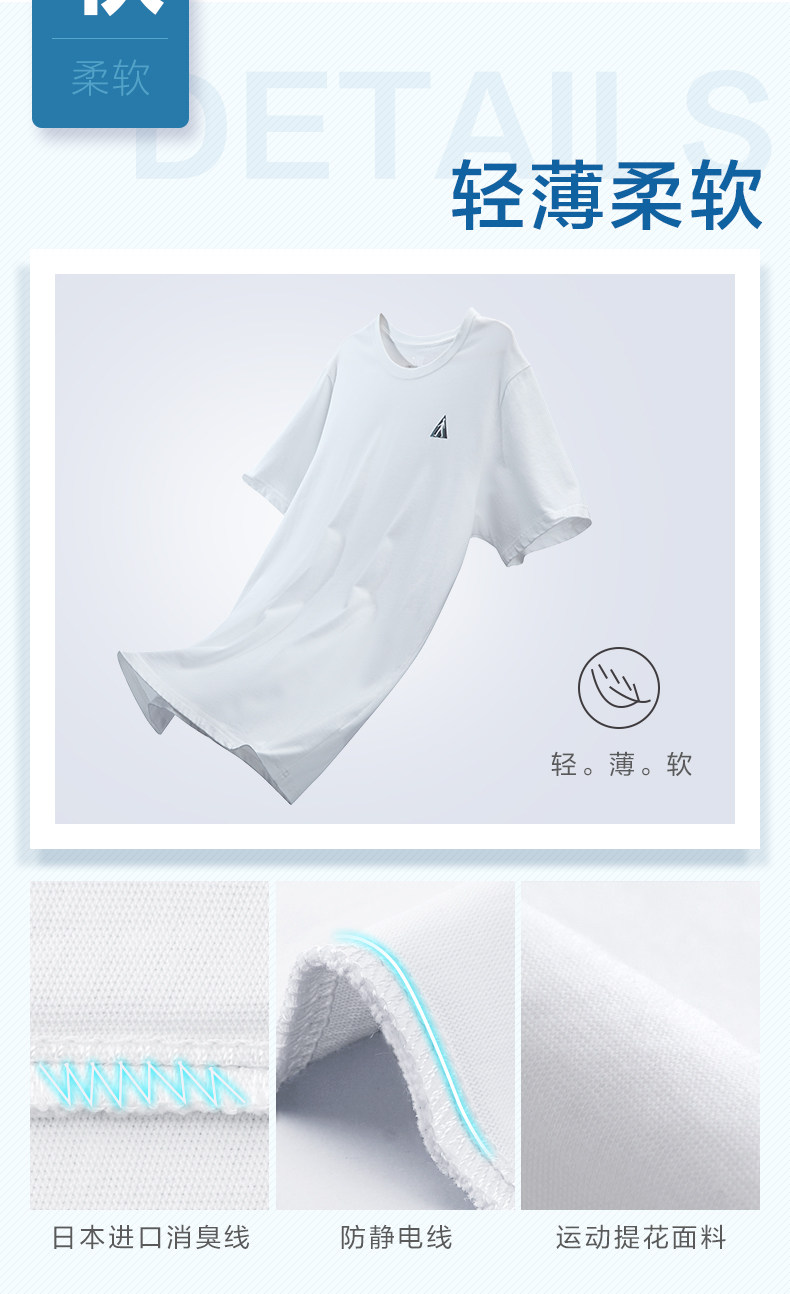 足力健 Белая хлопковая дышащая тонкая летняя спортивная футболка с коротким рукавом, для среднего возраста