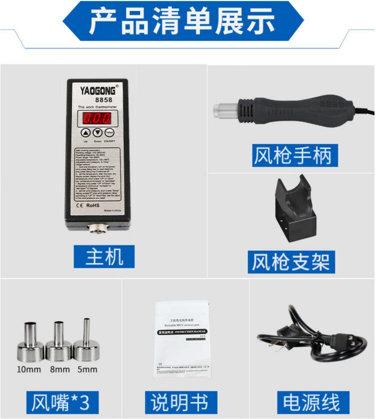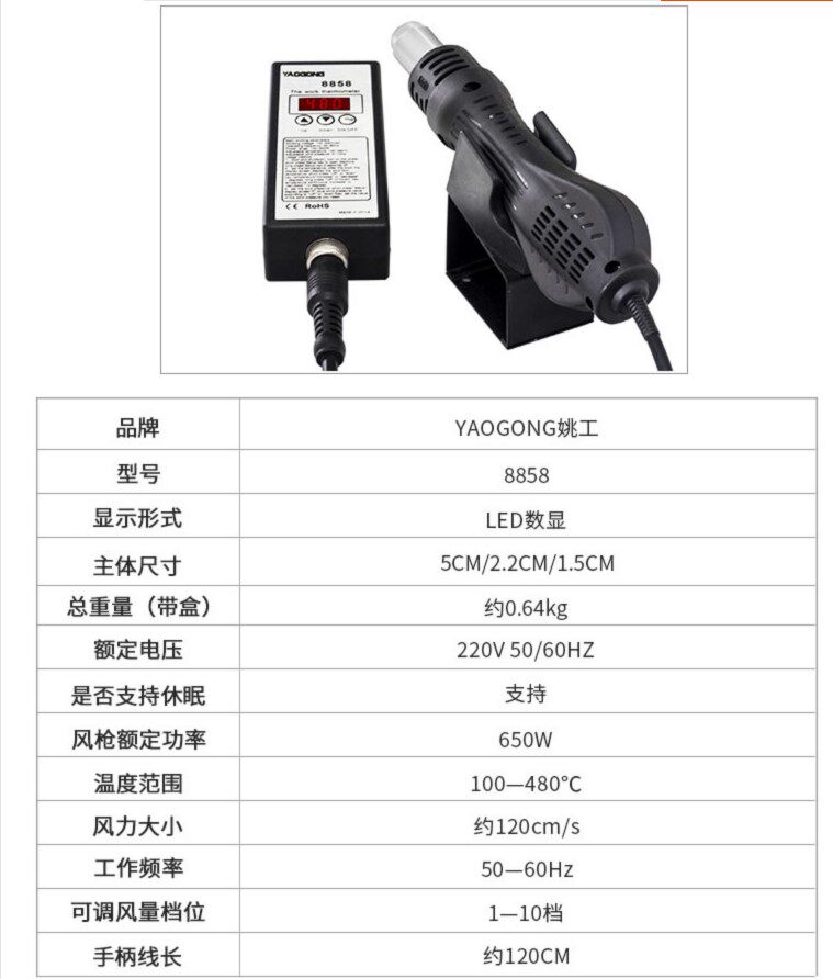 850 портативная температура температура. Количество газового оружия нагревательного газа 8858 Горячий сварка BGA возвращается в ремонт Chan