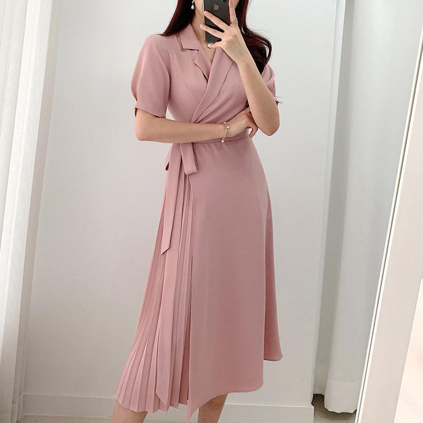 Приталенный корсет, элегантное платье, длинная юбка в складку, в корейском стиле, V-образный вырез, яркий броский стиль, по фигуре, длина макси