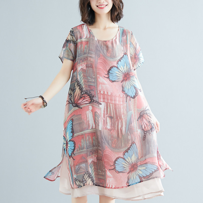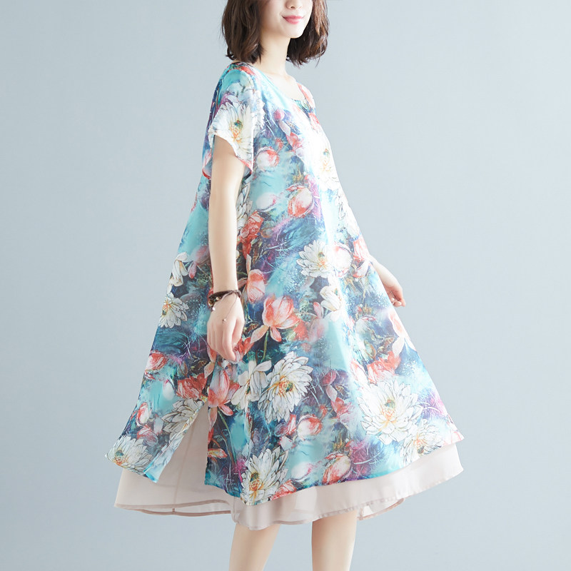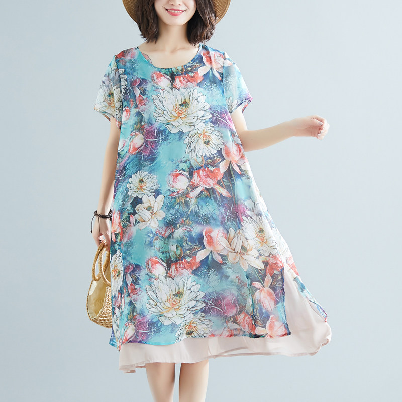 Женское платье, летняя одежда, шифоновая длинная юбка, коллекция 2021, большой размер, шифоновое с принтом, средней длины