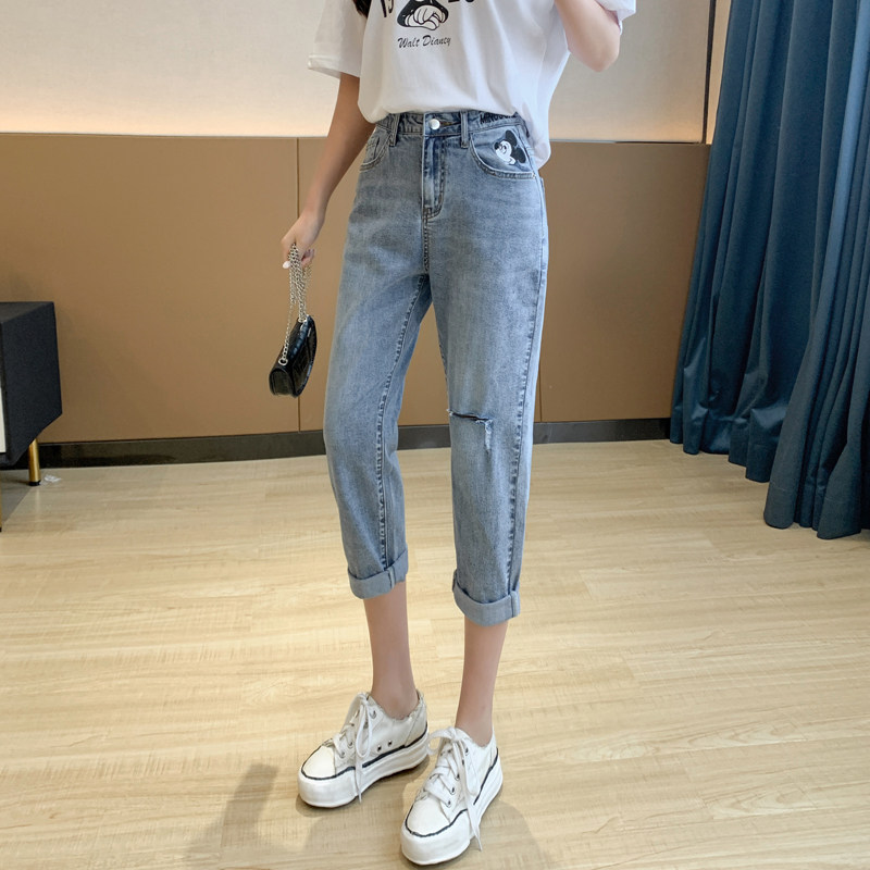 Тонкие джинсы, приталенные штаны, с вышивкой, 2021 года, оверсайз, высокая талия