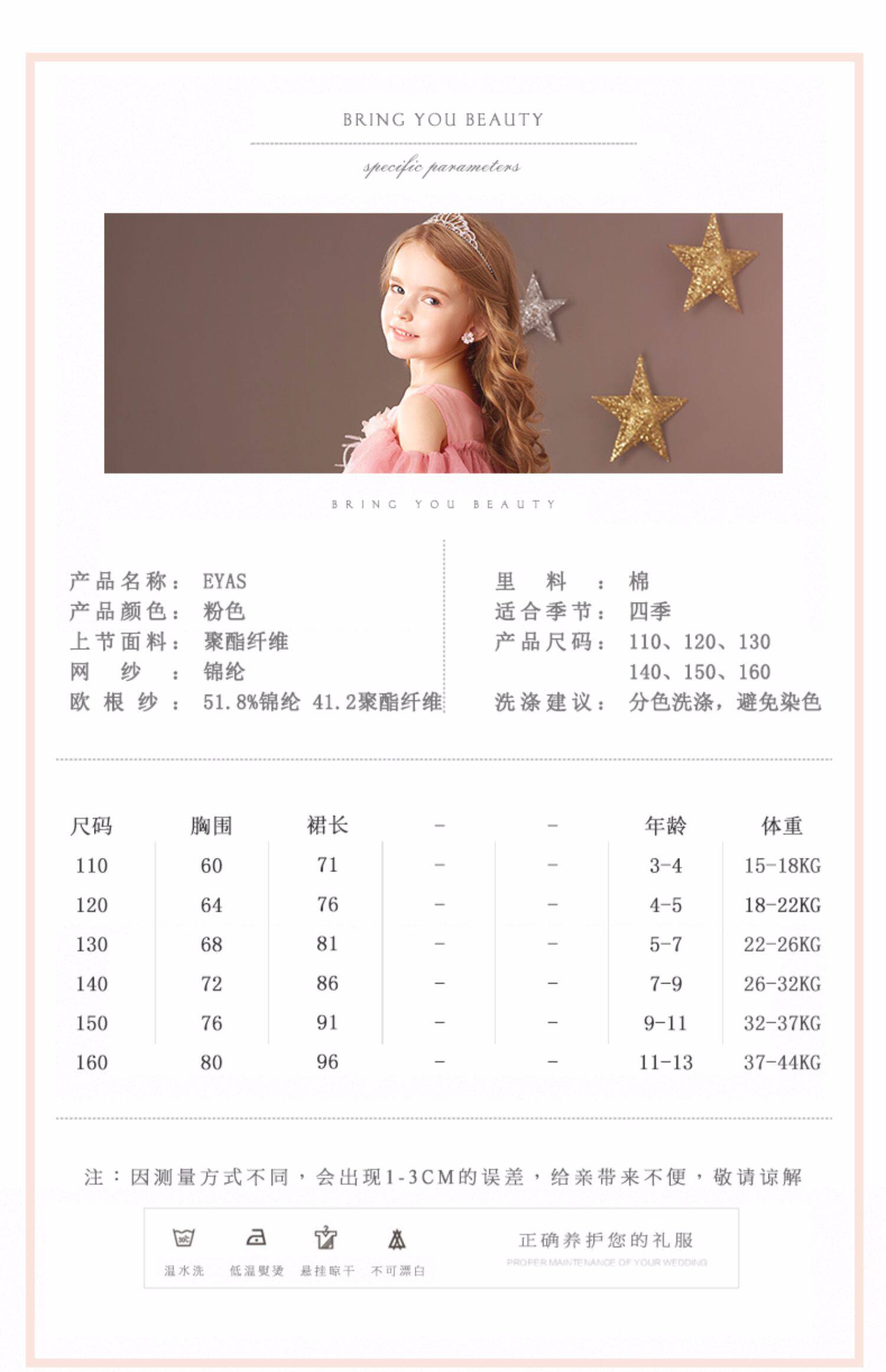 EYAS Розовое детское платье, наряд маленькой принцессы, в корейском стиле, в западном стиле, подарок на день рождения