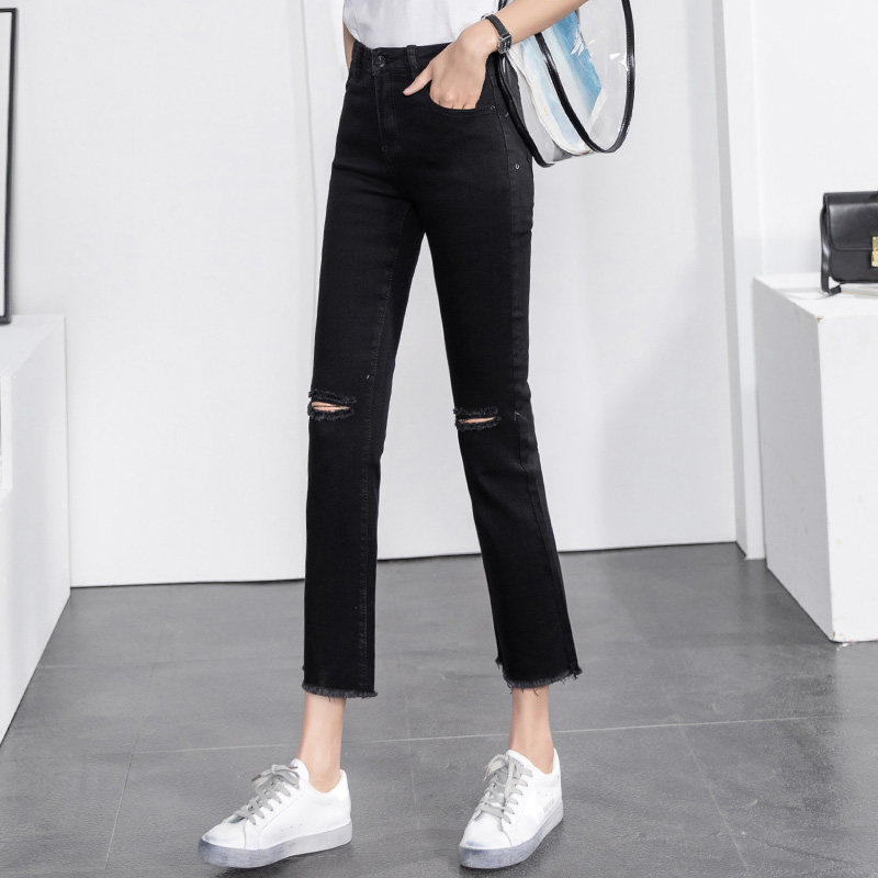 Черные штаны, эластичные прямые свободные джинсы, подходят для подростков, свободный крой
