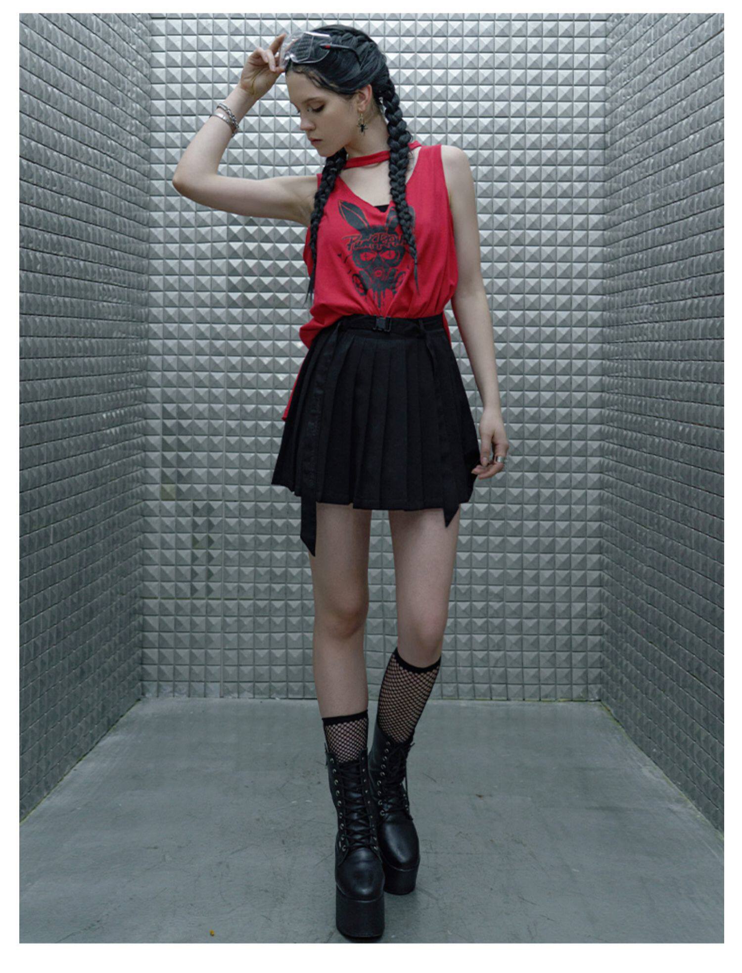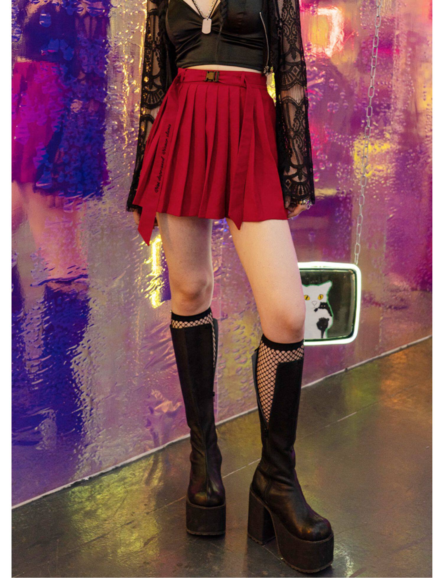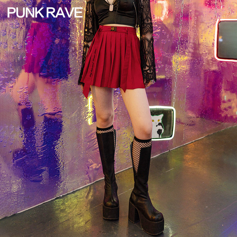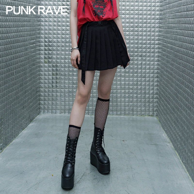 PUNK RAVE Летняя студенческая юбка в складку, мини-юбка, приталенный ремень, плиссированная юбка, высокая талия, А-силуэт