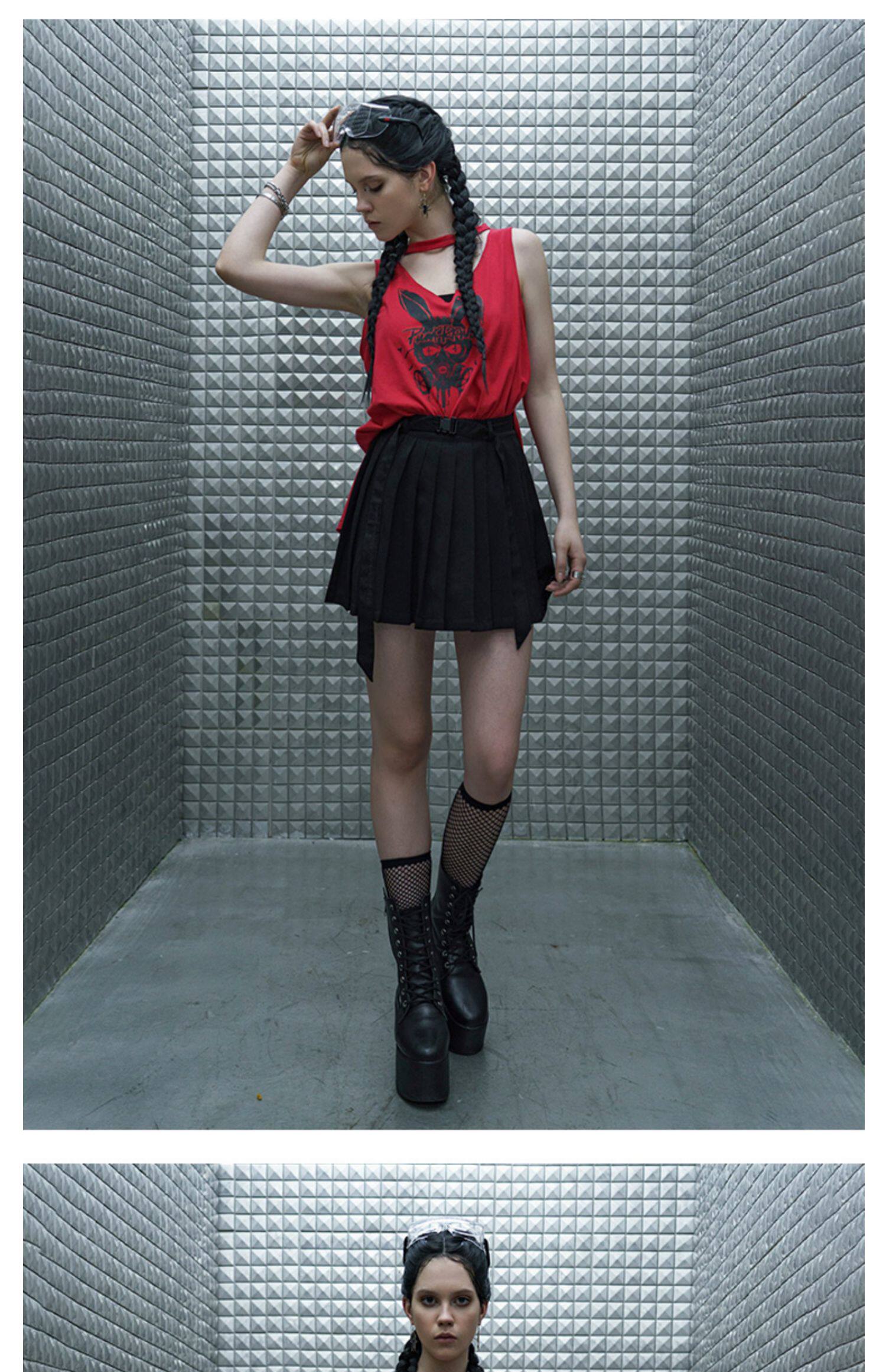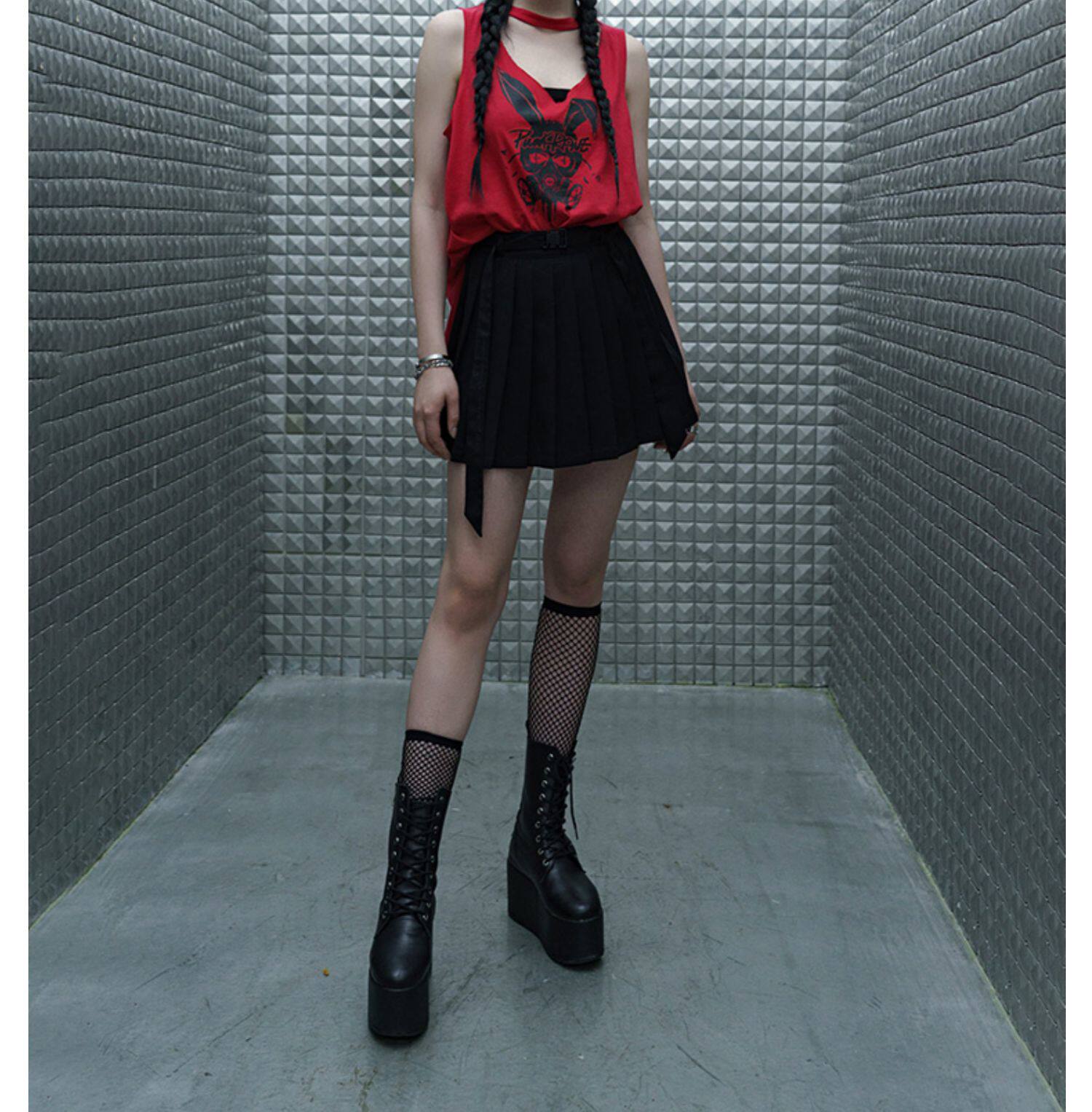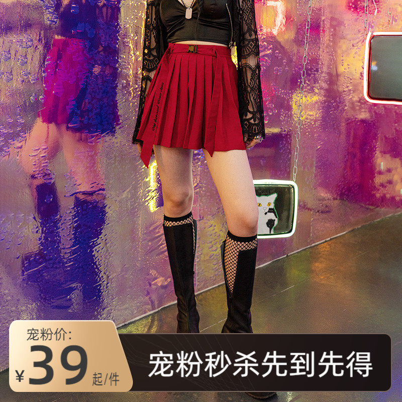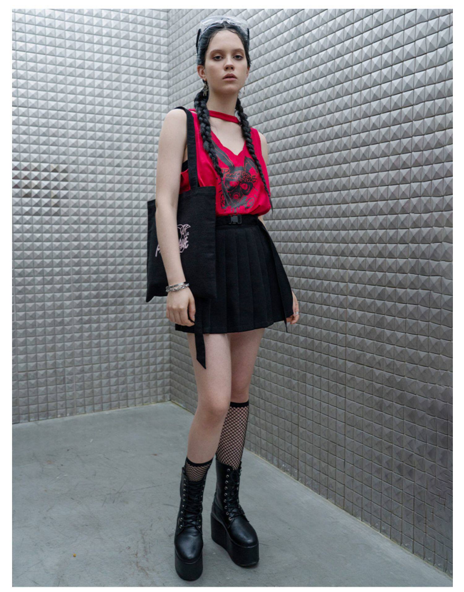 PUNK RAVE Летняя студенческая юбка в складку, мини-юбка, приталенный ремень, плиссированная юбка, высокая талия, А-силуэт
