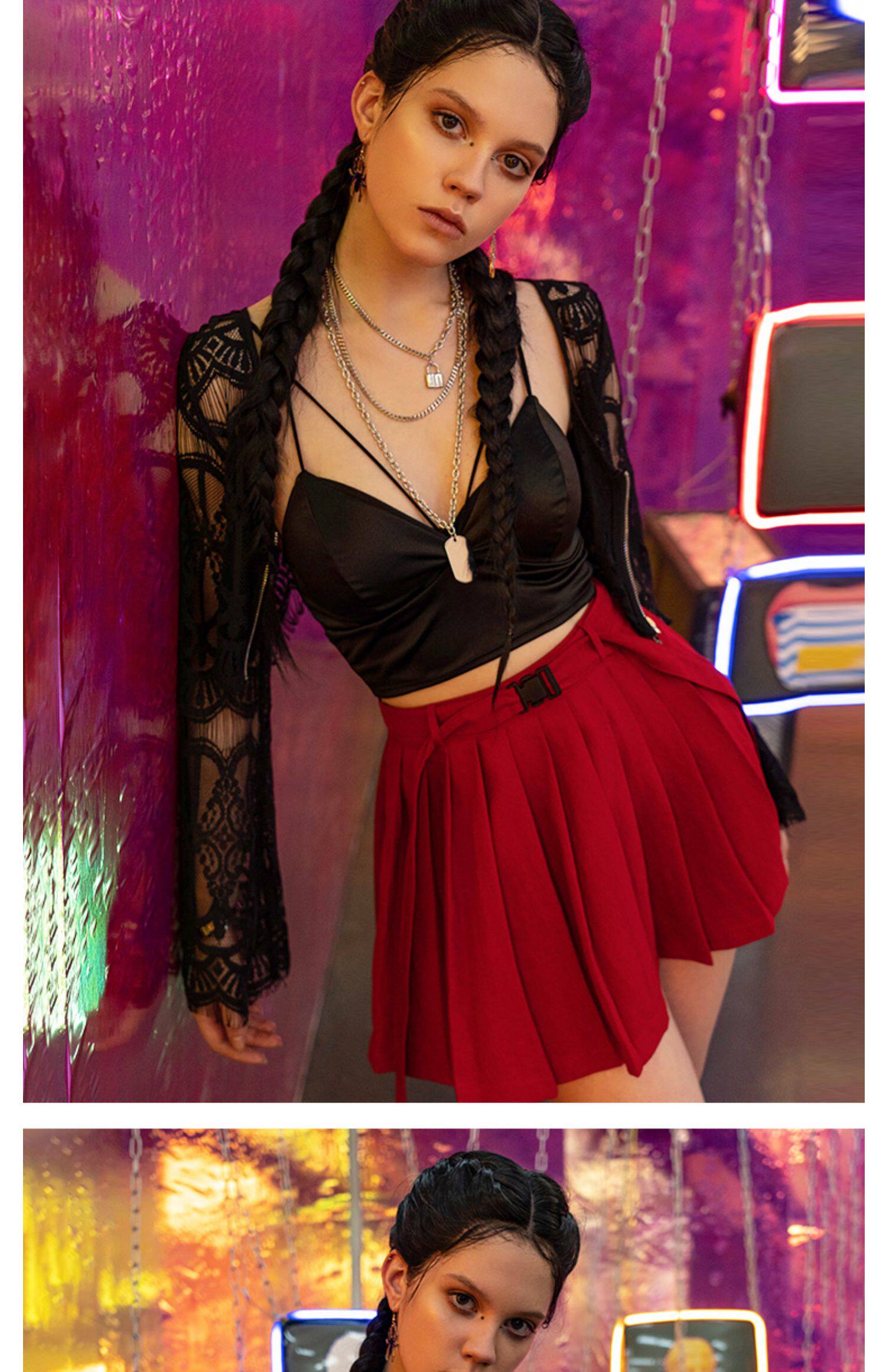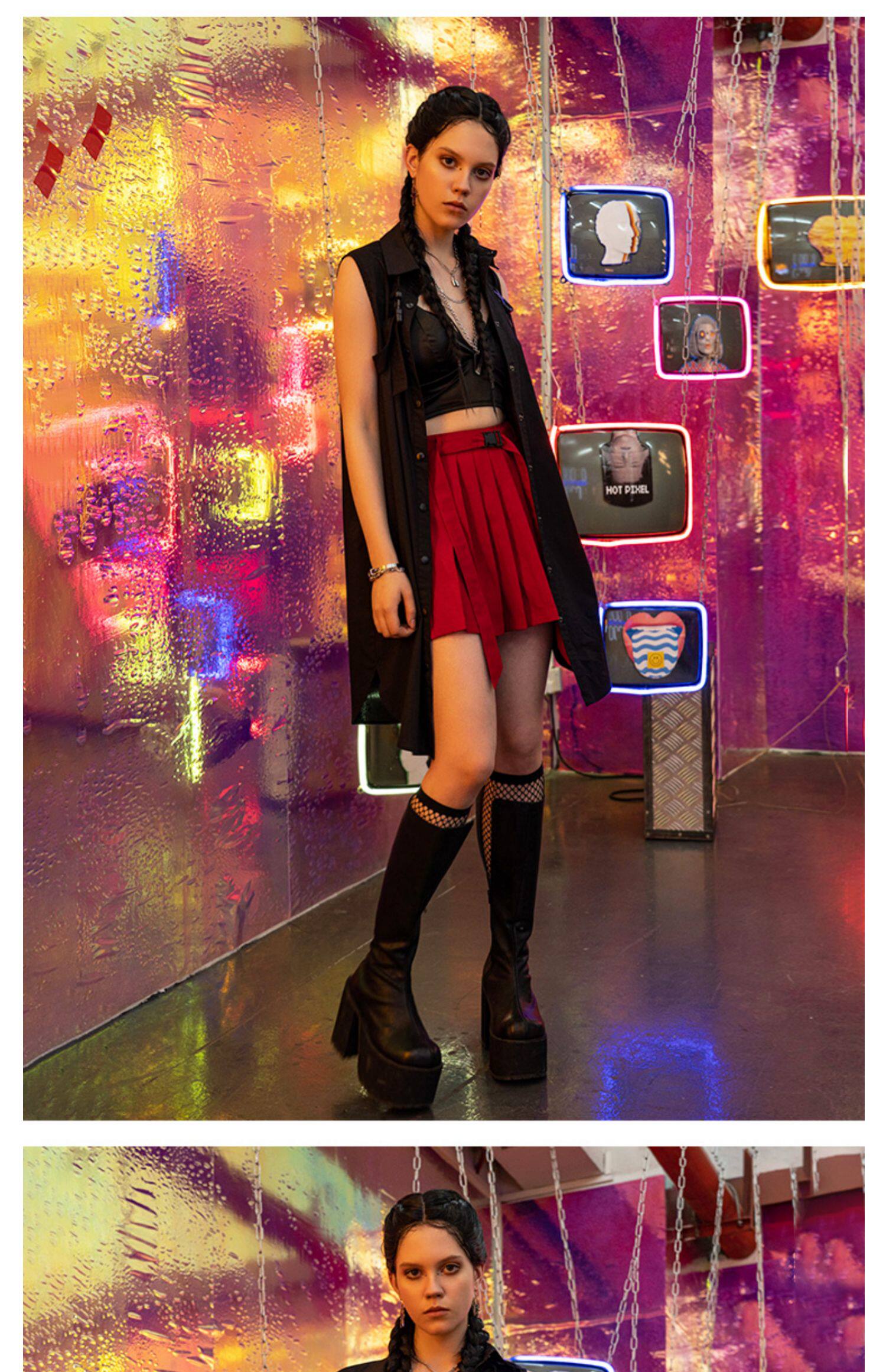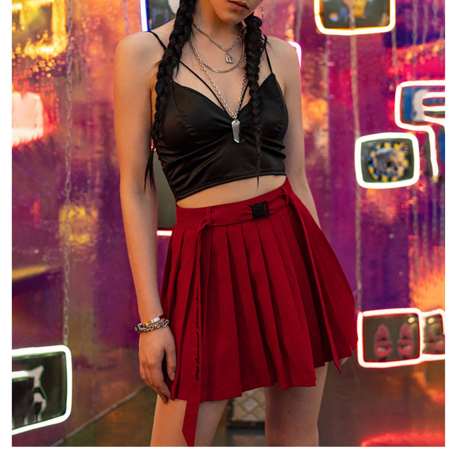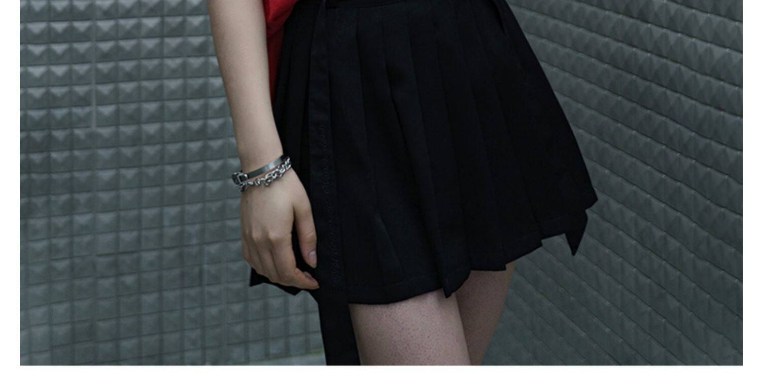 PUNK RAVE Летняя студенческая юбка в складку, мини-юбка, приталенный ремень, плиссированная юбка, высокая талия, А-силуэт